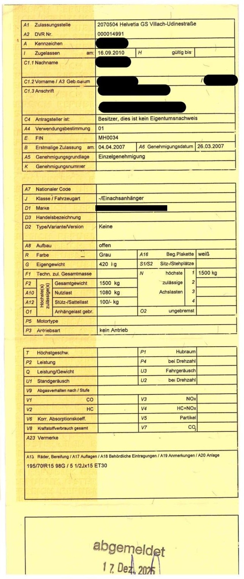 285.430: 1 Stk. An­hän­ger (Eigenbau)