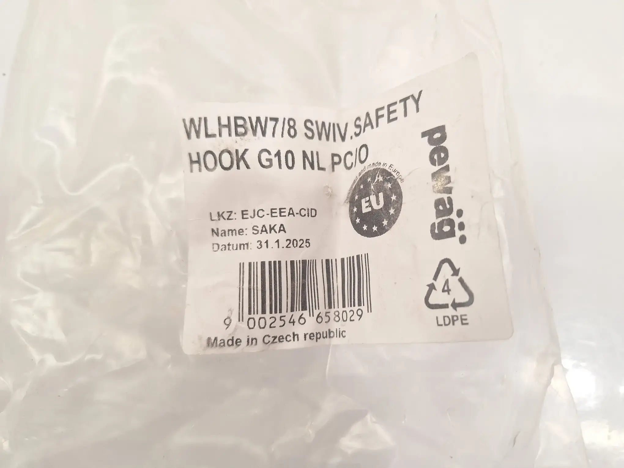 WLH­B7/8 SWIV SAFE­TY HOOK, G10 NL PC/O, Län­ge ca. 22 cm