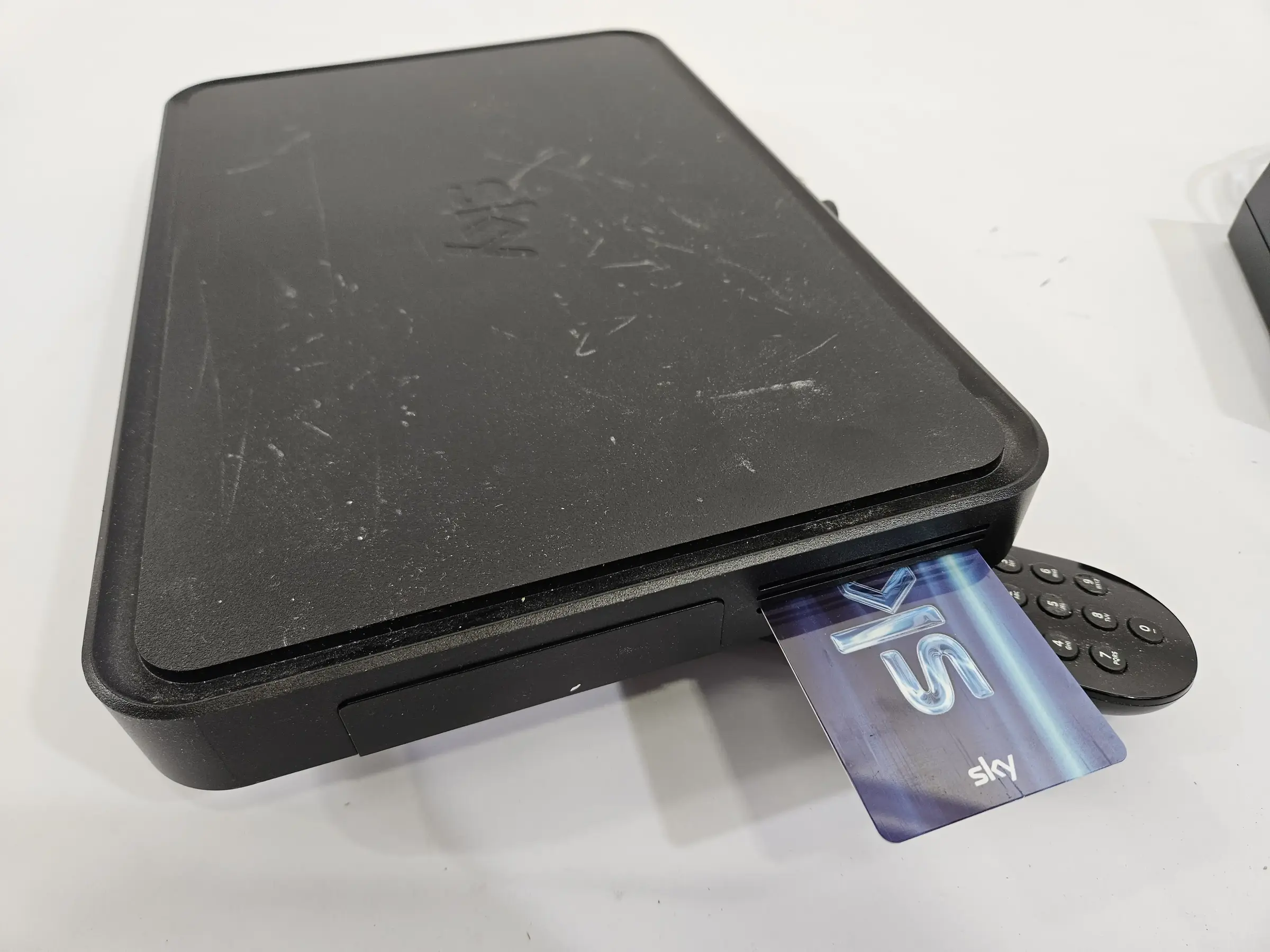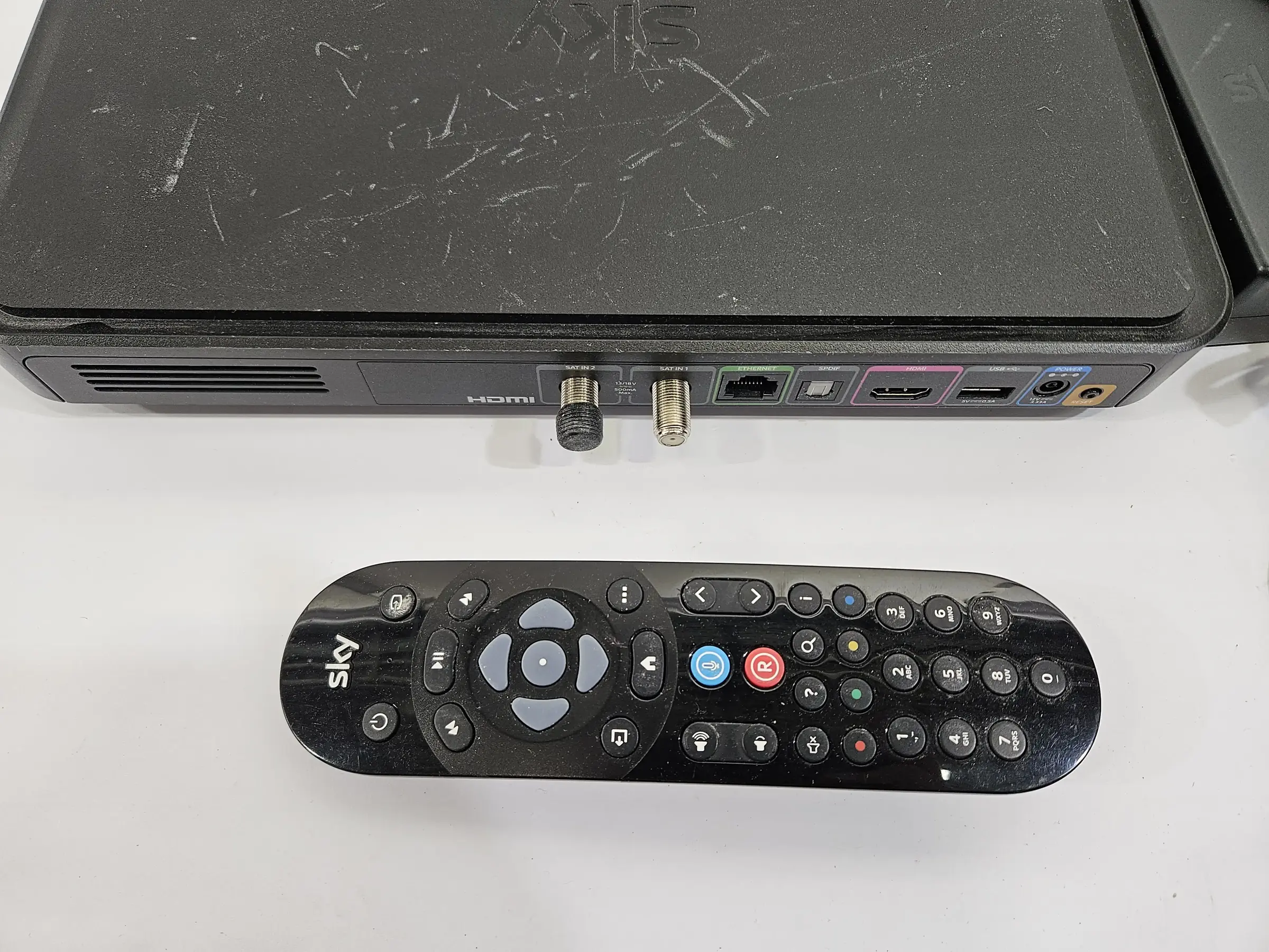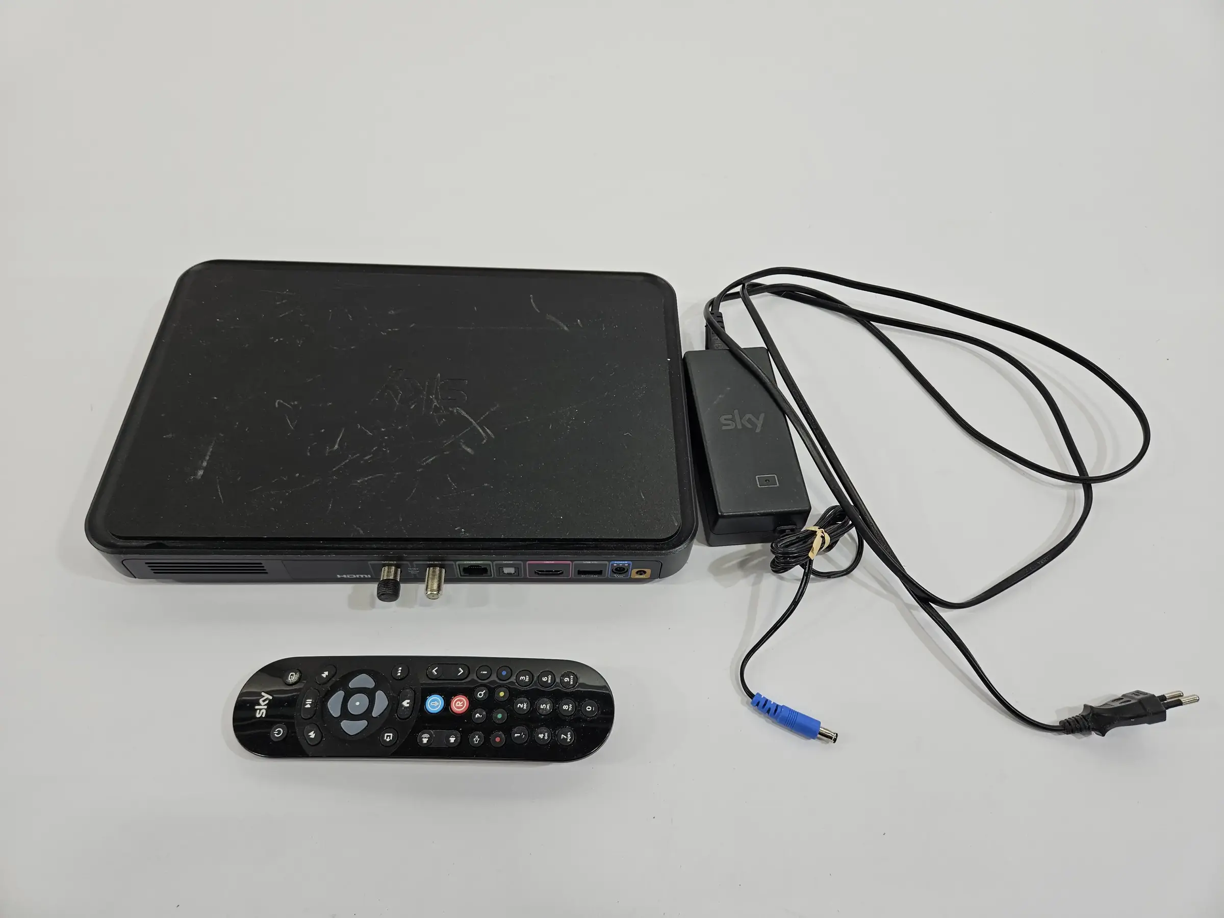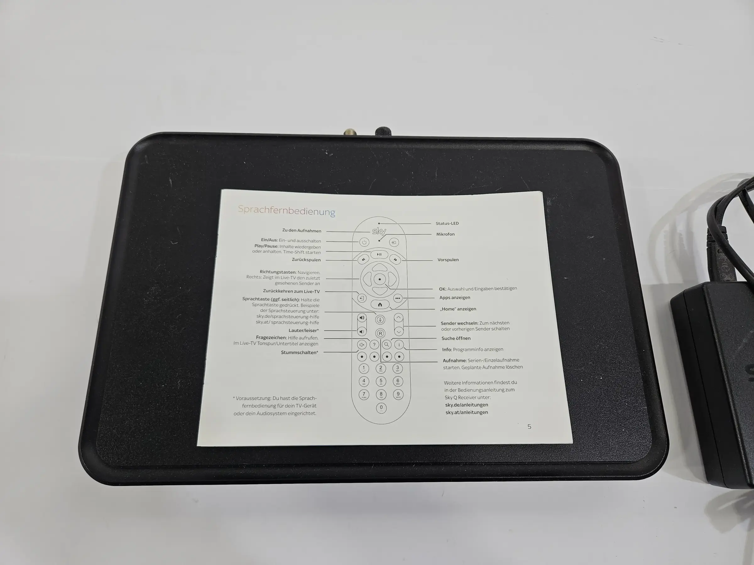 Sprach­fern­be­die­nung, Sky Q SAT-Re­cei­ver. Div. Ge­brauchs­spu­ren