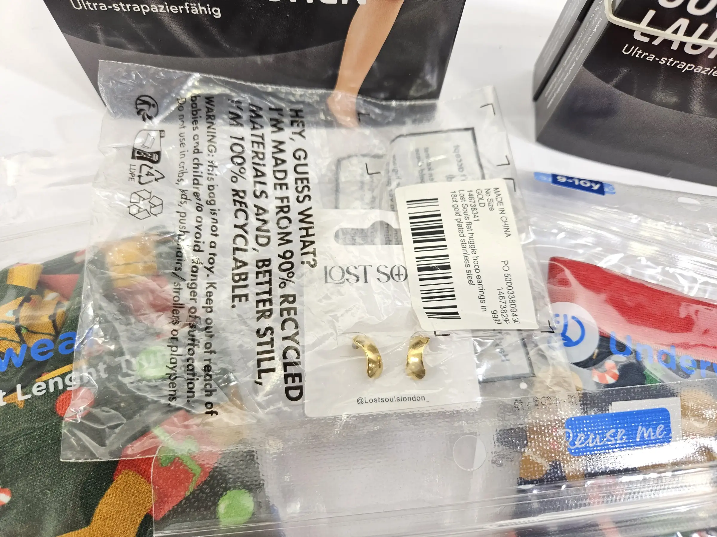 Strumpfhosen, Männerunterwäsche, Ohrringe