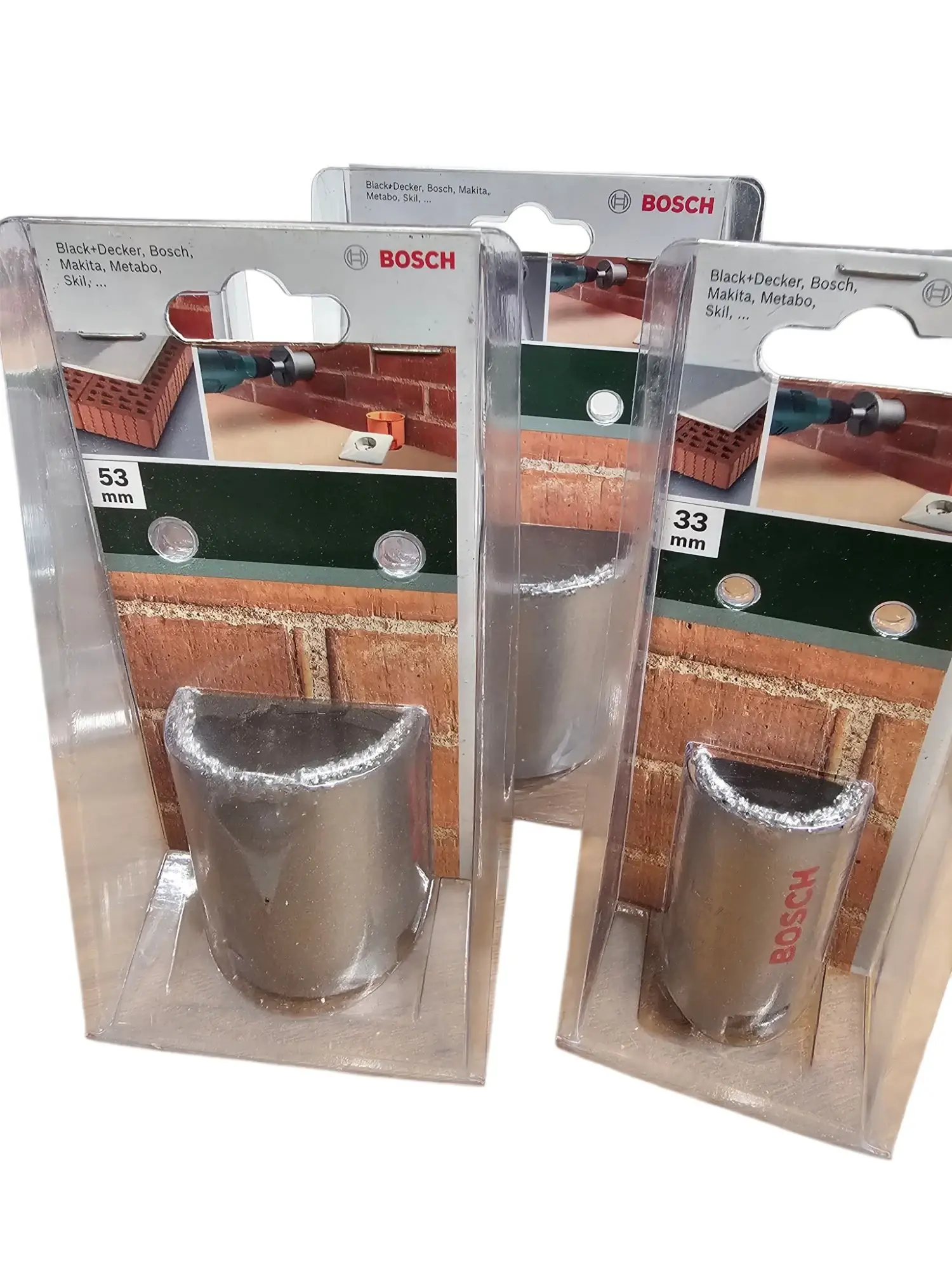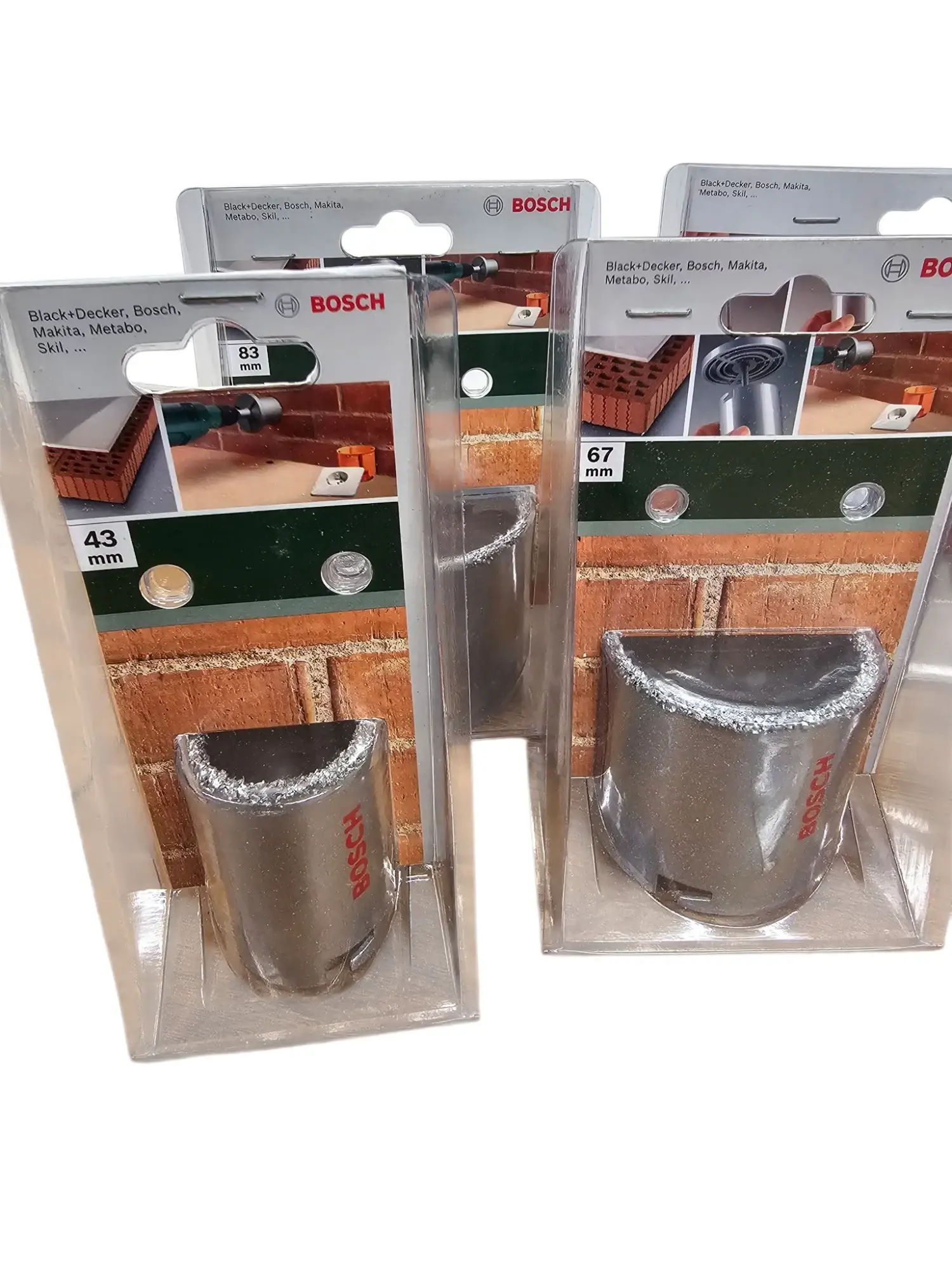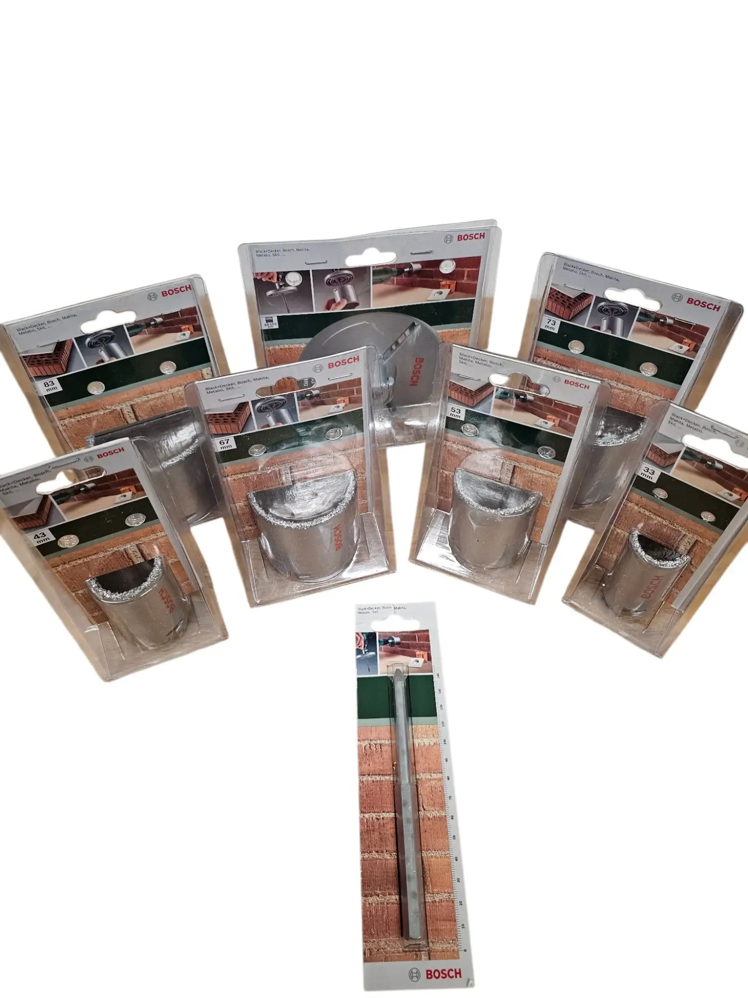 Loch­boh­rer-Set der Mar­ke Bosch für Zie­gel mit Zen­trier­boh­rer. Grö­ßen bit­te den Bil­dern ent­neh­men. UVP: 119,99 €
