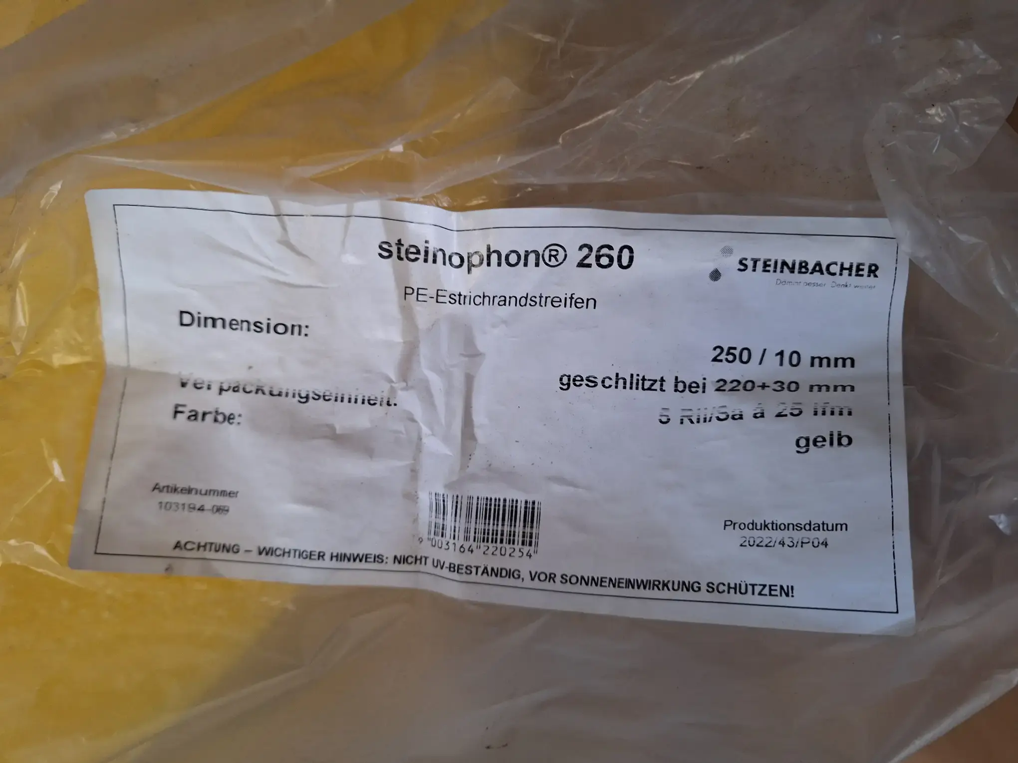 289.400: 1 Posten PE-Estrichrandstreifen (Steinbacher)
