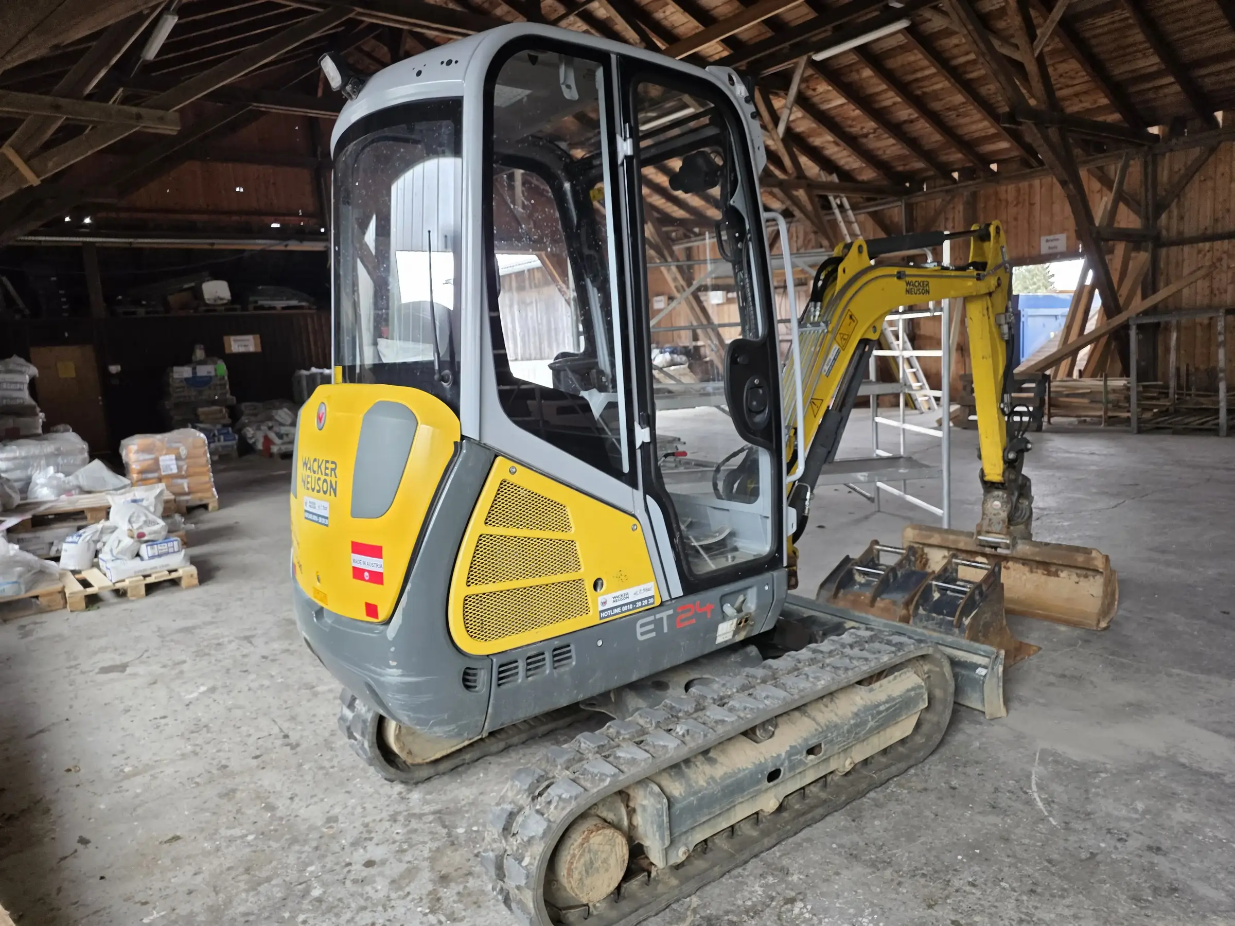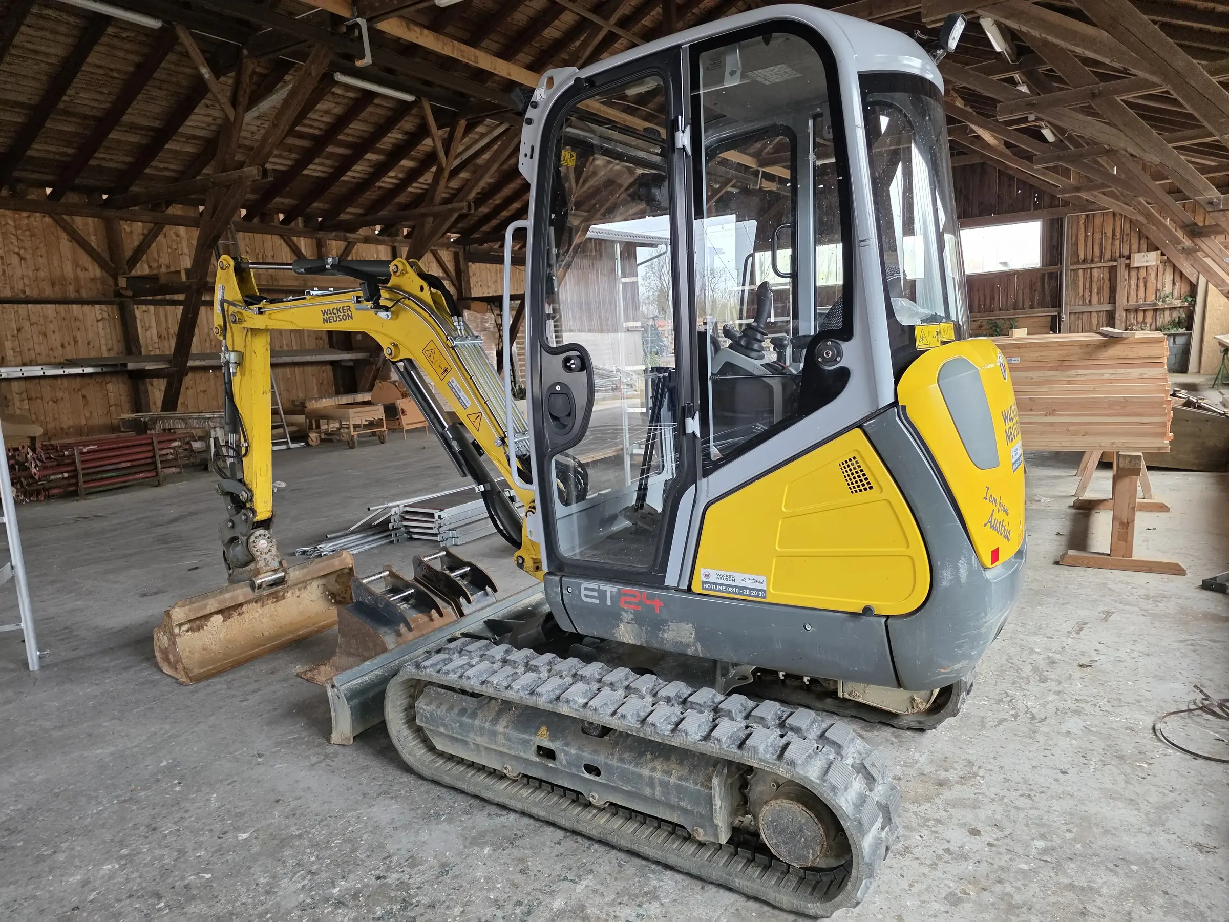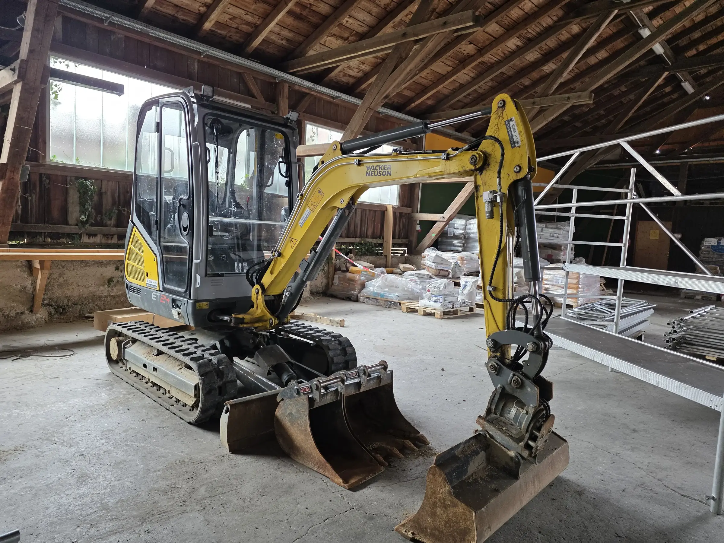 ET24, mit Power­tilt und hy­dr. Schnell­wechs­ler, Bö­schungs­löf­fel 120cm, Tief­löf­fel 30 und 50 cm