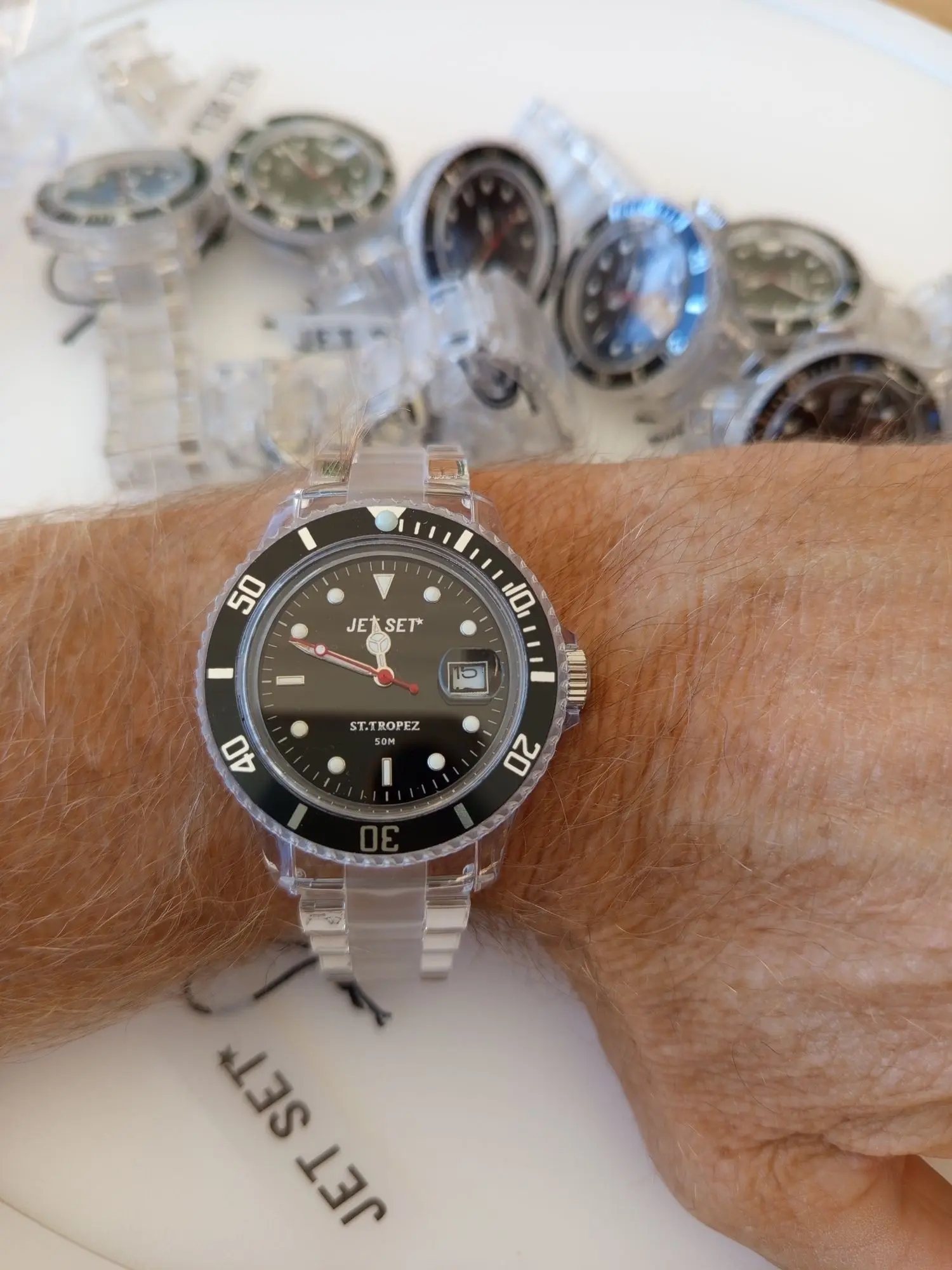 803.970: 10 Stk. Jetset Herrenuhr Polycarbonat 40 mm UVP 479