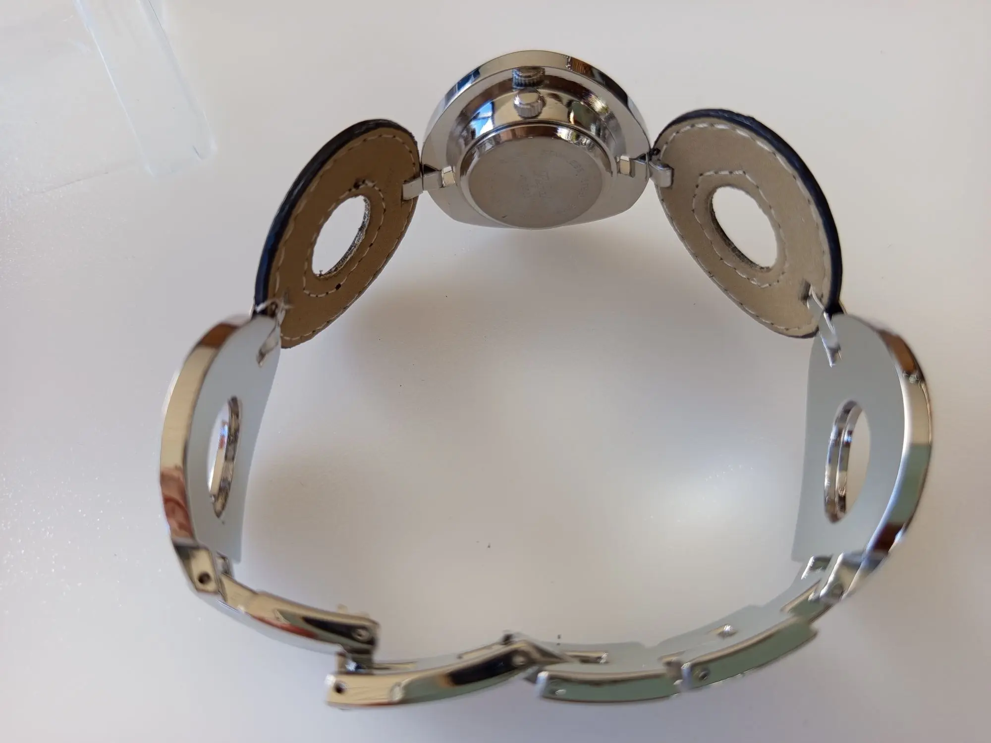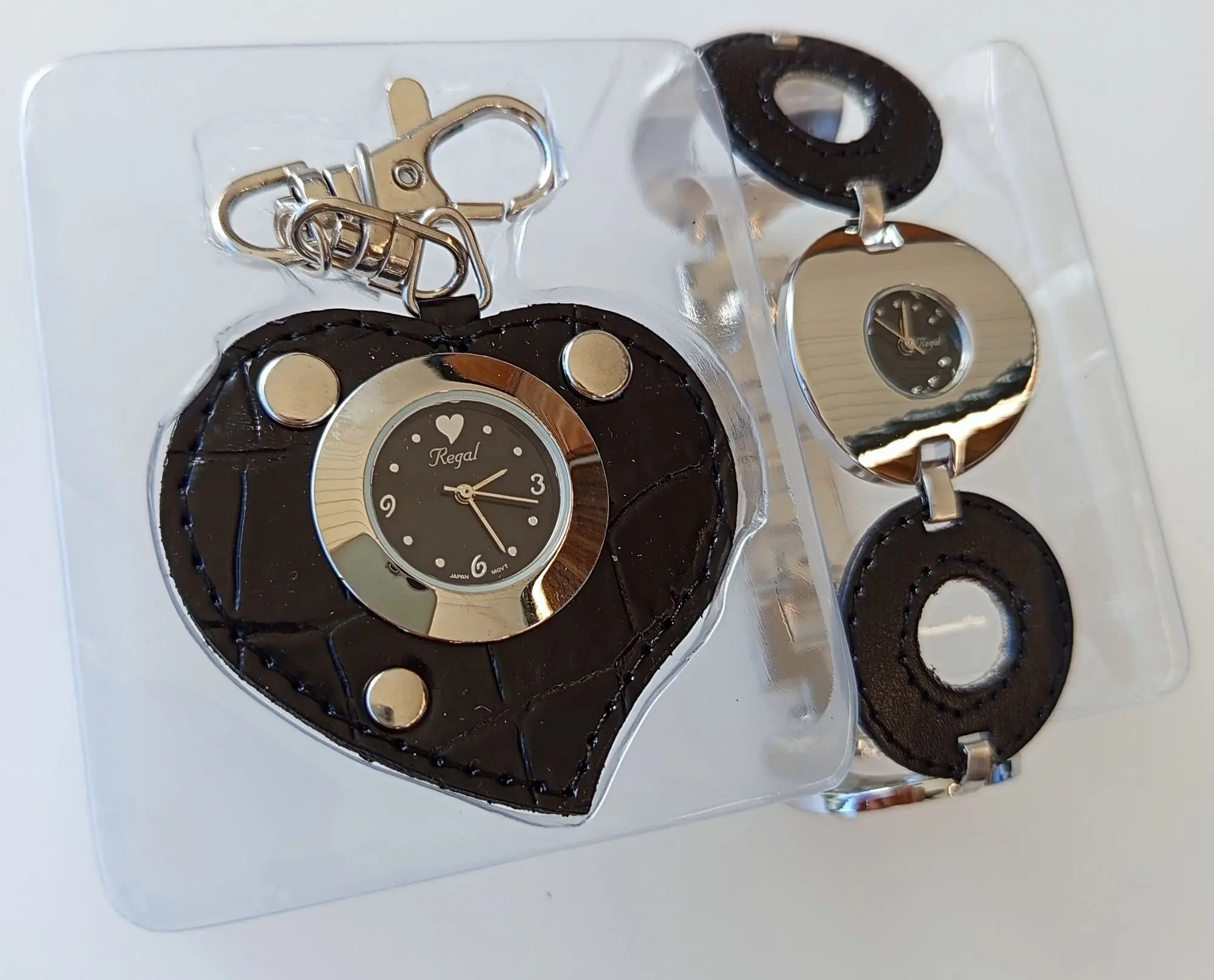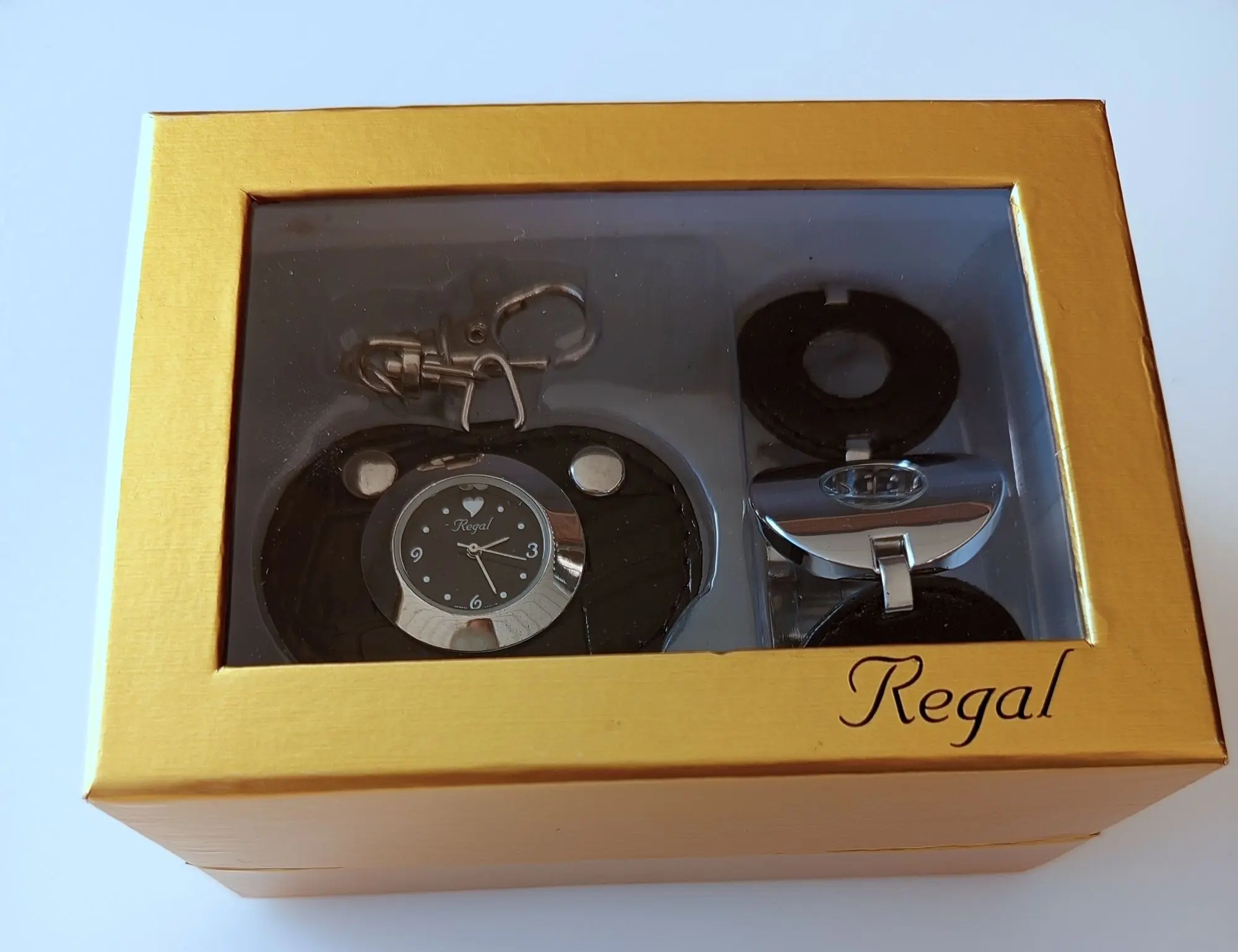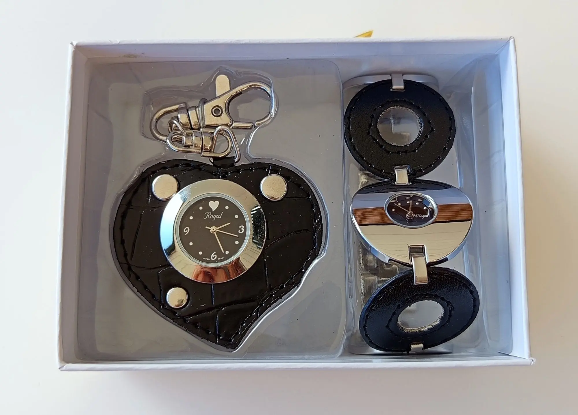 109 Ehe­ma­li­ger VP in der Schweiz 699 CHF (69,90 CHF/Stück). Sie er­hal­ten 10 Sets. Die Bat­te­ri­en (AG4) sind leer. Die Uh­ren stam­men aus der Sor­ti­ments­auf­lö­sung der Han­dels­ket­te Mi­gros Schweiz. Preis aus­ge­zeich­net in CHF. Spe­zi­fi­ka­tio­nen: Arm­band­uhr: gel­bes Zif­fer­blatt, Edel­stahl­ge­häu­se, Arm­band aus po­lier­tem Me­tall und bei­gem Le­der. Uhr-An­hän­ger: wei­ßes Zif­fer­blatt, Edel­stahl­ge­häu­se, An­hän­ger aus bei­gem Le­der mit Nie­ten, ein­fa­ches Be­fes­ti­gen durch Ka­ra­bi­ner­ver­schluss. Da­ten: Arm­band­uhr Zeit­an­zei­ge: Ana­log, Ge­häu­se: rost­frei­er Edel­stahl, po­liert, Arm­band: Kom­bi­na­ti­on aus Le­der und Me­tall, Brei­te: 33 mm, was­ser­dicht: Die­ses Mo­dell ist spritz­was­ser­fest nach DIN 8310, De­sign: kreis­för­mi­ges Ge­häu­se und Arm­band, Grö­ße: 33 mm Ra­di­us. Uhr-An­hän­ger Zeit­an­zei­ge: Ana­log, Ge­häu­se: rost­frei­er Edel­stahl, po­liert, An­hän­ger: Le­der mit Nie­ten, was­ser­dicht: Die­ses Mo­dell ist spritz­was­ser­fest nach DIN 8310, De­sign: herz­för­mig mit Nie­ten und Ka­ra­bi­ner­ver­schluss, Grö­ße: 60 x 53 mm, gold­far­be­ne Box. Bei­de Uh­ren sind mit hoch­wer­ti­gem, gang­ge­nau­em Miyo­ta-Quarz­werk aus­ge­stat­tet.