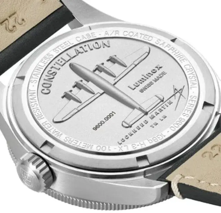 Luminox Constellation Automatic 9600 Series Die elegante Constellation Automatik mit schwarzem 42-mm-Zifferblatt und Saphirglas wird mit einem schwarzen Lederarmband mit Luminox-Schnalle geliefert und ist damit ein Zeitmesser für jeden Anlass. Beschreibung Luminox Air Automatic Constellation Pilotenuhr mit schwarzem Lederband. Die stromunabhängige Beleuchtung zeigt die Zeit auf einen Blick, unabhängig von den Lichtverhältnissen, ohne Aufladung durch das Tageslicht, ohne Knopfdruck. Swiss Made Automatikuhr (Sellita SW 200-1), Edelstahlgehäuse, Durchmesser ca. 42 mm, Höhe ca. 14 mm, verschraubter Gehäuseboden, verschraubte Krone mit Doppeldichtung und Kronenschutz, zweiseitig rotierende Lünette mit schwarzer Skala, schwarzes Zifferblatt mit Datumsanzeige, weiße Ziffern, Saphirglas mit Antireflexbeschichtung, schwarzes Lederarmband mit Dornschließe, Anstoßbreite: 22 mm, Gewicht ca. 105 g, wasserdicht bis 10 bar. Luminox Die Einsatzuhr mit vielen Referenzen: Bear Grylls, U.S. Navy SEALs, Icelandic Association for Search and Rescue, Sea Wolves Unlimited and Undersea Voyager Project, Lockheed Martin, Heliswiss, U.S. Air Force F-117 Nighthawk Stealth Jet Pilots, Federal Bureau of Investigation (FBI), U.S. Coast Guard, U.S. Secret Service, U.S. Border Patrol, U.S. Marshals...