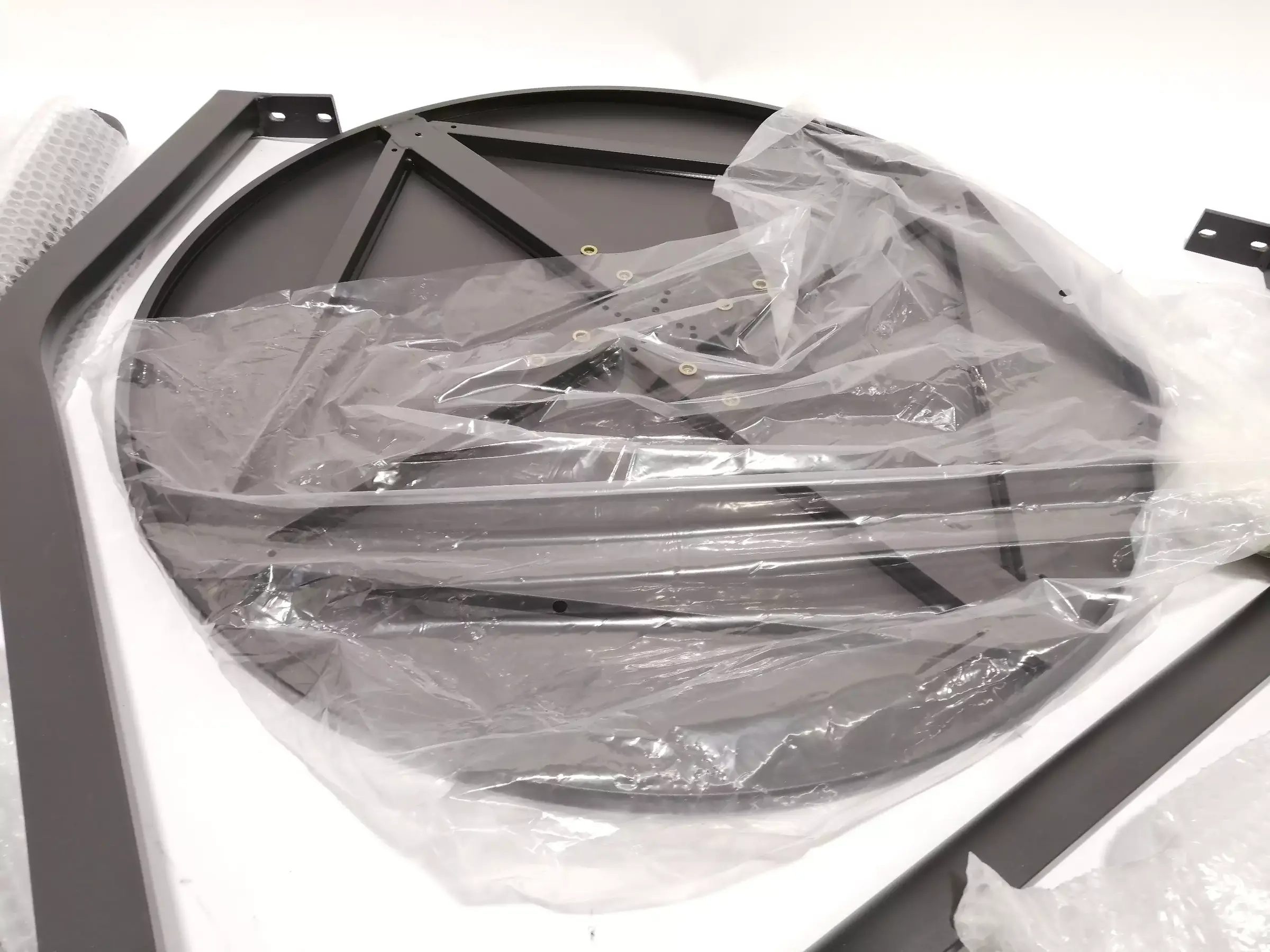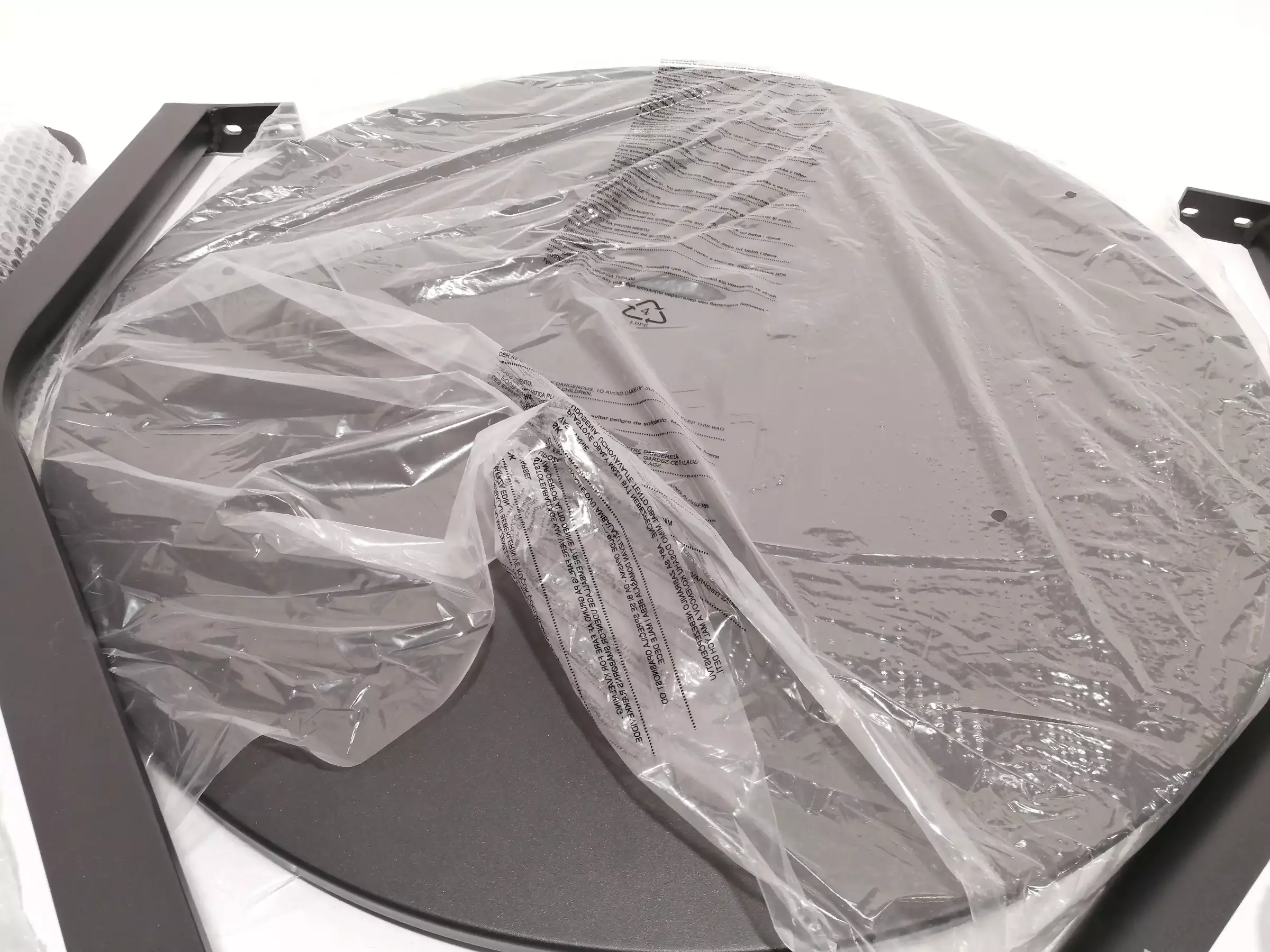 Bei­ne aus Alu Tisch­plat­te aus Plas­tik, Far­be An­thra­zit, Durch­mes­ser ca 70 cm