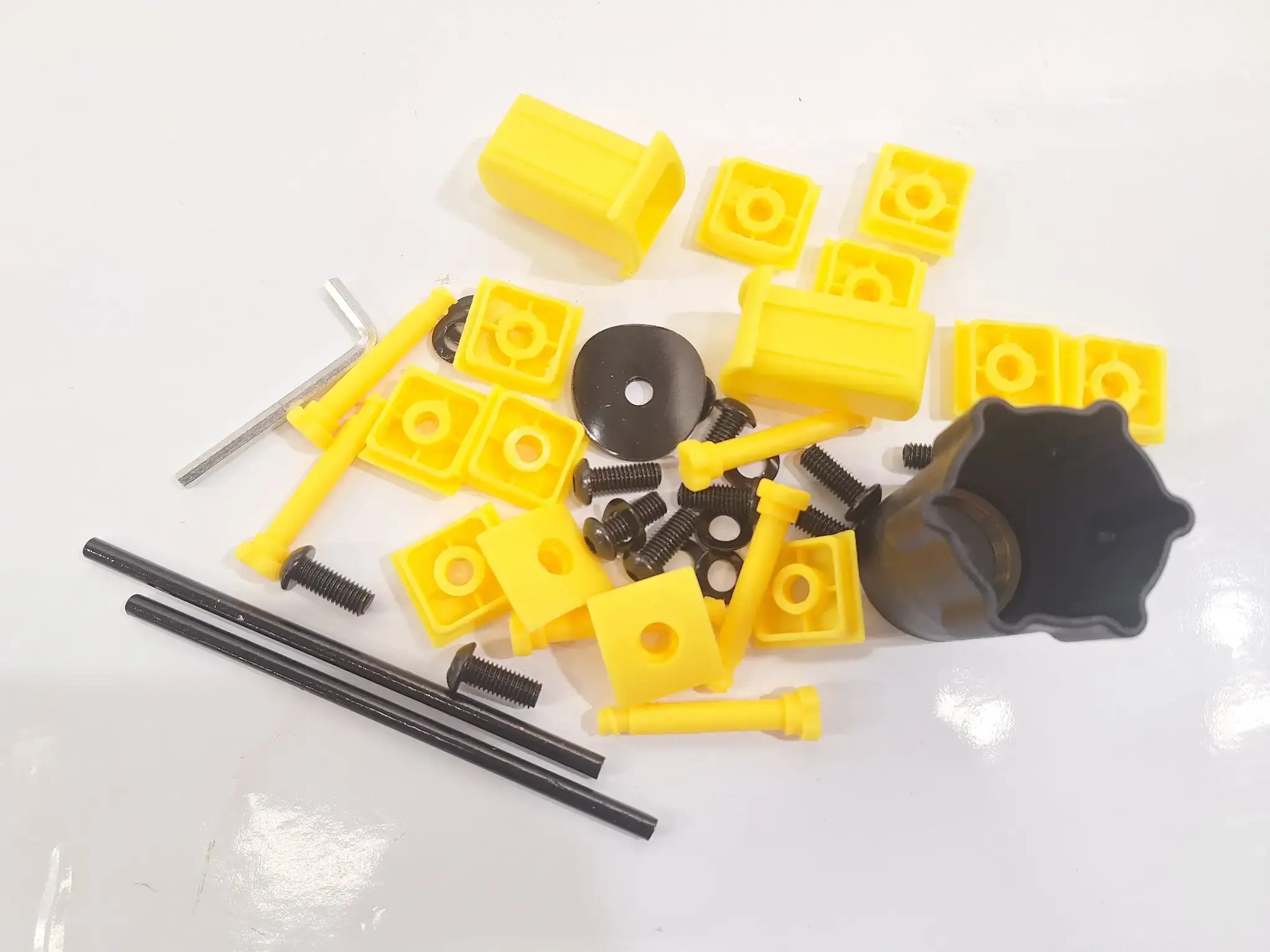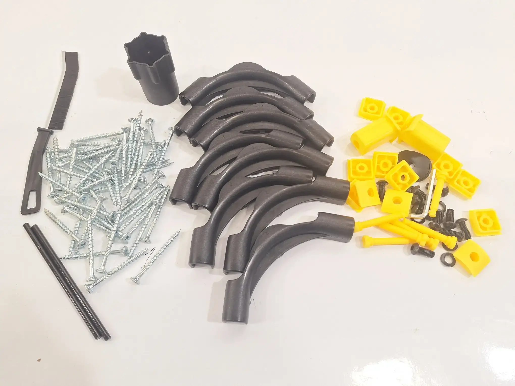 Schrauben 7 cm lang, 8 x Lochwinkel ø14-18, 1 x Fugenreinigungsbürste, diverse Lochsicherungsutensilien laut Fotos