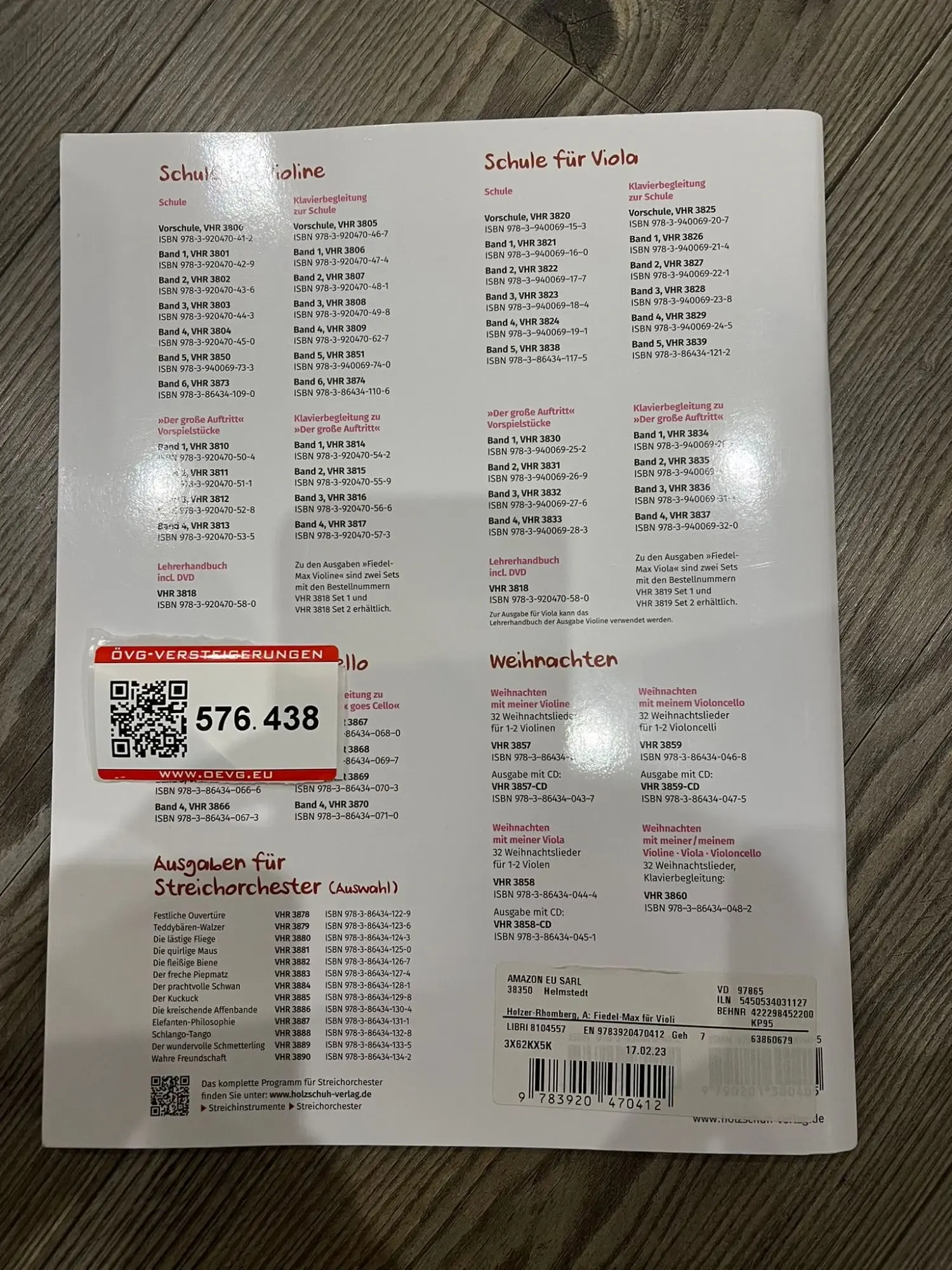 576.438: 1 Stk. Vorschule für Violine - Fiedel Max