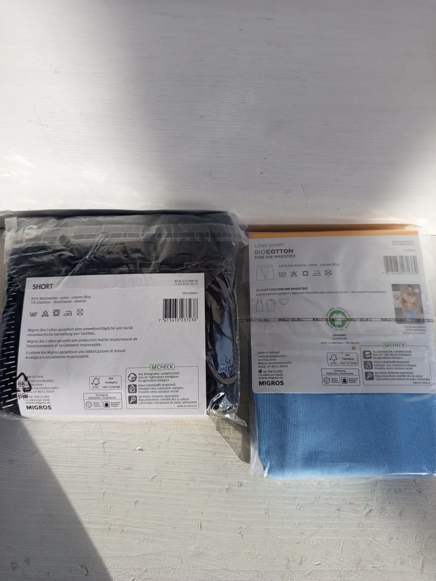 Neu OVP M126 Gr. L 3x Schwarz 1x Hellblau Bio Baumwolle