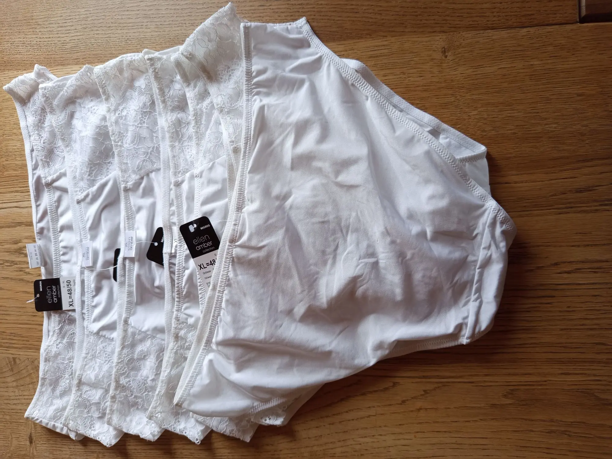 Neu OVP M171 weiß De­sign: Zeit­lo­se wei­ße Op­tik mit ei­nem brei­ten Spit­zen­be­satz am Bund, der für ei­nen ed­len Ak­zent sorgt. Schnitt: Klas­si­sche Pan­ty-Form mit mit­tel­ho­hem Bund, die ei­ne be­que­me Pass­form bie­tet und nicht ein­schnei­det. Ma­te­ri­al: Wei­ches, elas­ti­sches Ma­te­ri­al (Baum­woll-Mix), das sich sanft an die Haut an­schmiegt und für ho­he At­mungs­ak­ti­vi­tät sorgt. Ver­ar­bei­tung: Fla­che Näh­te und elas­ti­sche Bein­ab­schlüs­se für ei­nen op­ti­ma­len Sitz un­ter der Klei­dung.