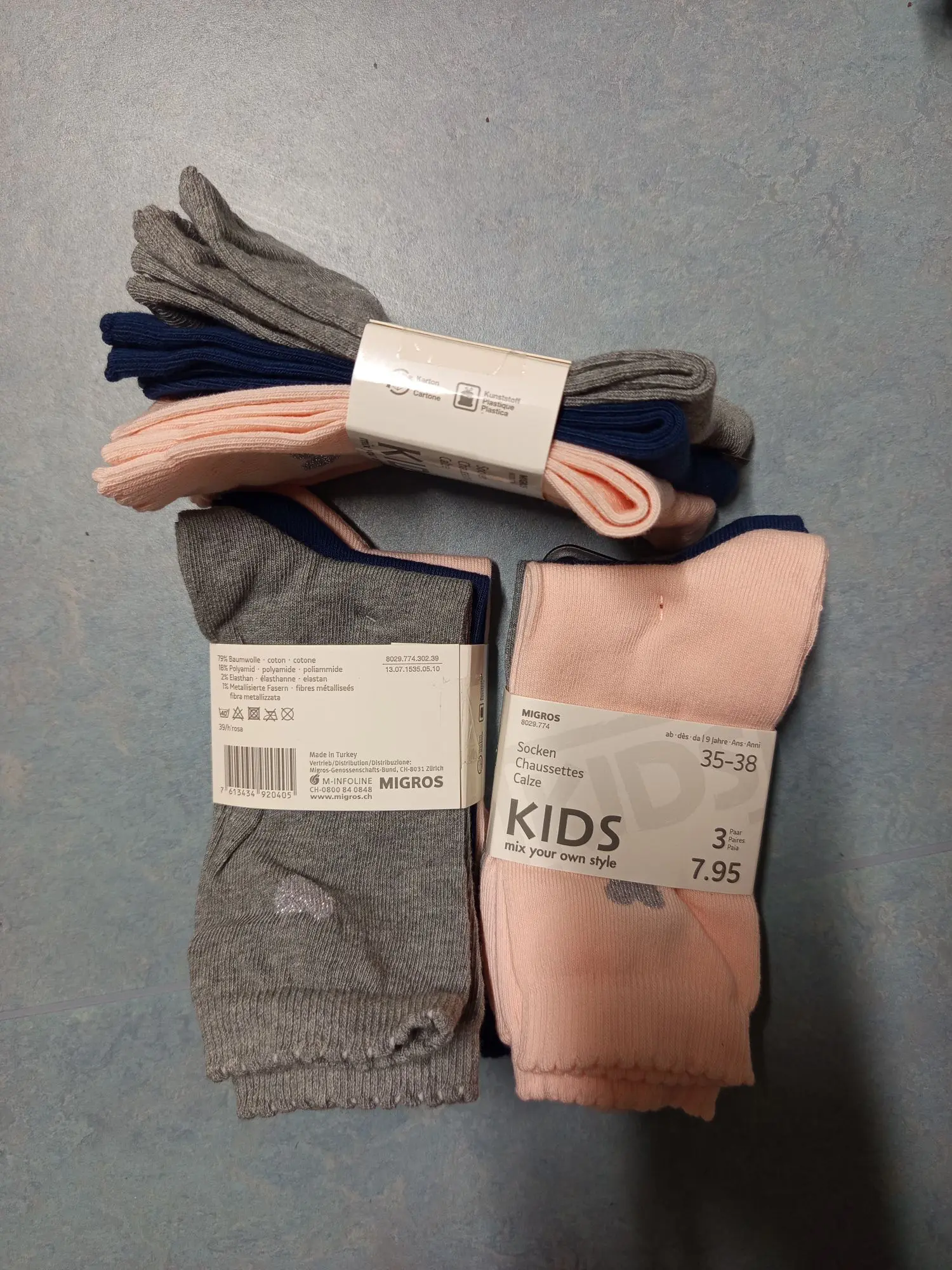 850.231: 9 Paar Kids Socken Gr. 35-38 UVP 23,85 Fr
