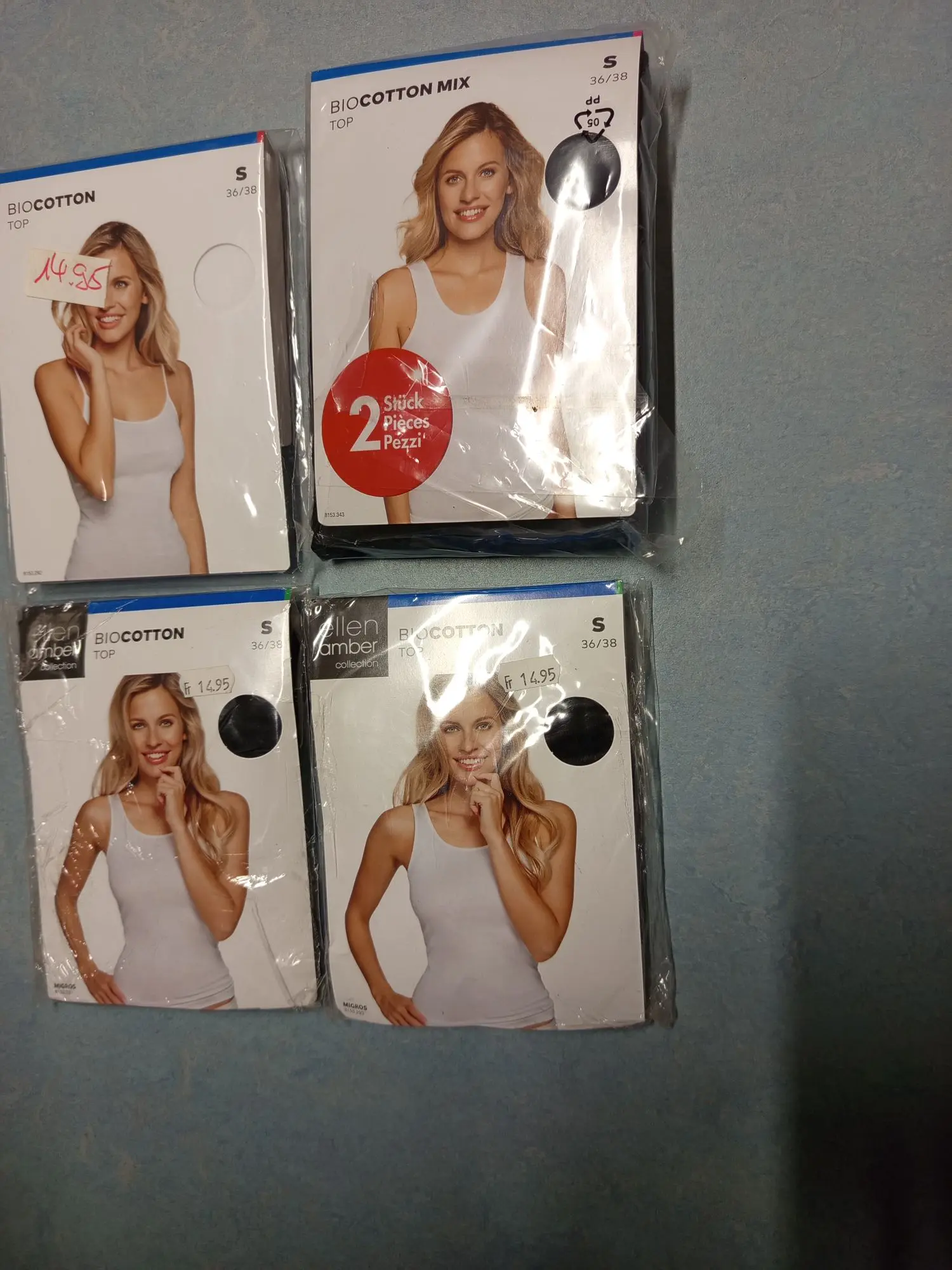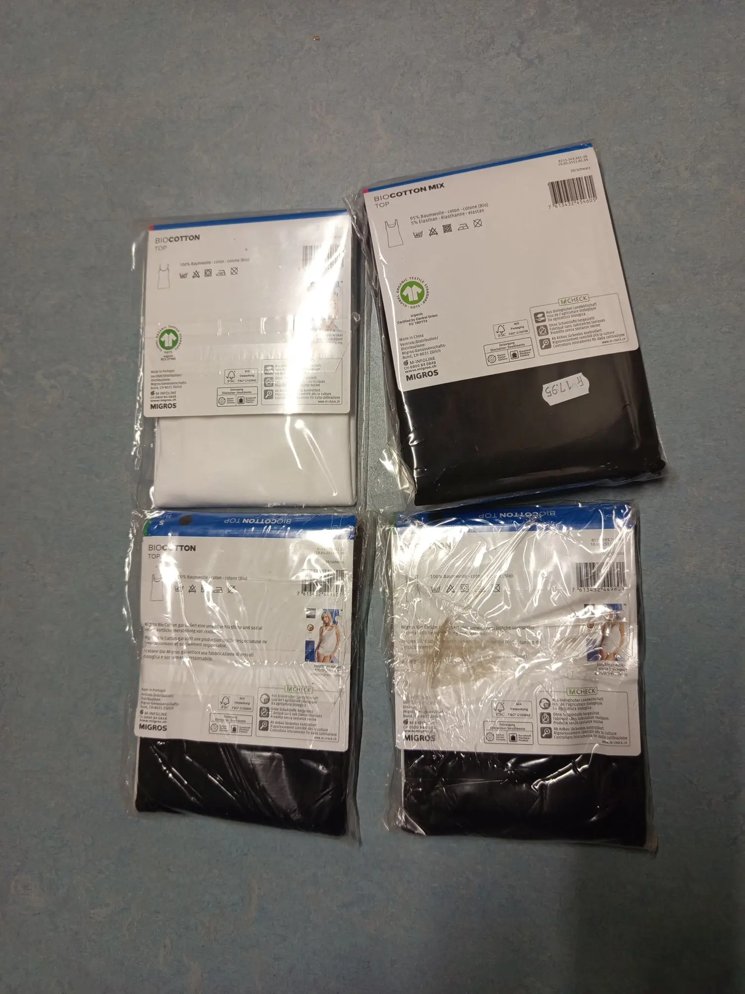 Neu OVP M224 Trägerhemd Top 3x schwarz 1x weiß Bio-Baumwolle