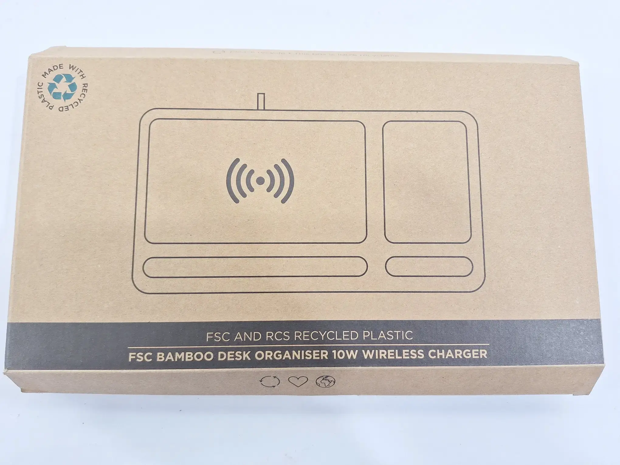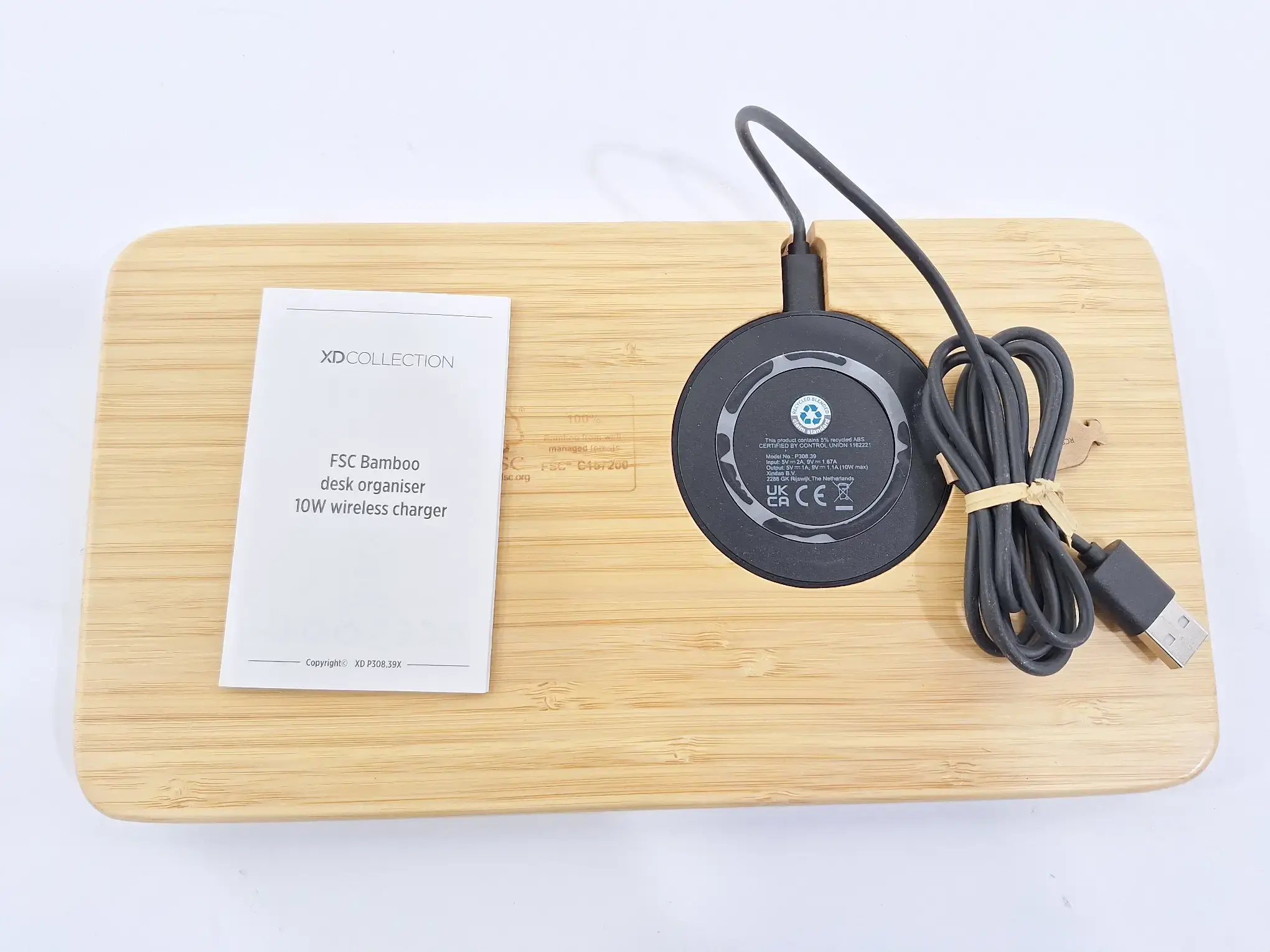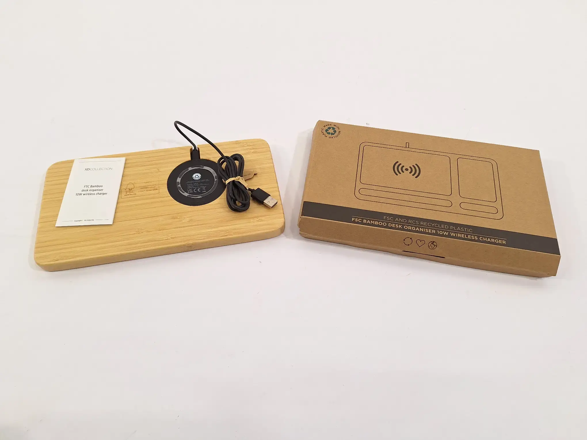 Län­ge 27 cm x Brei­te 15 cm, FSC Bam­boo Desk­top Or­ga­ni­zer 10W Wire­less Char­ger
