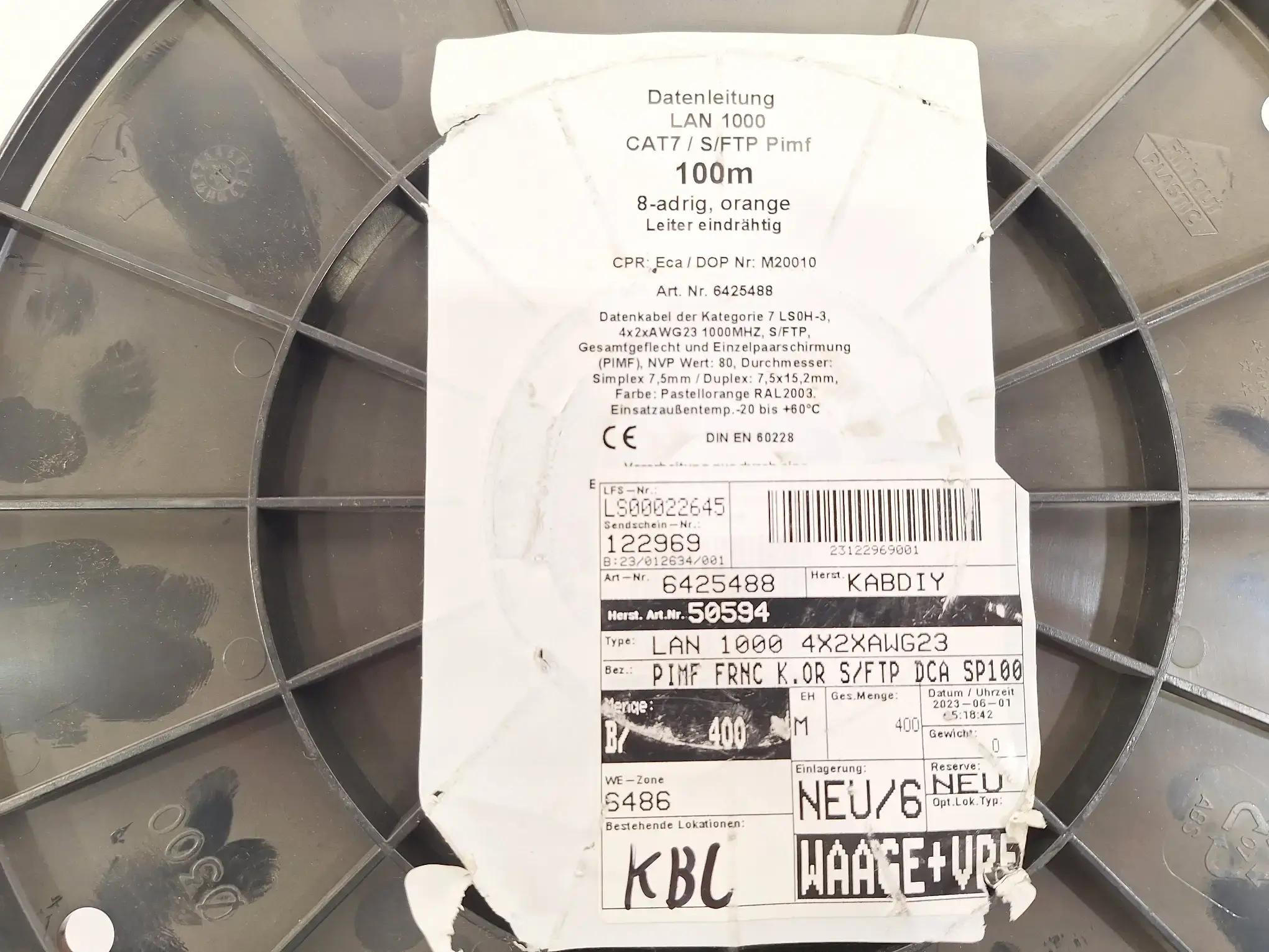 Länge 100 m, Datenleitung LAN 1000, CAT7/S/FTP Pimf Art. Nr. 6425488, beschädigt, Gewicht ca. 6 kg