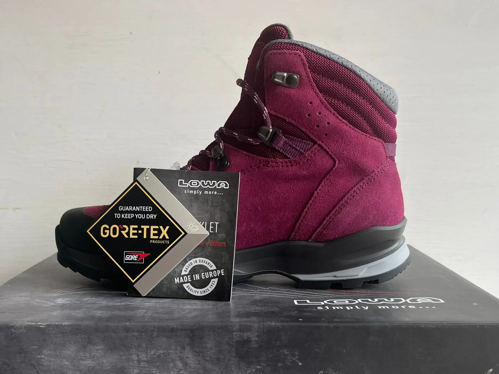 Neu OVP 220701-3705 UVP: 220 € Der LO­WA TU­CA­NA GTX Ws ist ein viel­sei­ti­ger, halb­ho­her Trek­king-Schuh, der spe­zi­ell für Wan­de­run­gen in Mit­tel­ge­bir­gen und Aus­flü­ge in die Na­tur kon­zi­piert wur­de. Der Schaft be­steht aus ei­nem ro­bus­ten Mix aus Spalt­le­der und Tex­til, der für Sta­bi­li­tät sorgt. Die Pass­form lässt sich durch Tief­zu­g­ha­ken und zu­sätz­li­che Ha­ken an der Bor­dü­re in­di­vi­du­ell an­pas­sen, so­dass der Fer­sen­halt op­ti­miert und die Fü­ße auch beim Auf- und Ab­stieg si­che­ren Halt fin­den. Ein be­son­de­res High­light ist die was­ser­dich­te GO­RE-TEX®-Mem­bran, die für ein dau­er­haft aus­ge­gli­che­nes Fu­ßkli­ma sorgt und die Fü­ße bei al­len Wet­ter­be­din­gun­gen tro­cken hält, wäh­rend schwit­zi­ge Fü­ße ver­mie­den wer­den. Die sta­bi­len TPU-Ze­hen­schutz­kap­pen bie­ten Schutz vor spit­zen Stei­nen und lo­sem Ge­röll. Die fle­xi­ble LO­WA® ELI­KA PRO Soh­le mit mul­ti­di­rek­tio­nal an­ge­ord­ne­ten Pro­fil­kan­ten ga­ran­tiert her­vor­ra­gen­de Trak­ti­on auf viel­fäl­ti­gen Un­ter­grün­den. Der Schuh ist mo­derat steif, was für an­ge­neh­me Sta­bi­li­tät und Fle­xi­bi­li­tät sorgt. Mit ei­nem Ge­wicht von ca. 1010 Gramm pro Paar (Grö­ße 38) ist der TU­CA­NA GTX Ws leicht und ide­al für län­ge­re Tou­ren. Auf­fäl­li­ge seit­li­che Prints und ge­stick­te De­si­gnele­men­te un­ter­strei­chen das sport­li­che De­sign des in Bor­deaux-Ro­se ge­hal­te­nen Mo­dells. Ins­ge­samt ist der LO­WA TU­CA­NA GTX Ws ein funk­tio­na­ler, be­que­mer und wet­ter­fes­ter Trek­king-Schuh, der Schutz, Kom­fort und Per­for­mance für Out­door-Aben­teu­er bie­tet. Merk­ma­le was­ser­dich­te GO­RE-TEX Mem­bran Sta­bi­ler Spalt­le­der-Tex­til-Mix TPU-Ze­hen­schutz­kap­pen mehr­fach ver­stell­ba­re Ha­ken mul­ti­di­rek­tio­na­le Pro­fil­soh­le Vor­tei­le op­ti­ma­ler Fer­sen­halt dau­er­haft tro­cke­nes Kli­ma ro­bus­ter Schutz vor Stei­nen in­di­vi­du­ell an­pass­ba­re Pass­form ho­her Tra­ge­kom­fort