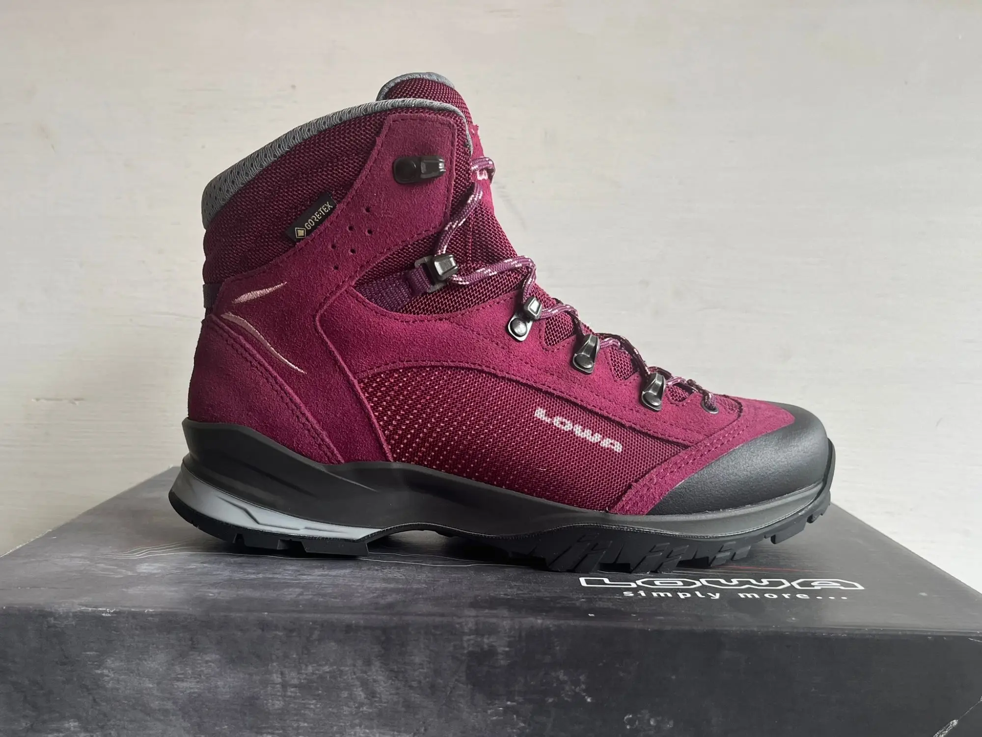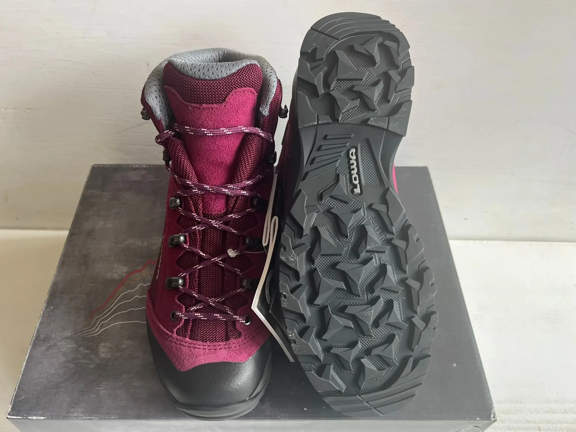 Neu OVP 220701-3705 UVP: 220 € Der LO­WA TU­CA­NA GTX Ws ist ein viel­sei­ti­ger, halb­ho­her Trek­king-Schuh, der spe­zi­ell für Wan­de­run­gen in Mit­tel­ge­bir­gen und Aus­flü­ge in die Na­tur kon­zi­piert wur­de. Der Schaft be­steht aus ei­nem ro­bus­ten Mix aus Spalt­le­der und Tex­til, der für Sta­bi­li­tät sorgt. Die Pass­form lässt sich durch Tief­zu­g­ha­ken und zu­sätz­li­che Ha­ken an der Bor­dü­re in­di­vi­du­ell an­pas­sen, so­dass der Fer­sen­halt op­ti­miert und die Fü­ße auch beim Auf- und Ab­stieg si­che­ren Halt fin­den. Ein be­son­de­res High­light ist die was­ser­dich­te GO­RE-TEX®-Mem­bran, die für ein dau­er­haft aus­ge­gli­che­nes Fu­ßkli­ma sorgt und die Fü­ße bei al­len Wet­ter­be­din­gun­gen tro­cken hält, wäh­rend schwit­zi­ge Fü­ße ver­mie­den wer­den. Die sta­bi­len TPU-Ze­hen­schutz­kap­pen bie­ten Schutz vor spit­zen Stei­nen und lo­sem Ge­röll. Die fle­xi­ble LO­WA® ELI­KA PRO Soh­le mit mul­ti­di­rek­tio­nal an­ge­ord­ne­ten Pro­fil­kan­ten ga­ran­tiert her­vor­ra­gen­de Trak­ti­on auf viel­fäl­ti­gen Un­ter­grün­den. Der Schuh ist mo­derat steif, was für an­ge­neh­me Sta­bi­li­tät und Fle­xi­bi­li­tät sorgt. Mit ei­nem Ge­wicht von ca. 1010 Gramm pro Paar (Grö­ße 38) ist der TU­CA­NA GTX Ws leicht und ide­al für län­ge­re Tou­ren. Auf­fäl­li­ge seit­li­che Prints und ge­stick­te De­si­gnele­men­te un­ter­strei­chen das sport­li­che De­sign des in Bor­deaux-Ro­se ge­hal­te­nen Mo­dells. Ins­ge­samt ist der LO­WA TU­CA­NA GTX Ws ein funk­tio­na­ler, be­que­mer und wet­ter­fes­ter Trek­king-Schuh, der Schutz, Kom­fort und Per­for­mance für Out­door-Aben­teu­er bie­tet. Merk­ma­le was­ser­dich­te GO­RE-TEX Mem­bran Sta­bi­ler Spalt­le­der-Tex­til-Mix TPU-Ze­hen­schutz­kap­pen mehr­fach ver­stell­ba­re Ha­ken mul­ti­di­rek­tio­na­le Pro­fil­soh­le Vor­tei­le op­ti­ma­ler Fer­sen­halt dau­er­haft tro­cke­nes Kli­ma ro­bus­ter Schutz vor Stei­nen in­di­vi­du­ell an­pass­ba­re Pass­form ho­her Tra­ge­kom­fort