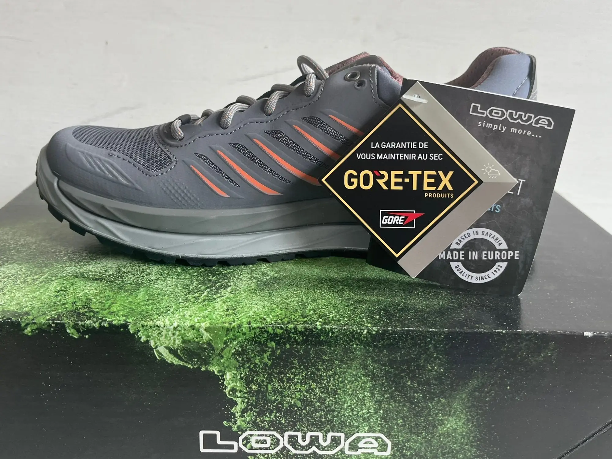 320803-9015 Der Lo­wa Axos GTX LO Ws ist ein sport­li­cher und kom­for­ta­bler Da­men­schuh, der spe­zi­ell für leich­te Ge­län­de­tou­ren und ur­ba­ne Um­ge­bun­gen ent­wi­ckelt wur­de. Er be­sticht durch sei­ne Gum­mi­soh­le Lo­wa® Ca­ma­ra Ws mit gro­ber Pro­fil­ge­stal­tung, die ei­ne grö­ße­re Kon­takt­flä­che und so­mit op­ti­ma­len Grip ga­ran­tiert. Die Zwi­schen­soh­le aus Lo­wa Dy­na­PU® sorgt für ei­ne ef­fek­ti­ve Dämp­fung, die auch län­ge­re Tou­ren an­ge­nehm macht. Durch die re­du­zier­ten Näh­te und hoch­wer­ti­gen Ma­te­ria­li­en passt sich der Schuh op­ti­mal dem Fuß an und bie­tet ei­ne ho­he Be­quem­lich­keit. Das Ober­ma­te­ri­al be­steht aus ei­ner Kom­bi­na­ti­on aus Tex­til und Syn­the­tik, wäh­rend das GO­RE-TEX-Fut­ter für Was­ser­dich­tig­keit und At­mungs­ak­ti­vi­tät sorgt. Die Soh­le ist fle­xi­bel, was das na­tür­li­che Ab­roll­ver­hal­ten des Fu­ßes un­ter­stützt. Das Ge­wicht be­trägt et­wa 680 Gramm pro Paar in Grö­ße 38, was den Schuh leicht und an­ge­nehm trag­bar macht. Auf­fäl­li­ge Farb­de­tails ver­lei­hen dem Schuh zu­dem ei­nen dy­na­mi­schen Look. Der Lo­wa Axos GTX LO ist so­mit der idea­le Be­glei­ter für sport­be­geis­ter­te Aben­teu­rer, die Wert auf Kom­fort, Funk­tio­na­li­tät und mo­der­nes De­sign le­gen. Merk­ma­le Gum­mi­soh­le mit gro­bem Pro­fil Zwi­schen­soh­le aus Lo­wa Dy­na­PU GO­RE-TEX-Fut­ter was­ser­dicht Re­du­zier­te Näh­te für Kom­fort Fle­xi­bles Soh­len­ma­te­ri­al Vor­tei­le Gu­ter Grip im Ge­län­de Op­ti­ma­le Fu­ßpass­form Ef­fek­ti­ve Dämp­fung Was­ser­dicht und at­mungs­ak­tiv Leicht und fle­xi­bel