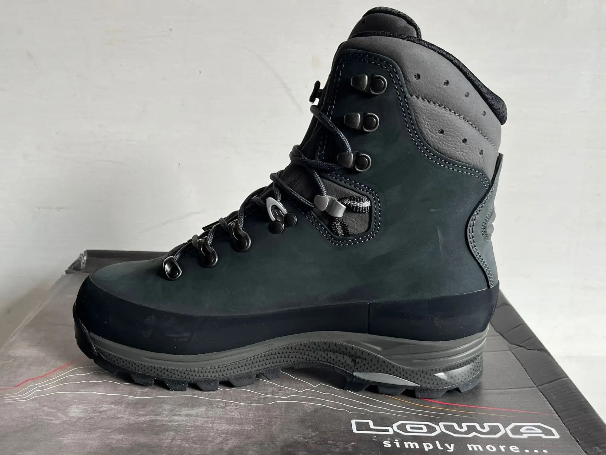 Neu­wa­re in OVP 210680-6927 UVP: 320 €/Paar Pro­dukt­be­schrei­bung für schwe­res Ge­päck auf dem Rü­cken - die LO­WA Ti­bet GTX! Die was­ser­dich­ten Wan­der­schu­he ga­ran­tie­ren durch das GO­RE-TEX-Fut­ter tro­cke­ne Fü­ße und zeich­nen sich vor al­lem durch An­schmieg­sam­keit und ein sehr ge­lun­ge­nes Ab­roll­ver­hal­ten aus. Ro­bus­tes Nu­bu­k­le­der an der Ober­sei­te sieht klas­se aus und ver­leiht den Schu­hen ih­ren ed­len Look. Ein um­lau­fen­der Gum­mi­rand schützt das Ma­te­ri­al vor Schmutz und Ab­rieb! Die Ze­hen­kap­pe mil­dert Stö­ße ge­gen spit­ze Kan­ten und Ge­röll ab. Durch die spe­zi­el­le La­schen­kon­struk­ti­on drückt das Ma­te­ri­al nicht auf den Fuß. Sie ist mit ei­ner asym­me­tri­schen Pols­te­rung aus­ge­stat­tet, die die Fu­ßau­ßen­sei­te schützt. Zu­dem spart sie die Knö­chel­be­rei­che aus, so dass an die­sen emp­find­li­chen Stel­len nichts reibt. Oben ist die La­sche be­son­ders weich, so dass die Schu­he beim Ge­hen kei­ne schmer­zen­den Stel­len am Schien­bein hin­ter­las­sen. Ein elas­ti­scher Ein­satz in der La­sche un­ter­stützt die na­tür­li­che Ab­roll­be­we­gung des Fu­ßes. Die Ti­bet GTX kom­men mit der I-Lock-Schnü­rung. Die­se sorgt da­für, dass die Klemm­ha­ken im Rist­be­reich die Schnü­rung beim An­zie­hen fi­xie­ren. So kann die Zwei-Zo­nen-Schnü­rung nach­ein­an­der fest­ge­zo­gen wer­den, da­mit die Schu­he op­ti­mal am Fuß Halt fin­den. Die Vi­bram-Gum­mi­soh­le sorgt da­für, dass man auf Hoch­tou­ren oder beim Back­pa­cken auf je­dem Un­ter­grund gut vor­an­kommt. Das tie­fe Berg­schuh­pro­fil ga­ran­tiert bes­ten Grip - auch auf nas­sem Un­ter­grund oder auf dem Weg nach un­ten. Die Clim­bing Zo­ne an der Vor­der­sei­te der Soh­le lässt auch stei­le­re Auf­stie­ge meis­tern. Für aus­gie­bi­ge Trek­king­tou­ren im Flach­land und ge­mä­ßig­ten al­pi­nen Ge­län­de sind die Ti­bet GTX ei­ne sehr gu­te Wahl.