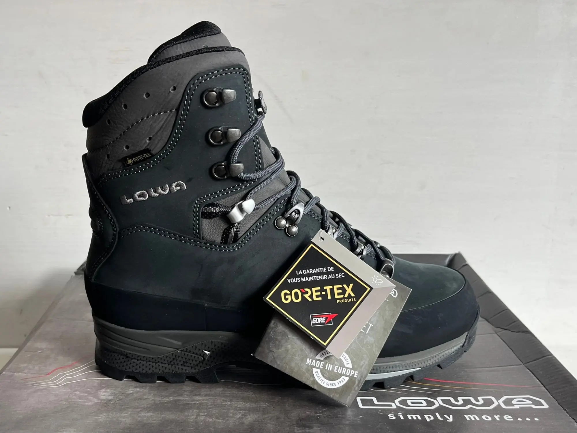 Neu­wa­re in OVP 210680-6927 UVP: 320 €/Paar Pro­dukt­be­schrei­bung für schwe­res Ge­päck auf dem Rü­cken - die LO­WA Ti­bet GTX! Die was­ser­dich­ten Wan­der­schu­he ga­ran­tie­ren durch das GO­RE-TEX-Fut­ter tro­cke­ne Fü­ße und zeich­nen sich vor al­lem durch An­schmieg­sam­keit und ein sehr ge­lun­ge­nes Ab­roll­ver­hal­ten aus. Ro­bus­tes Nu­bu­k­le­der an der Ober­sei­te sieht klas­se aus und ver­leiht den Schu­hen ih­ren ed­len Look. Ein um­lau­fen­der Gum­mi­rand schützt das Ma­te­ri­al vor Schmutz und Ab­rieb! Die Ze­hen­kap­pe mil­dert Stö­ße ge­gen spit­ze Kan­ten und Ge­röll ab. Durch die spe­zi­el­le La­schen­kon­struk­ti­on drückt das Ma­te­ri­al nicht auf den Fuß. Sie ist mit ei­ner asym­me­tri­schen Pols­te­rung aus­ge­stat­tet, die die Fu­ßau­ßen­sei­te schützt. Zu­dem spart sie die Knö­chel­be­rei­che aus, so dass an die­sen emp­find­li­chen Stel­len nichts reibt. Oben ist die La­sche be­son­ders weich, so dass die Schu­he beim Ge­hen kei­ne schmer­zen­den Stel­len am Schien­bein hin­ter­las­sen. Ein elas­ti­scher Ein­satz in der La­sche un­ter­stützt die na­tür­li­che Ab­roll­be­we­gung des Fu­ßes. Die Ti­bet GTX kom­men mit der I-Lock-Schnü­rung. Die­se sorgt da­für, dass die Klemm­ha­ken im Rist­be­reich die Schnü­rung beim An­zie­hen fi­xie­ren. So kann die Zwei-Zo­nen-Schnü­rung nach­ein­an­der fest­ge­zo­gen wer­den, da­mit die Schu­he op­ti­mal am Fuß Halt fin­den. Die Vi­bram-Gum­mi­soh­le sorgt da­für, dass man auf Hoch­tou­ren oder beim Back­pa­cken auf je­dem Un­ter­grund gut vor­an­kommt. Das tie­fe Berg­schuh­pro­fil ga­ran­tiert bes­ten Grip - auch auf nas­sem Un­ter­grund oder auf dem Weg nach un­ten. Die Clim­bing Zo­ne an der Vor­der­sei­te der Soh­le lässt auch stei­le­re Auf­stie­ge meis­tern. Für aus­gie­bi­ge Trek­king­tou­ren im Flach­land und ge­mä­ßig­ten al­pi­nen Ge­län­de sind die Ti­bet GTX ei­ne sehr gu­te Wahl.