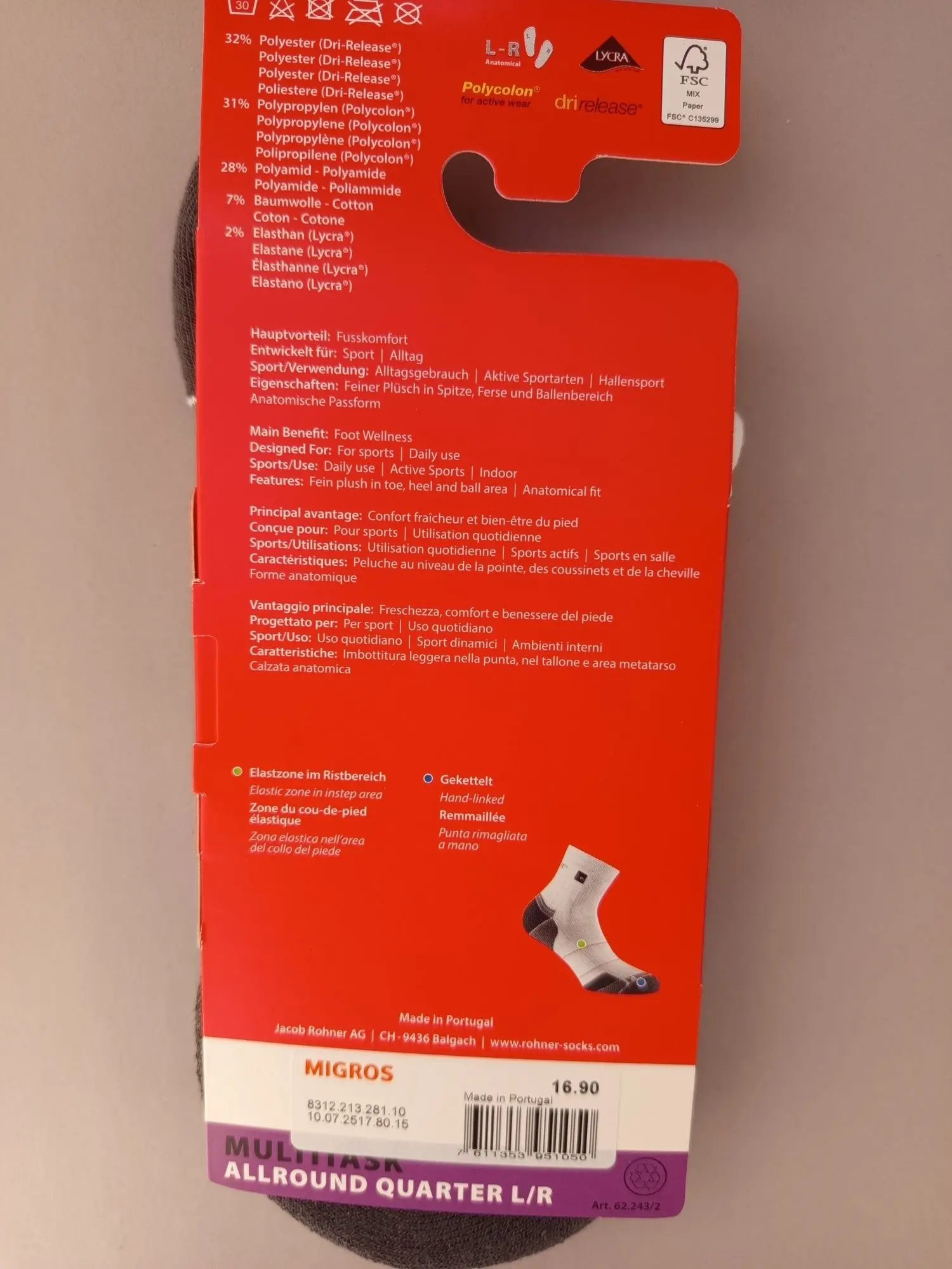 Neu OVP SOC2 Rohner ist ein Schweizer Traditionsunternehmen, das seit 1930 für erstklassige Qualität und innovative Funktionalität im Bereich hochwertiger Outdoor- und Sportsocken steht. Rohner Socken begleiten Sie im Alltag, auf Reisen und in Extremsituationen. Diese funktionale Socke wurde für alle Sport-/Naturliebhaber entwickelt. Sie bietet leichten und atmungsaktiven Komfort. Ihre anatomische Form umschließt Ihren Fuß und sorgt für eine Passform, die jede Bewegung mitmacht. Hauptvorteile: Fußkomfort. Entwickelt für Sport und Alltag. Aktive Sportarten von Running zu Wandern, Hallensport. Feiner Plüsch in Spitze, Ferse und Ballenbereich sorgt für perfekten Tragekomfort. Anatomische Passform. Handgekettelt. 32% Polyester, 31% Polypropylen, 28% Polyamid, 7% Baumwolle, 2% Elasthan.