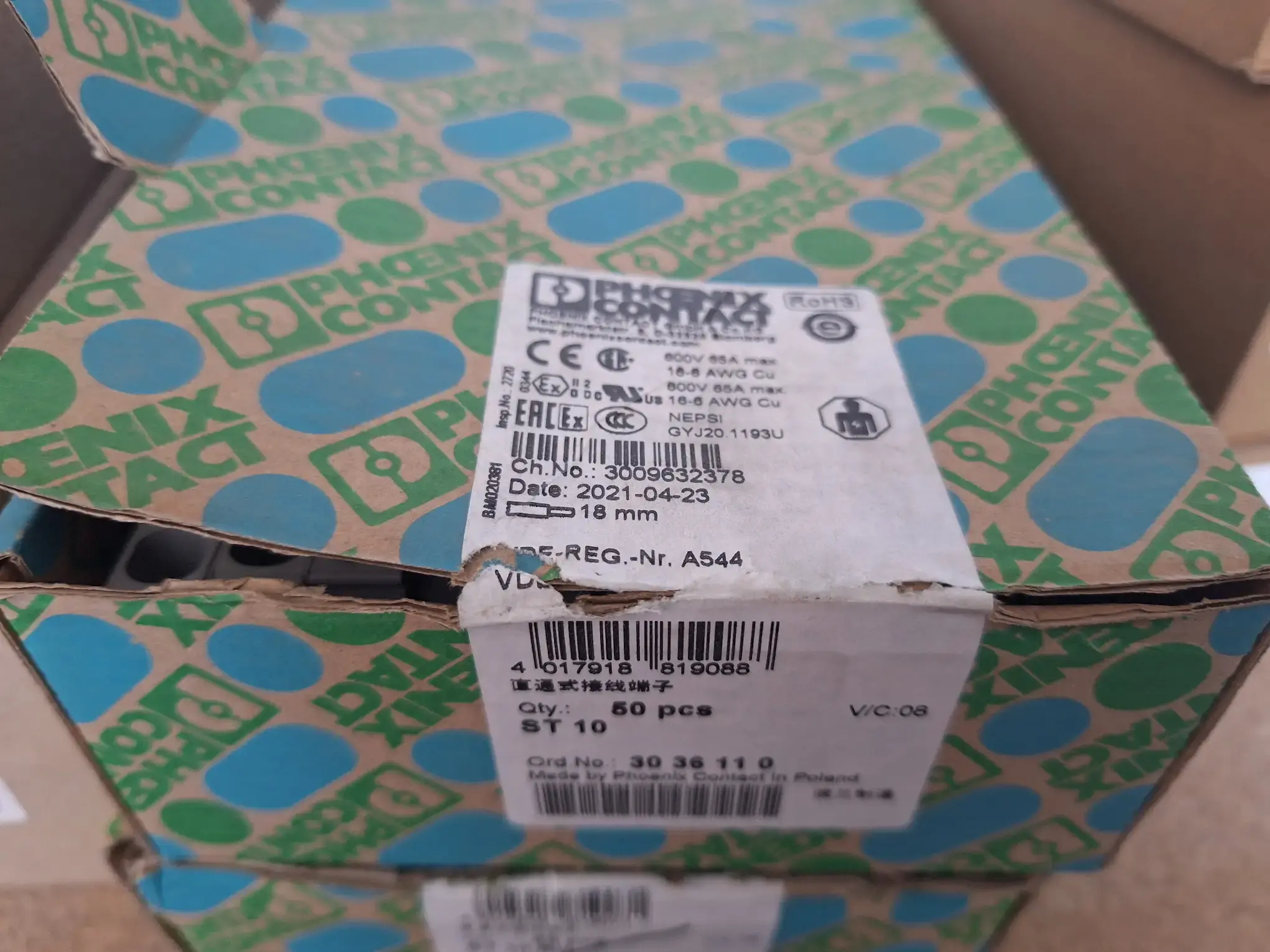 296.061: 2 Packungen Durchgangsklemmen (Phoenix Contact)