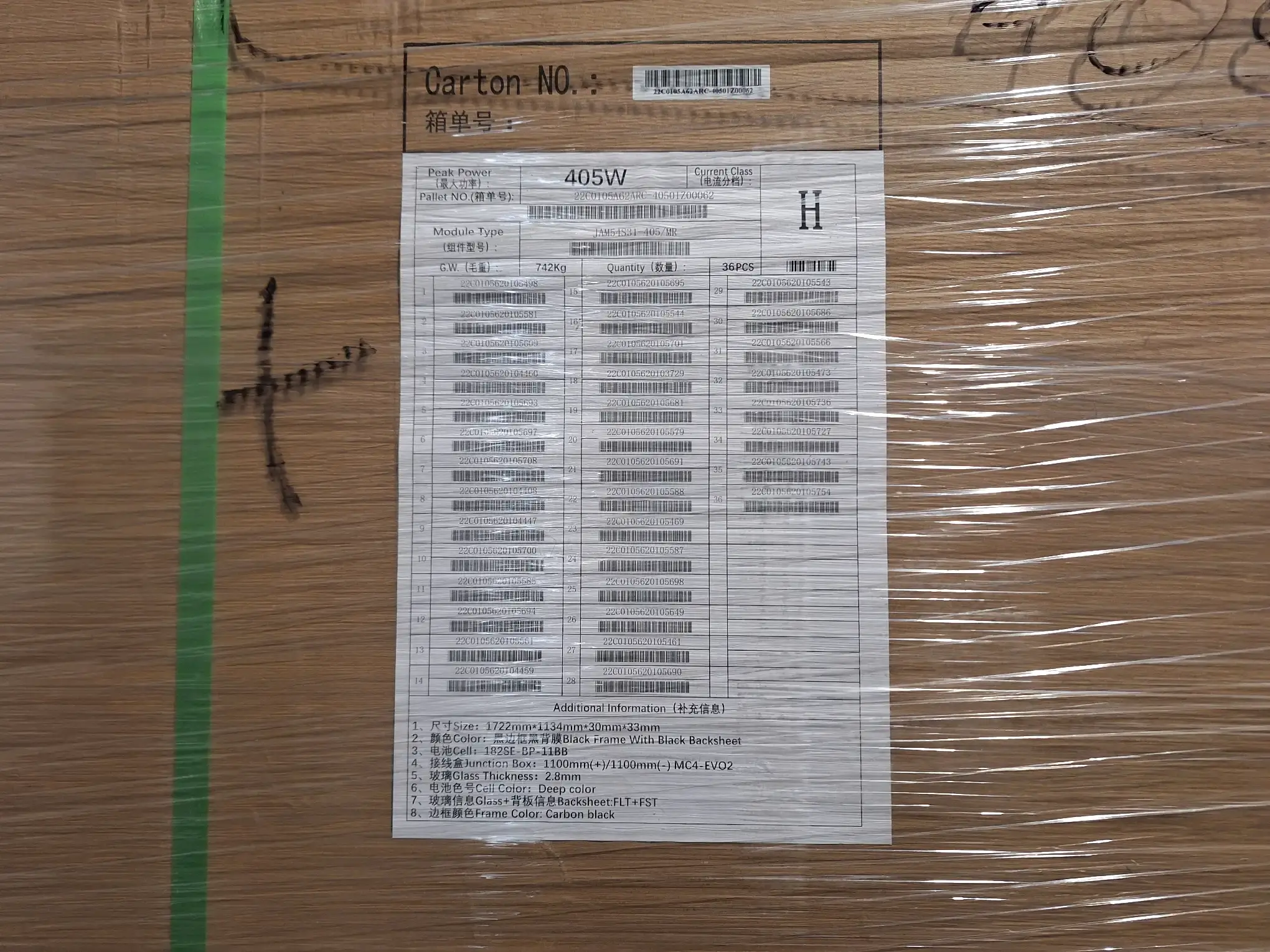 294.576: 36 Stk. PV-Module (JA Solar)