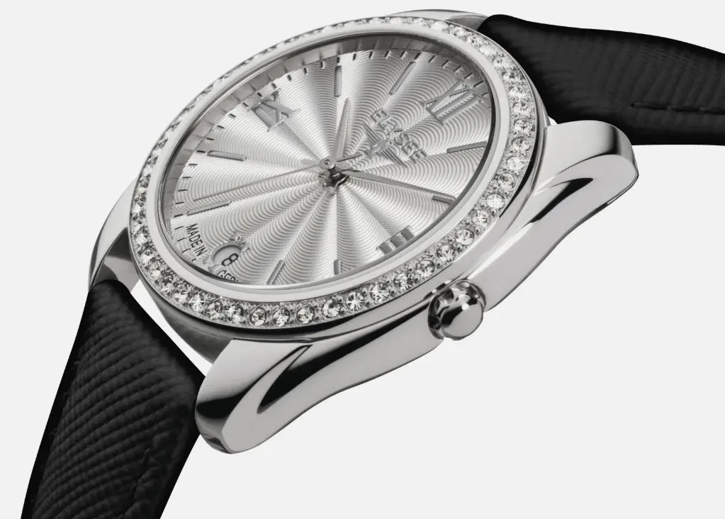 Neu OVP Diana 28600B Die vielfältige Damenuhr DIANA überzeugt durch ein edles und zeitloses Design. DIANA ist eine hochwertige Quarzuhr mit einem polierten Edelstahl-Gehäuse, die es in vielen verschiedenen Ausführungen gibt. Durch das guillochierte Zifferblatt und die graziös platzierten Schmucksteine erhält diese edle Damenuhr ihren femininen Touch. Die Gehäuse-Varianten aus Edelstahl, vergoldet und rosé-vergoldet lassen sich prima mit verschiedenfarbigen Lederarmbändern kombinieren. Probieren Sie es aus! Gehäuse: Edelstahl, Zifferblatt: Silber Armband: Schwarzes Lederband Glas: Entspiegeltes Mineralglas mit Saphir-Beschichtung Durchmesser: 32 mm Höhe: 10 mm Gewicht: 33 g Uhrwerk: Quarz, Citizen/Miyota GM10 Funktionen: Datum, guillochiertes Zifferblatt Besonderheiten: Schmucksteine Wasserdichte: 5 atm Schließe: Dornschließe Bandanstoß: 16 mm Label: Made in Germany
