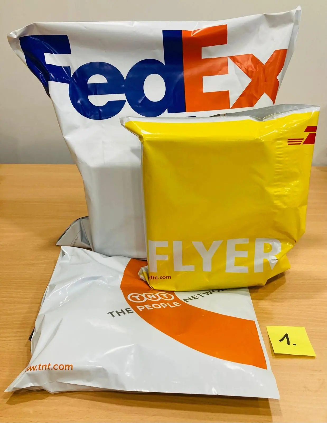 UPS-DHL-FE­DEX-TNT-Ver­sand­ta­schen als Se­cret Pack - bun­ter zu­fäl­li­ger Mix be­ste­hend aus 3 Ver­sand­ta­schen -