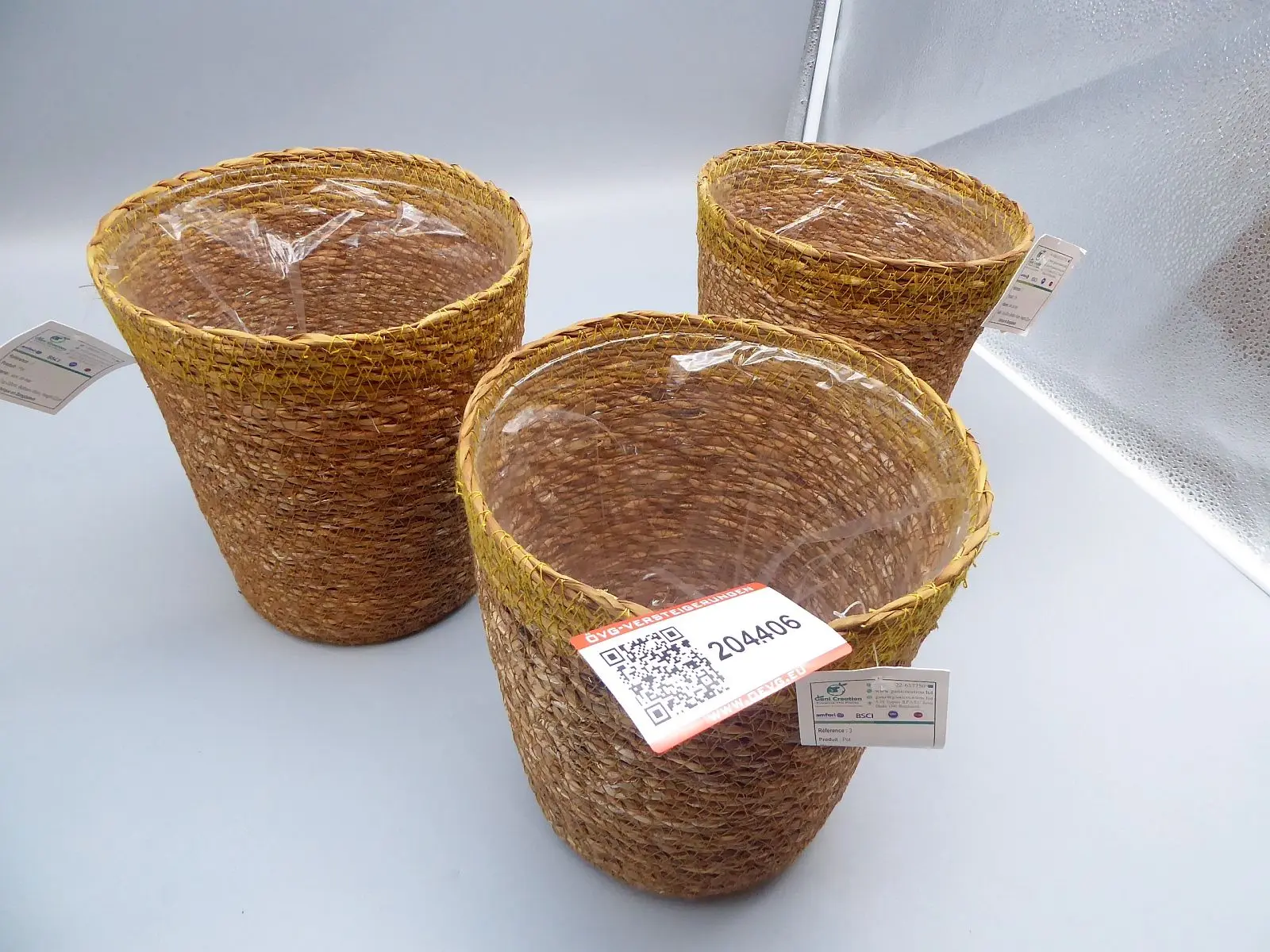 204.406: 3 Stk. Blumenübertöpfe Seegras DM 20