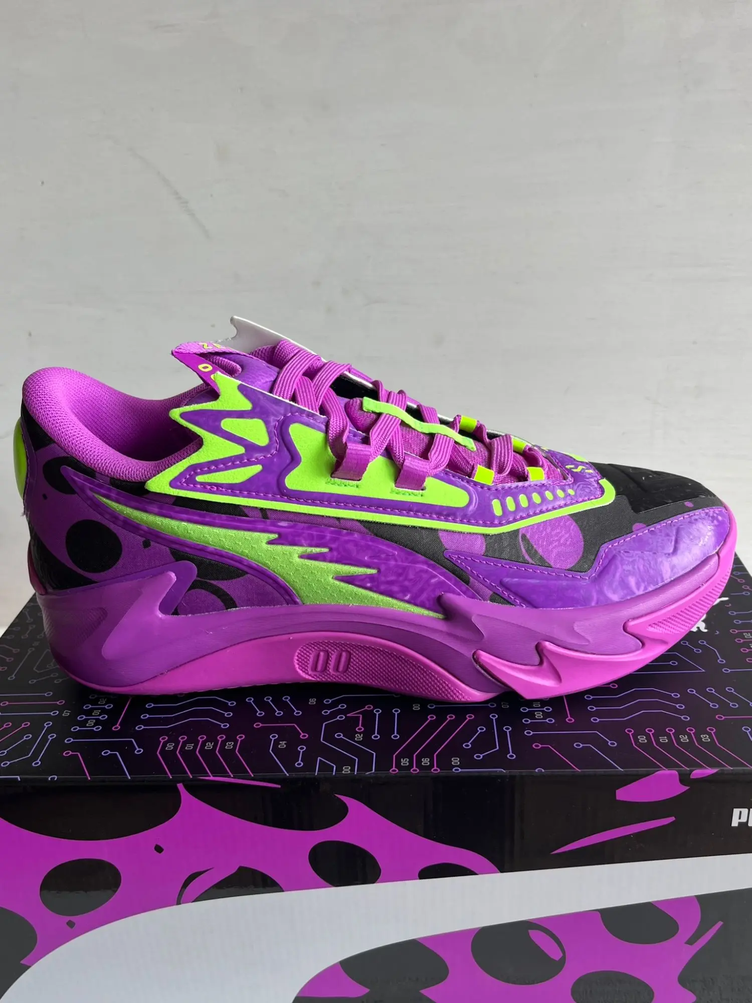 Snea­ker - Hal­len­schu­he Unisex 311352-01 Neu OVP Der PU­MA Scoot Ze­ros II Lab ist ein in­no­va­ti­ver In­door-Schuh, der spe­zi­ell für schnel­le und agi­le Be­we­gun­gen in der Hal­le ent­wi­ckelt wur­de. Mit sei­ner at­mungs­ak­ti­ven Kon­struk­ti­on hält er die Fü­ße auch bei in­ten­si­ven Trai­nings­ein­hei­ten an­ge­nehm tro­cken. Die spe­zi­el­le Dämp­fungs­tech­no­lo­gie und die ge­pols­ter­ten Zo­nen sor­gen für ho­hen Kom­fort, ent­las­ten Druck­punk­te und ver­mit­teln ein sehr an­ge­neh­mes Lauf­ge­fühl. Trotz der ro­bus­ten Bau­wei­se ist der Schuh leicht und ver­leiht da­durch ein Ge­fühl von Frei­heit bei je­dem Schritt. Das auf­fäl­li­ge De­sign in Li­la mit grü­nen Ak­zen­ten ver­bin­det mo­der­nen Stil mit tra­di­tio­nel­lem Kom­fort und macht den Schuh auch für den All­tag ge­eig­net. Pu­ma setzt hier auf hoch­wer­ti­ge Ma­te­ria­li­en aus Syn­the­tik und Tex­til, die für Halt­bar­keit und gu­te Grif­fig­keit sor­gen. Der PU­MA Scoot Ze­ros II Lab ist so­mit die per­fek­te Kom­bi­na­ti­on aus Per­for­mance, Kom­fort und tren­di­gem Look für sport­li­che Hal­len­ak­ti­vi­tä­ten und mo­di­sche An­sprü­che. Die Qua­li­tät von PU­MA zeigt sich in je­dem De­tail die­ses viel­sei­ti­gen Snea­kers.