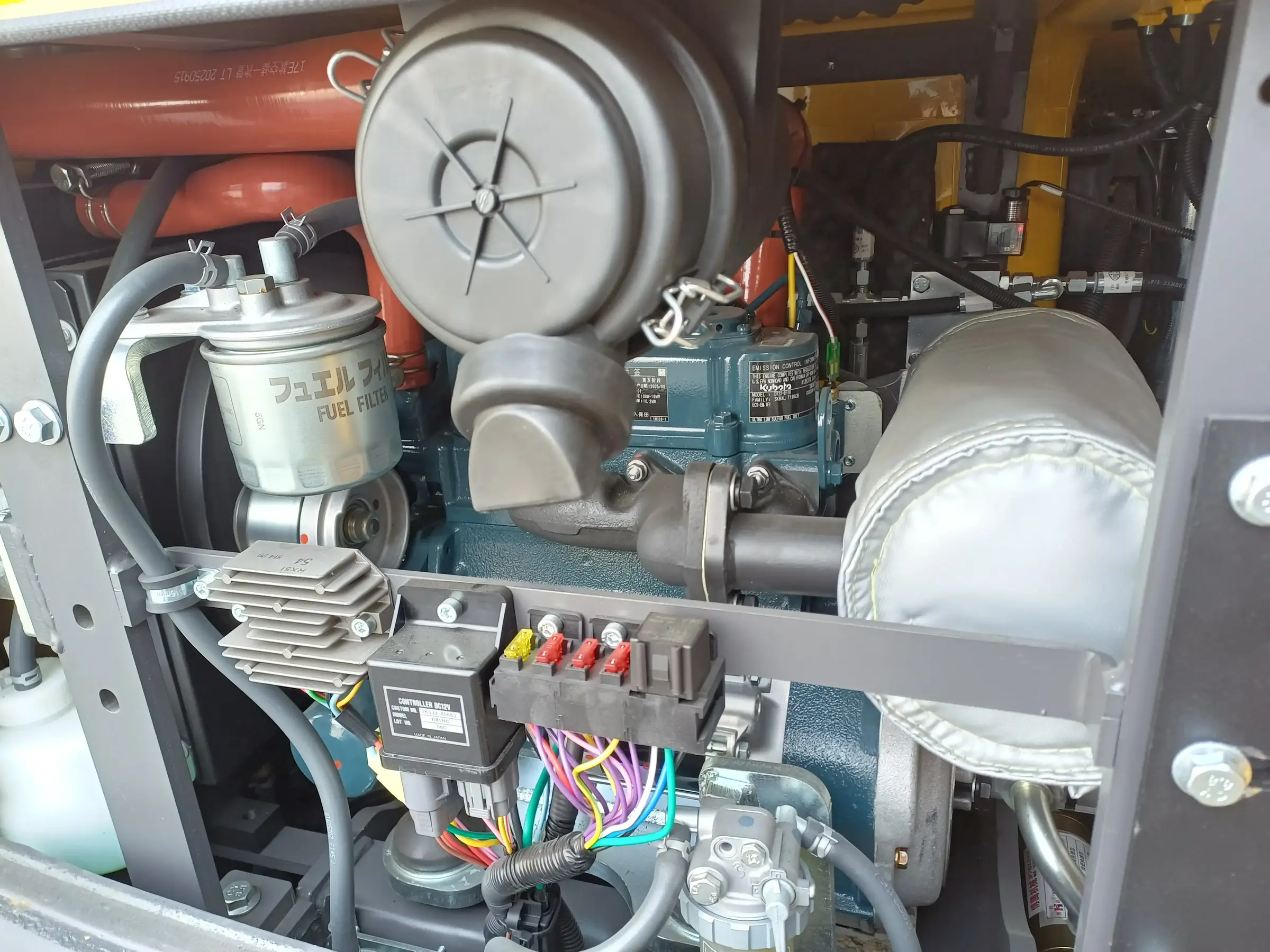 Einsatzgewicht: 1800 kg, mechanischer Schnellwechsler, 10,2 kW, wassergekühlter Dreizylinder-Kubota-Dieselmotor, Gesamtlänge: 2870 mm, Gesamtbreite: 930 mm, Höhe mit/ohne Dach: 2285 mm/2030 mm, 30er, 50er Tieflöffel, 80er Böschungslöffel