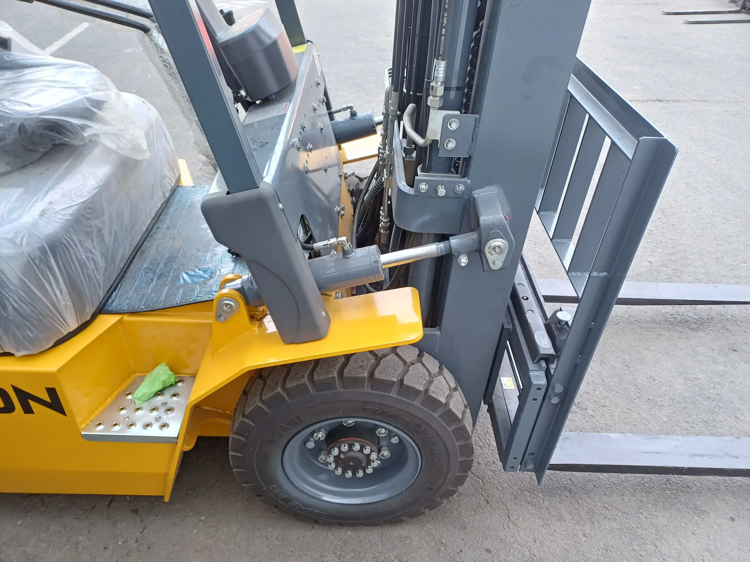 Nennhublast: 2500 kg, Xinchai-Motor (40 kW), mit Dieselpartikelfilter, Seitenverschub, Automatikgetriebe, Hubhöhe: 4,5 m, Dreifachmast, Zusatzhydraulik