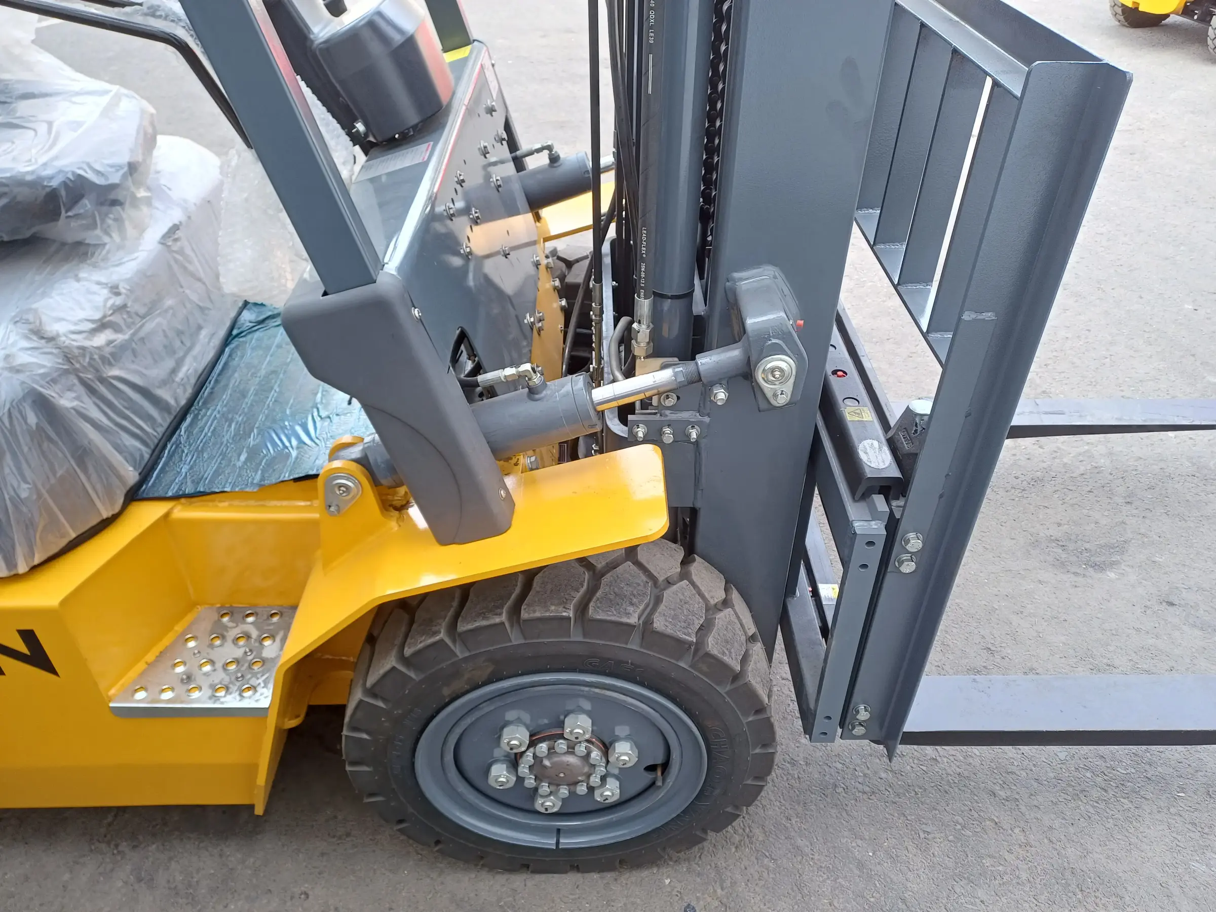 Nennhublast: 3000 kg, Eigengewicht: 4300 kg, Xinchai-Motor (40 kW), Seitenverschub, Automatikgetriebe, Hubhöhe: 4,5 m, Dreifachmast, Zusatzhydraulik