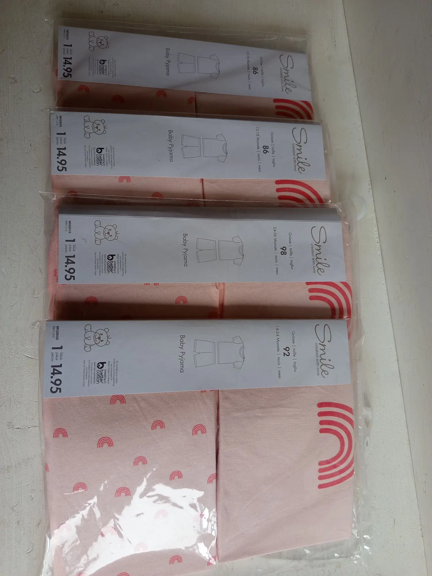 851.224: 4 Stk. Baby Pyjama Gr 86-98 UVP 59,80€