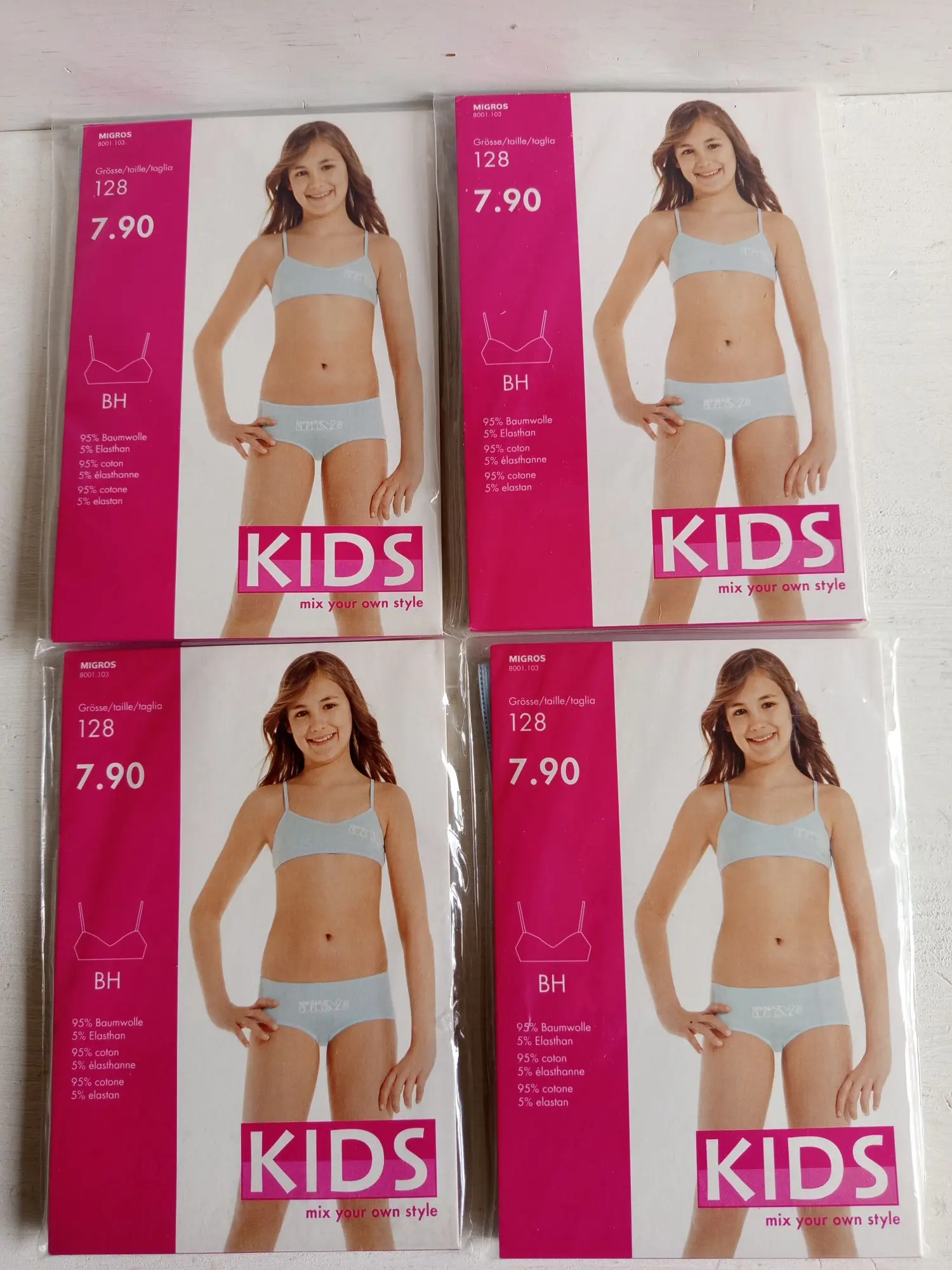 851.232: 4 Stk. Kinder BH Gr 128 UVP 31,60€