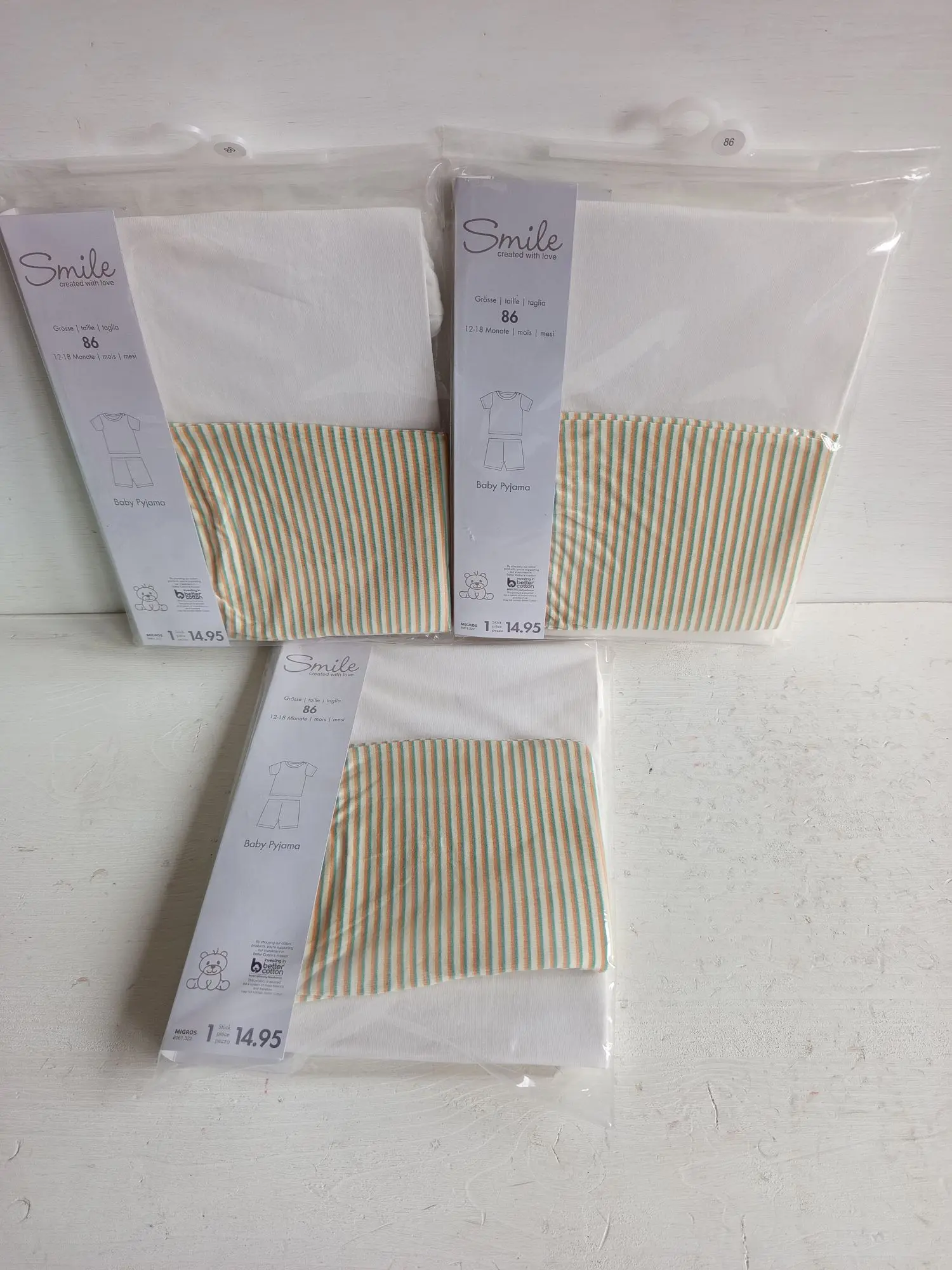 851.258: 3 Stk. Baby Pyjama Gr 86 UVP 44,85€