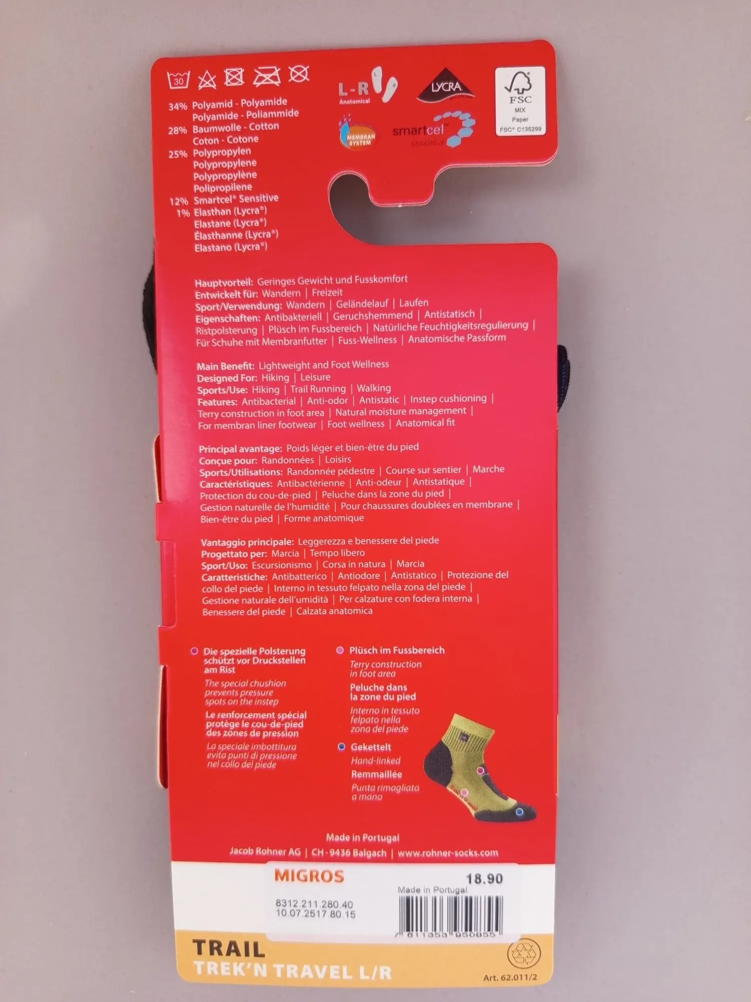 851.334: 3 Paar Rohner Trekn Travel L/R Gr. 36-38 UVP 56,70 Fr