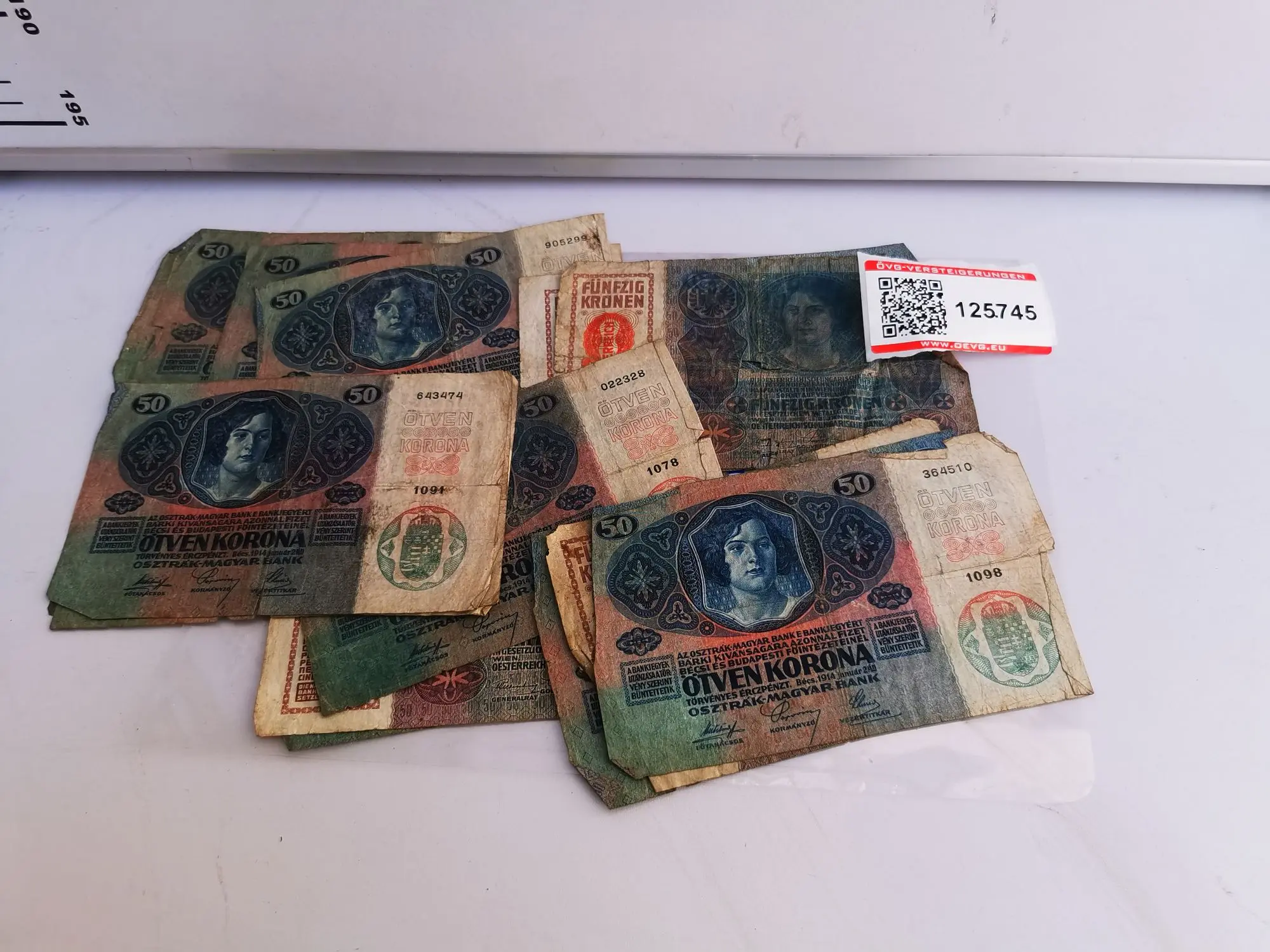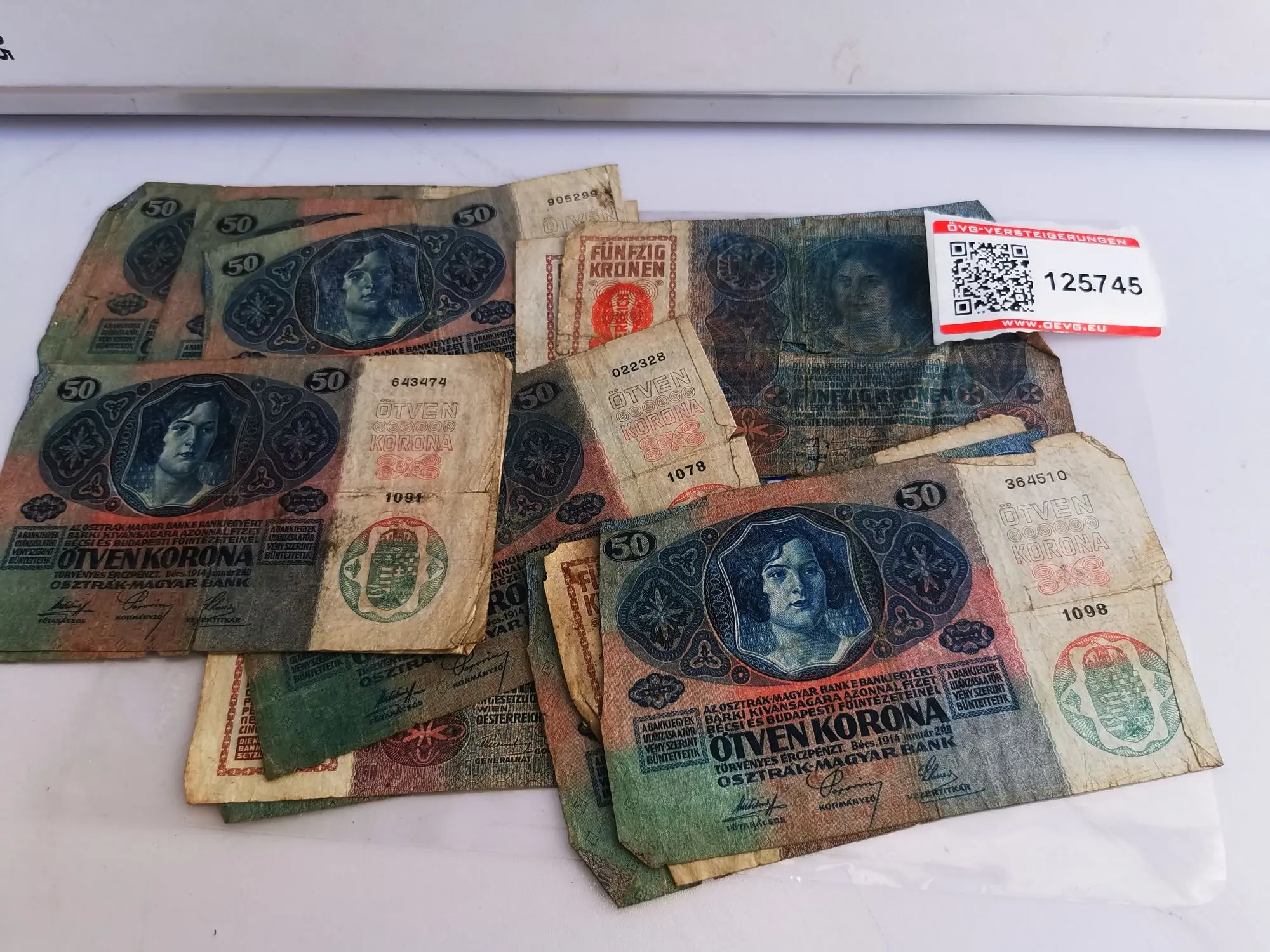125.745: 15 Stk. Bank­no­ten 50 Kro­nen aus Ös­terr. Un­garn 1914