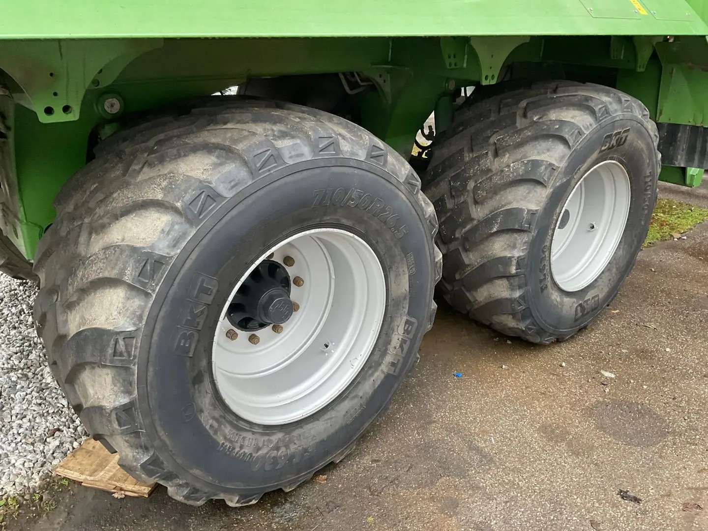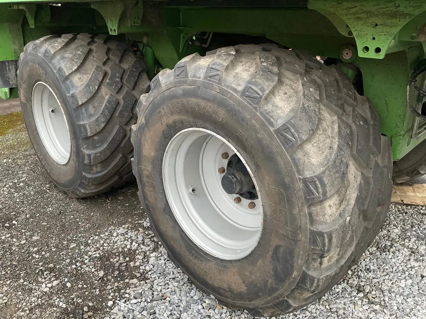 La­de­vo­lu­men 46 m³, Zwangs­len­kung, Be­rei­fung 710/50 R26,5 80%, DLA, Knick­deich­sel, hyr. Stütz­fuss