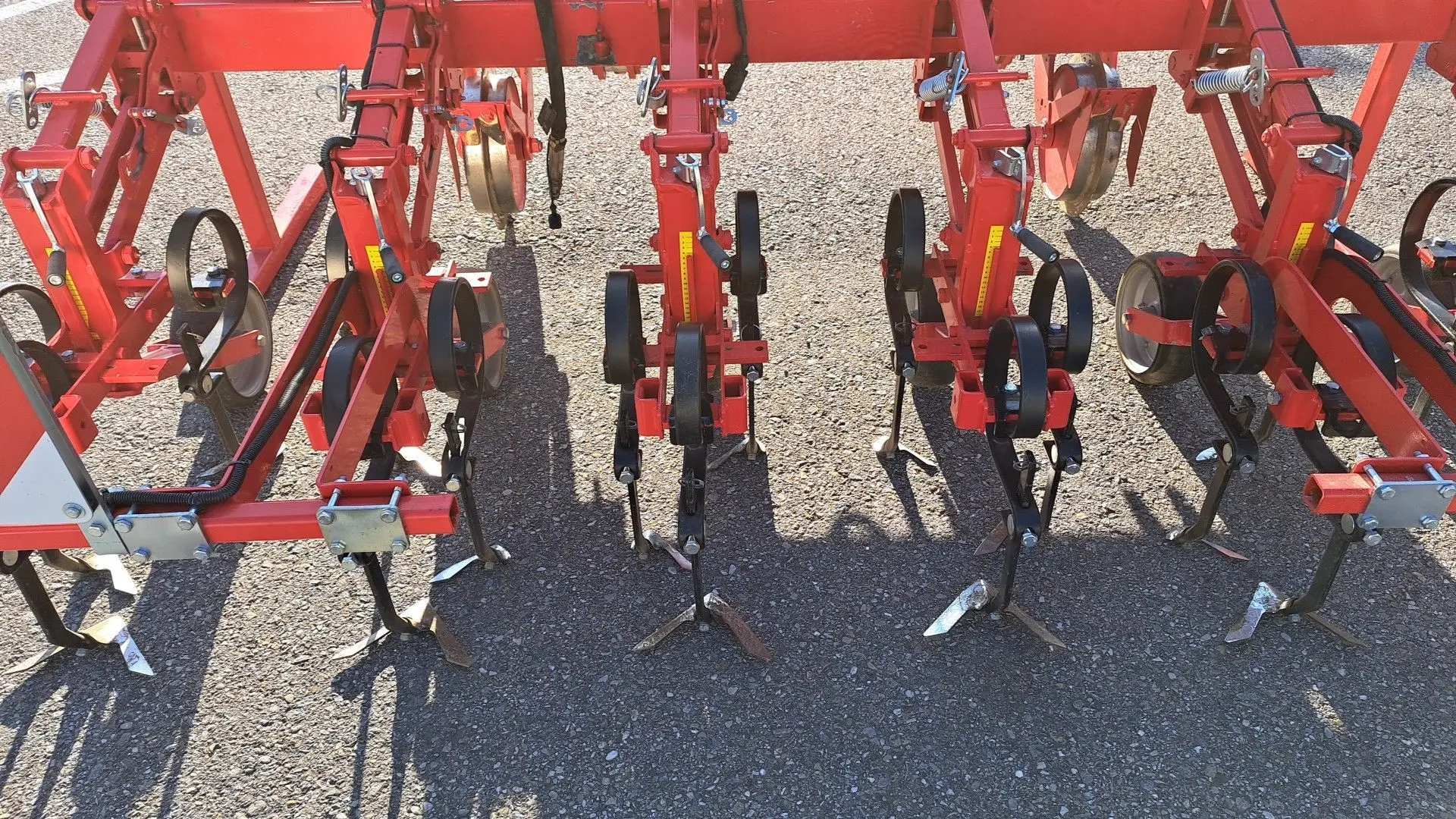 6 rei­hig, Heck­an­bau, 72 cm Rei­hen­ab­stand, hy­dr. klapp­bar, 7, Par­al­le­gram­me, nach­stell­ba­re Zin­ken, hö­hen u. Sei­ten­ver­stell­bar, Ka­me­ra­len­kung Row Gu­rad 500, Ka­me­ra Er­ken­nung, Ver­schie­be­weg 500 mm, Mo­ni­tor zur Über­wa­chung, Ge­schwin­dig­keits­sen­sor, Schnell­kupp­ler
