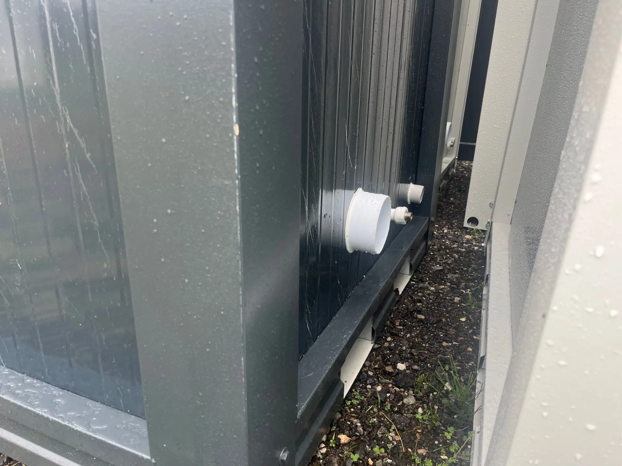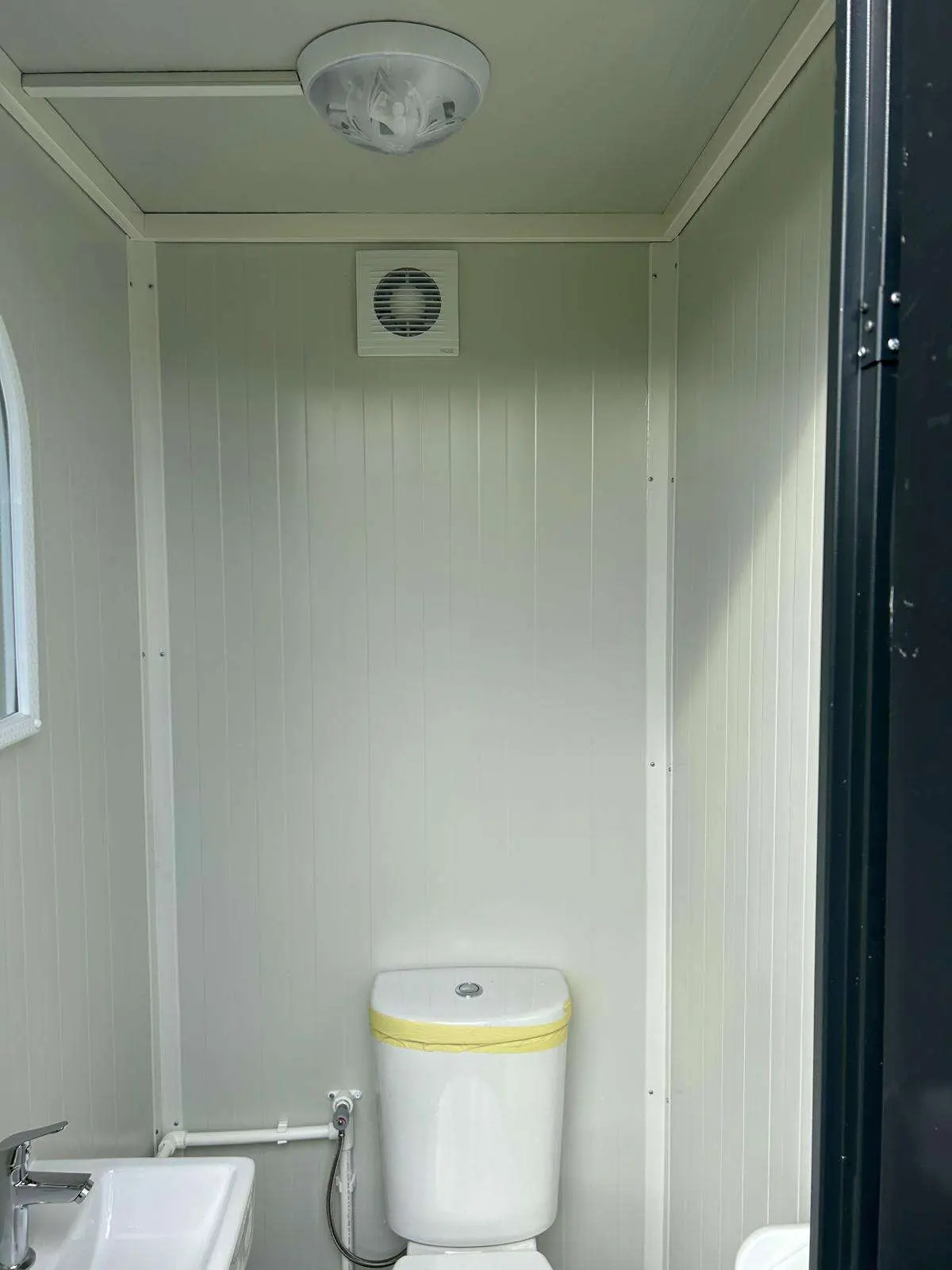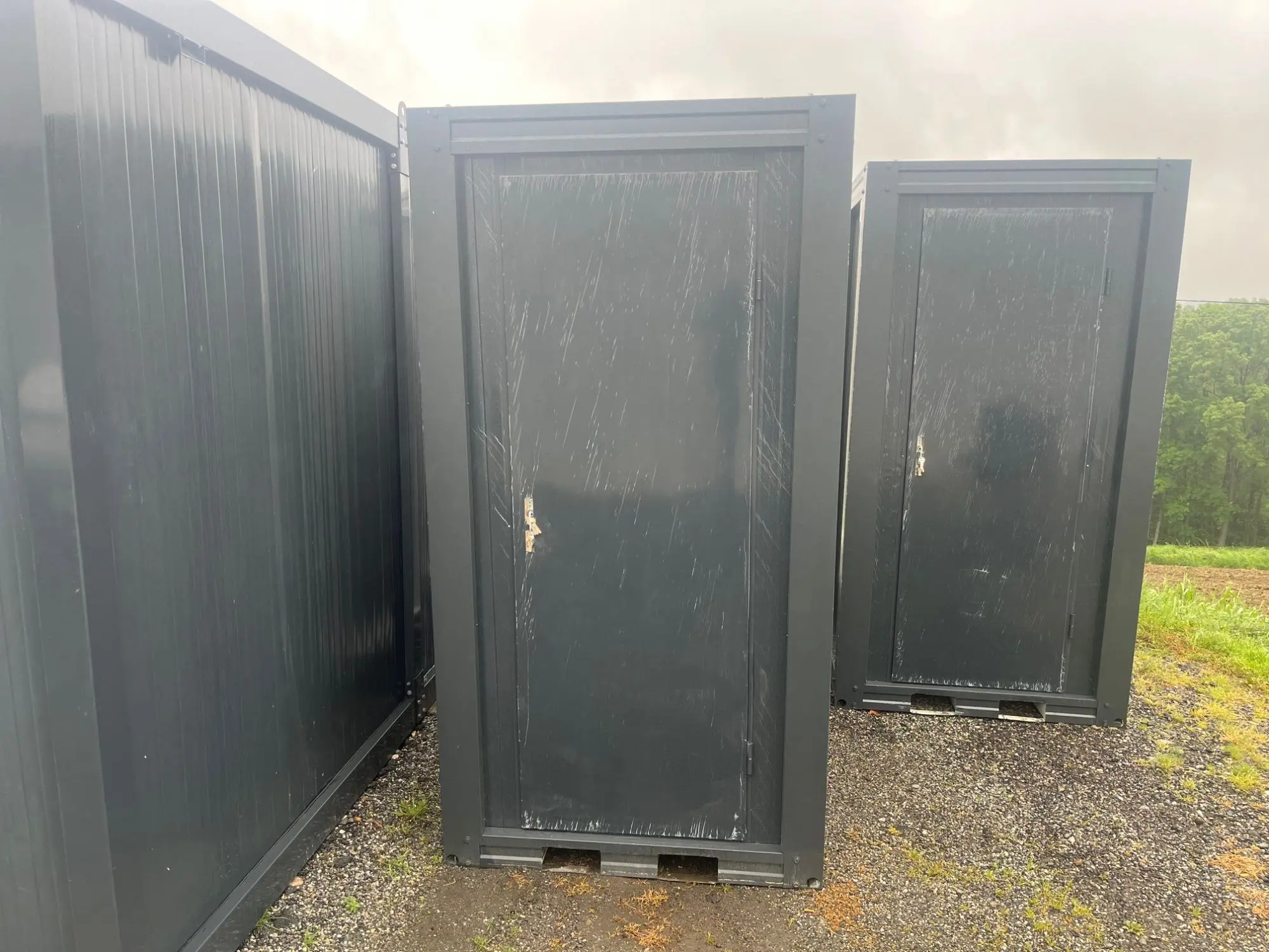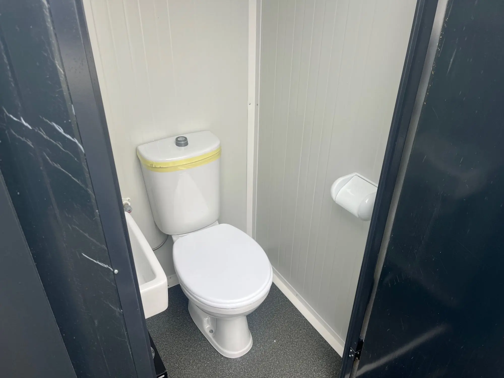 WC-Container, Farbe anthrazit, Maße: 120 cm mal 110 cm mal 230 cm Höhe, inkl. WC, Waschbecken, Lampe, Spiegel, Rollenhalterung