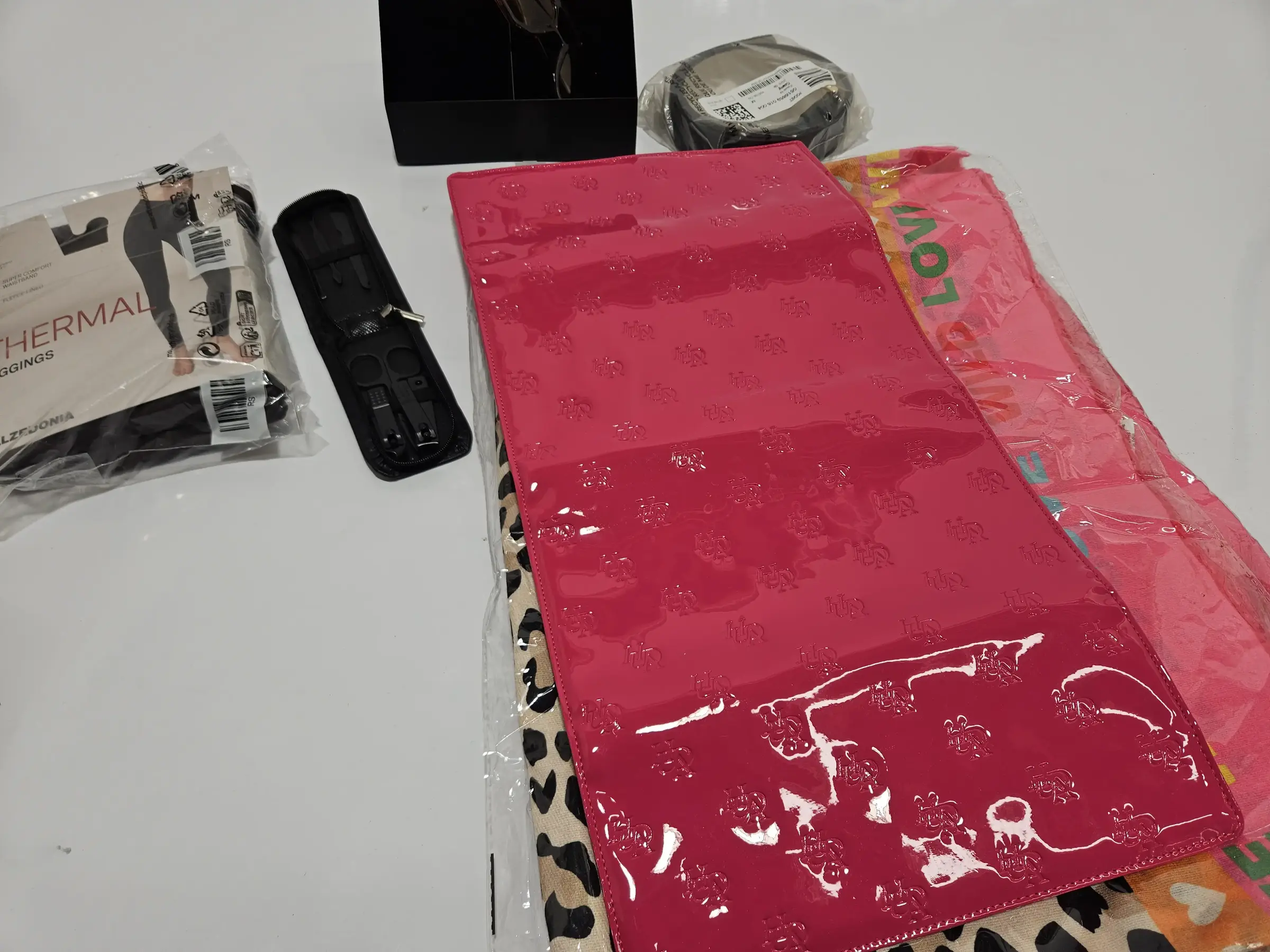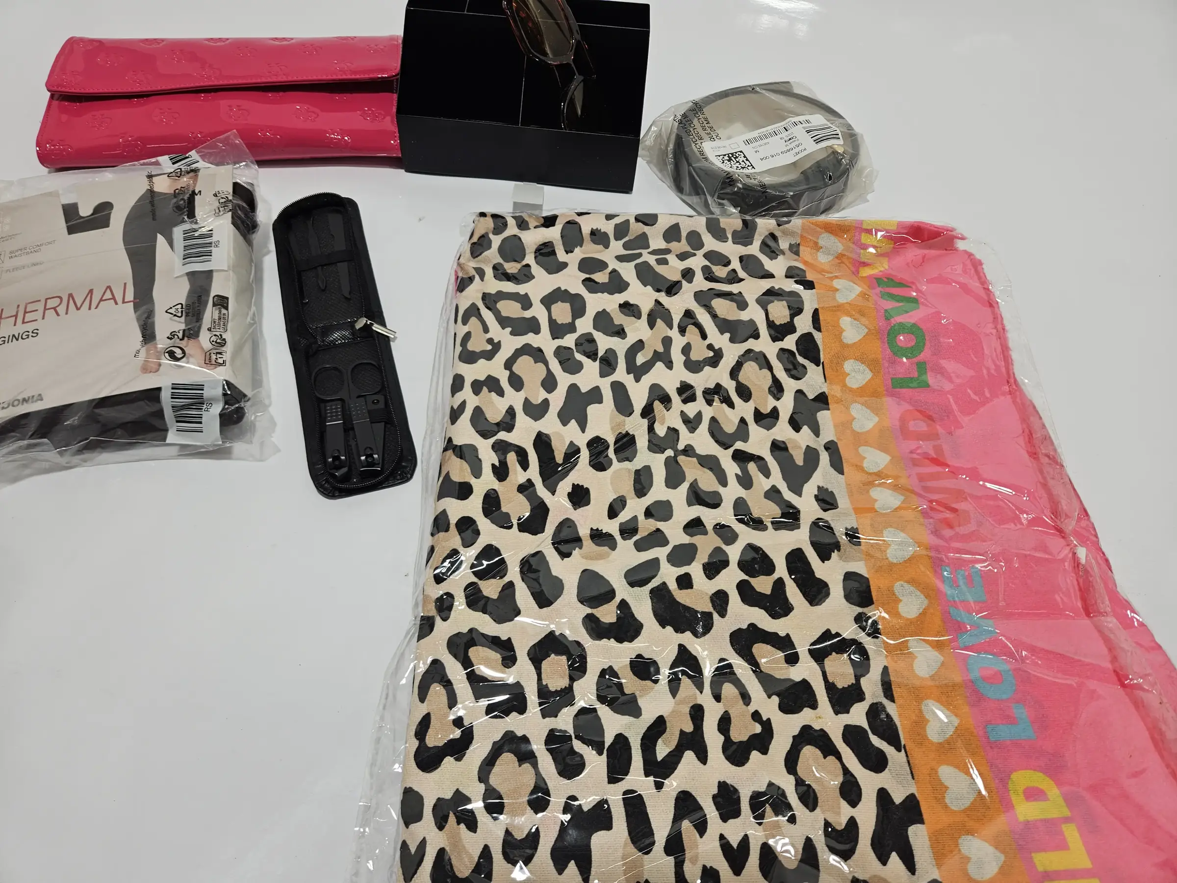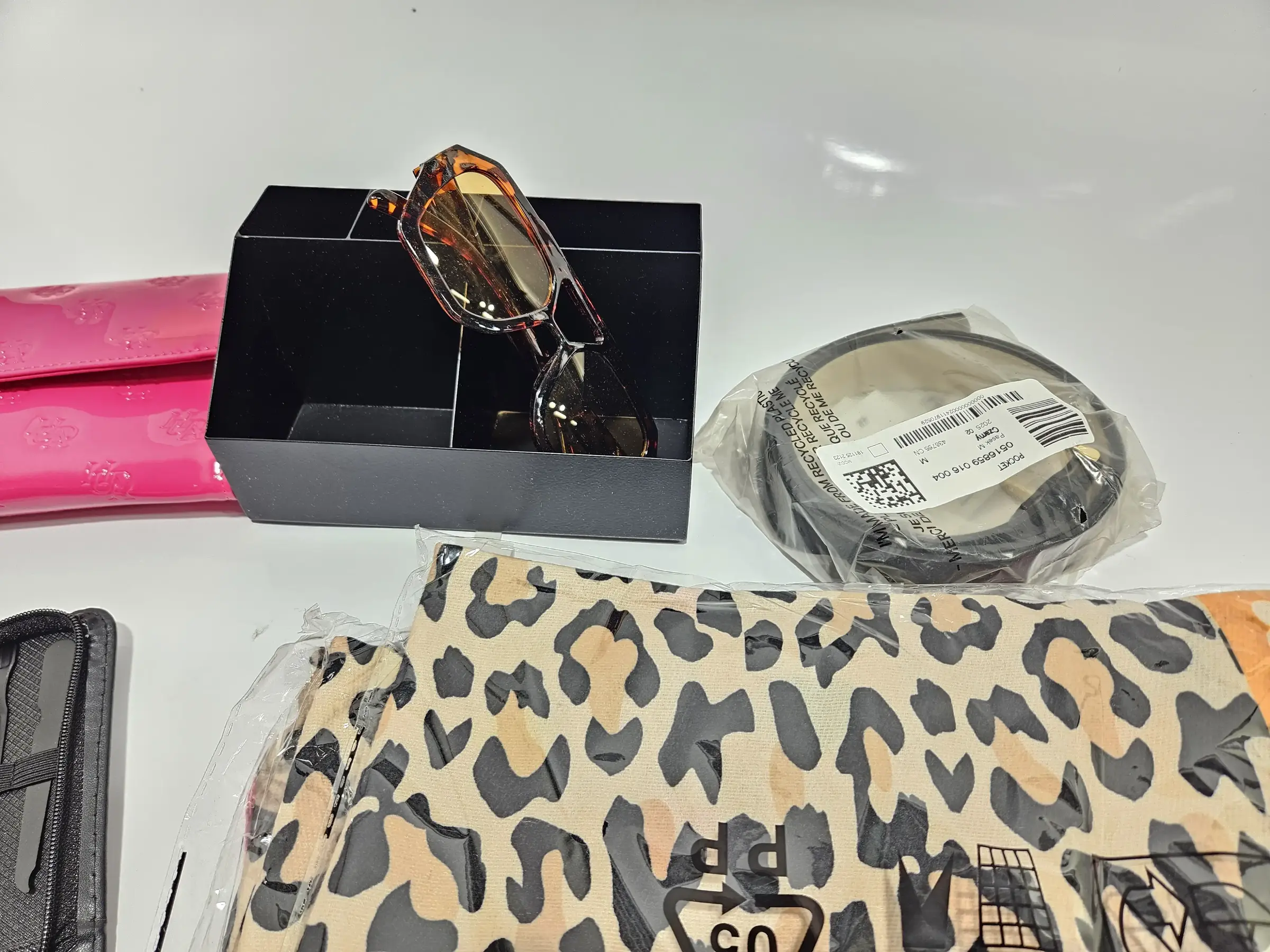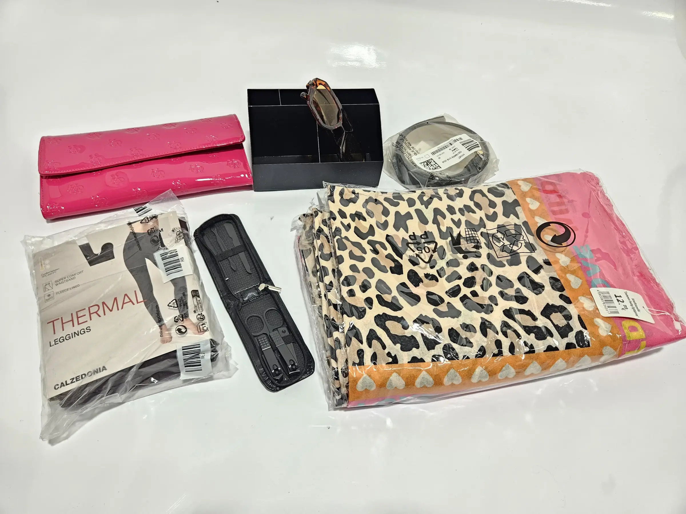 Schal, Sonnenbrille, Gürtel, Nageset
