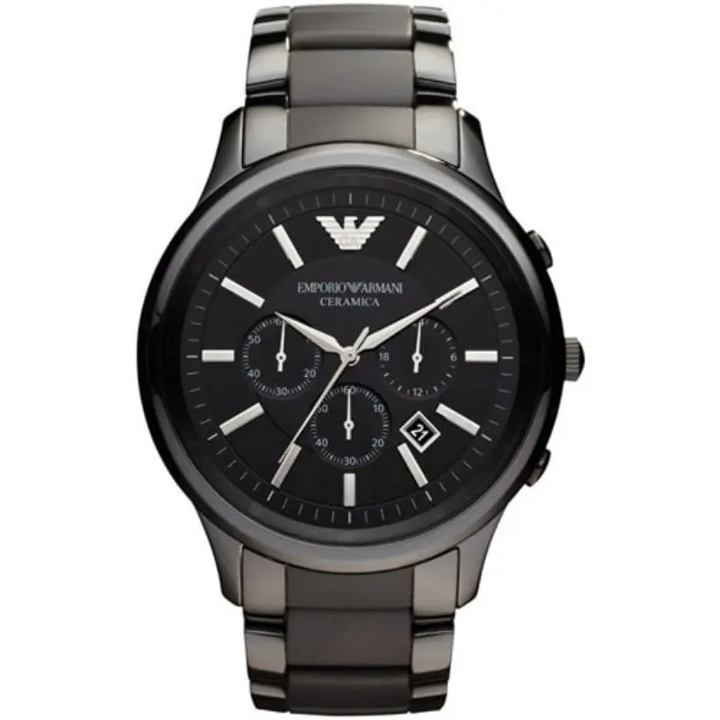 AR1451 Neu OVP Gehäusegröße: 46 mm Werk: Quarz-Chronograph Wasserbeständigkeit: 5 ATM Gehäusefarbe: Schwarz Gehäusematerial: Keramik Zifferblattfarbe: Schwarz Armbandbreite: 24 mm Verschluss: Klappverschluss Innerer Armbandumfang: 200 +/- 5 mm