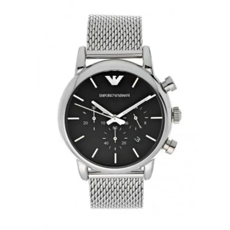AR1811 Neu OVP Diese Emporio Armani Luigi Chronograph Uhr für Herren ist das perfekte Accessoire zum Tragen oder Verschenken. Ihr silbernes 41 mm rundes Gehäuse, kombiniert mit dem bequemen silbernen Armband aus Edelstahl, garantiert, dass Sie diese atemberaubende Uhr kompromisslos genießen werden. Angetrieben von einem hochwertigen Quarz-Uhrwerk und wasserdicht bis 5 Bar, läuft Ihre Uhr stets weiter. Diese elegante und praktische Uhr ist perfekt für alle Gelegenheiten. Es ist ein tolles Geschenk für Ihre Verwandten und Freunde. Diese Analoguhr verfügt über eine Kalenderfunktion: Datum, Stoppuhr, 24-Stunden-Anzeige, Leuchtzeiger. Diese hochwertige Uhr hat ein silbernes Edelstahlband (21 cm Länge und 20 mm Breite) mit einer Dornschließe. Gehäusedurchmesser: 41 mm, Gehäusehöhe: 12 mm, Gehäusefarbe: Silber, Zifferblattfarbe: Schwarz.