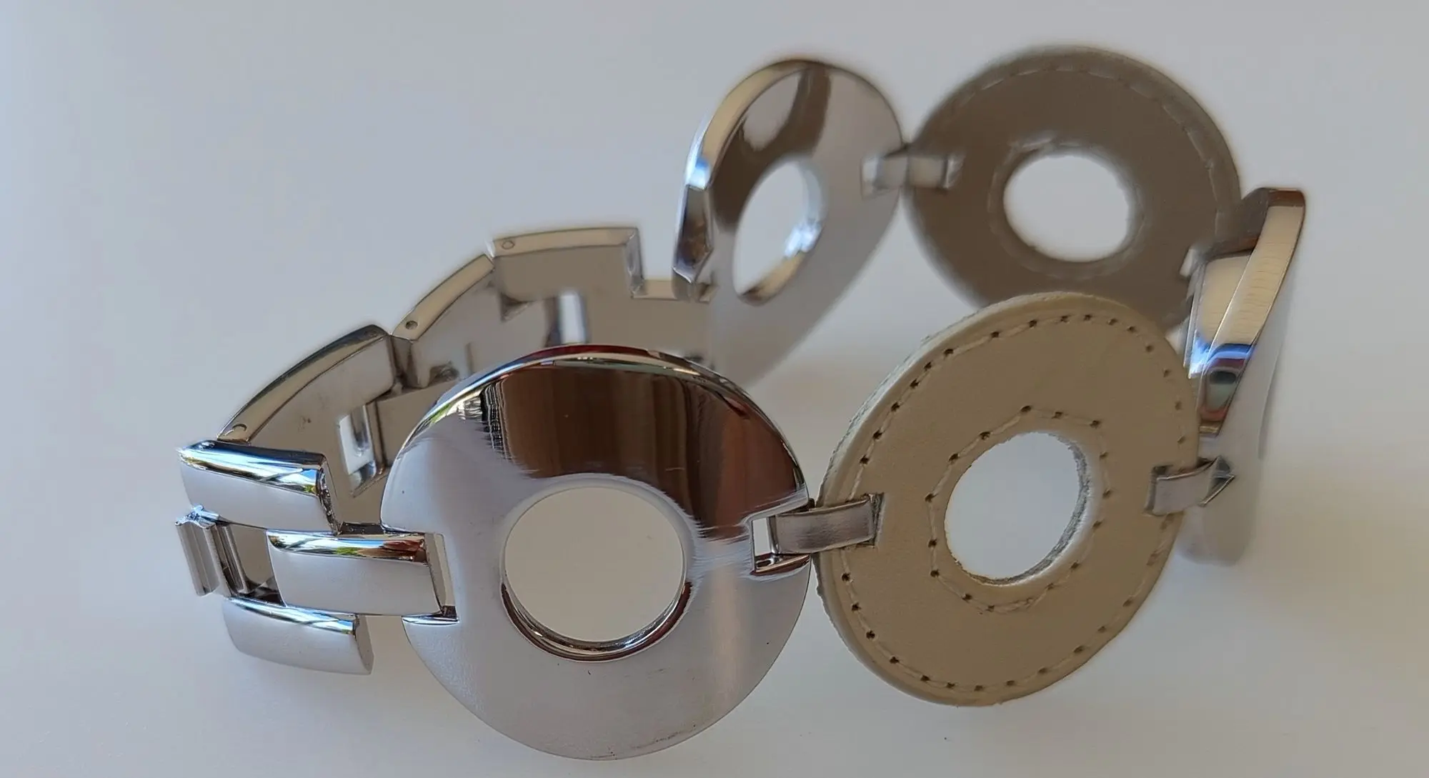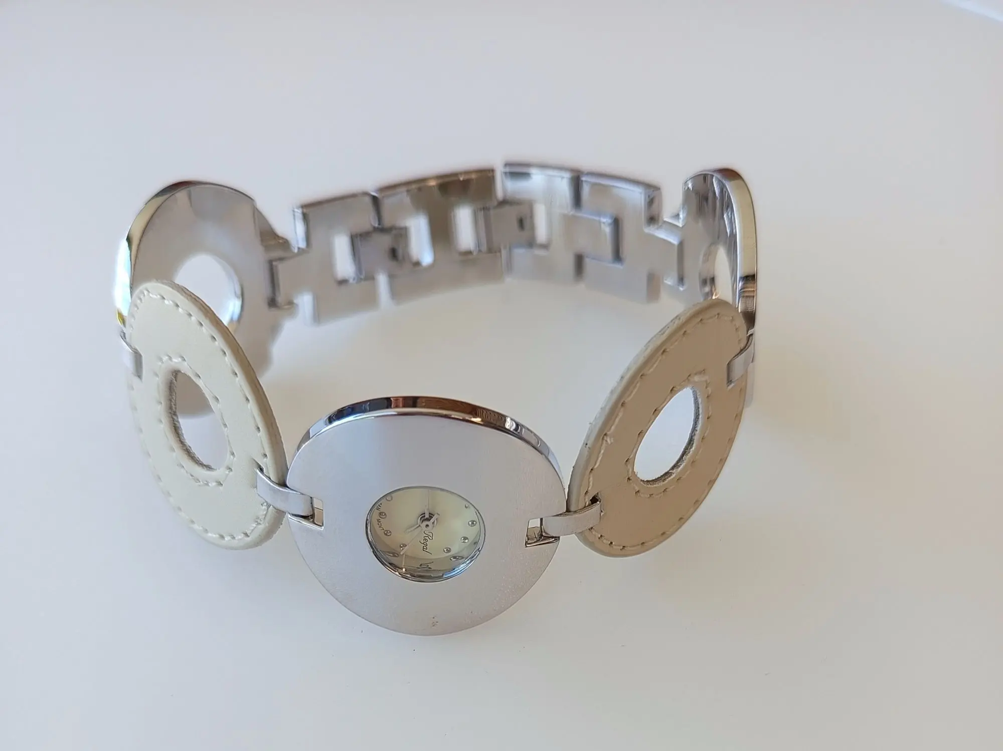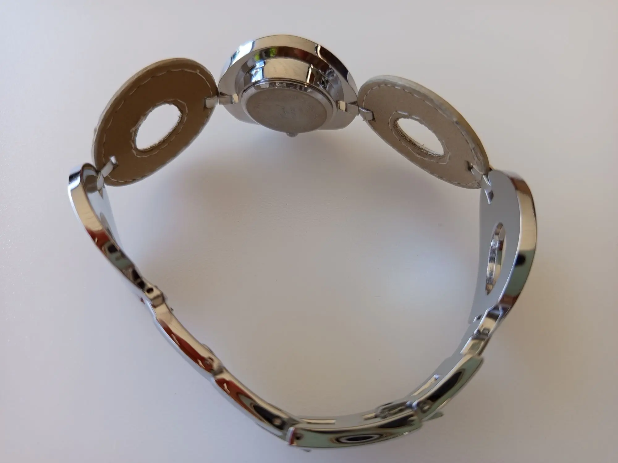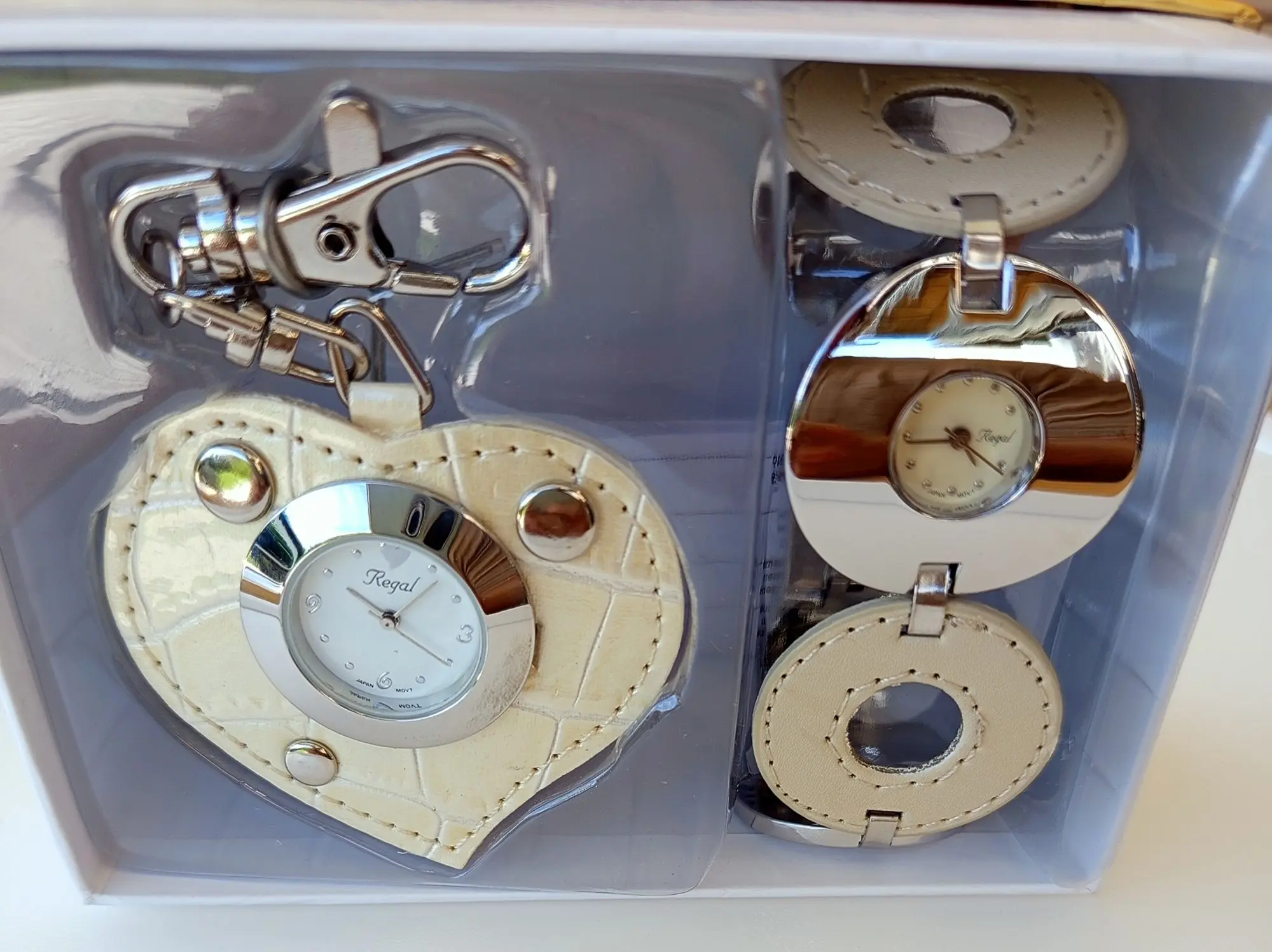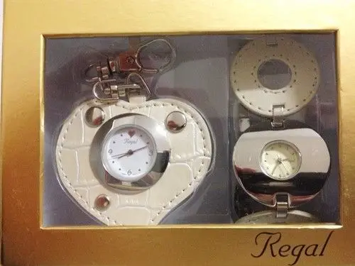 110 Ehemaliger VP in der Schweiz 699 CHF (69,90 CHF/Stück). Sie erhalten 10 Sets. Die Batterien (AG4) sind leer. Die Uhren stammen aus der Sortimentsauflösung der Handelskette Migros Schweiz. Preis ausgezeichnet in CHF. Spezifikationen: Armbanduhr: weisses Zifferblatt, Edelstahlgehäuse, Armband aus poliertem Metall und beigem Leder. Uhr-Anhänger: weißes Zifferblatt, Edelstahlgehäuse, Anhänger aus beigem Leder mit Nieten, einfaches Befestigen durch Karabinerverschluss. Daten: Armbanduhr Zeitanzeige: Analog, Gehäuse: rostfreier Edelstahl, poliert, Armband: Kombination aus Leder und Metall, Breite: 33 mm, wasserdicht: Dieses Modell ist spritzwasserfest nach DIN 8310, Design: kreisförmiges Gehäuse und Armband, Größe: 33 mm Radius. Uhr-Anhänger Zeitanzeige: Analog, Gehäuse: rostfreier Edelstahl, poliert, Anhänger: Leder mit Nieten, wasserdicht: Dieses Modell ist spritzwasserfest nach DIN 8310, Design: herzförmig mit Nieten und Karabinerverschluss, Größe: 60 x 53 mm, goldfarbene Box. Beide Uhren sind mit hochwertigem, ganggenauem Miyota-Quarzwerk ausgestattet.