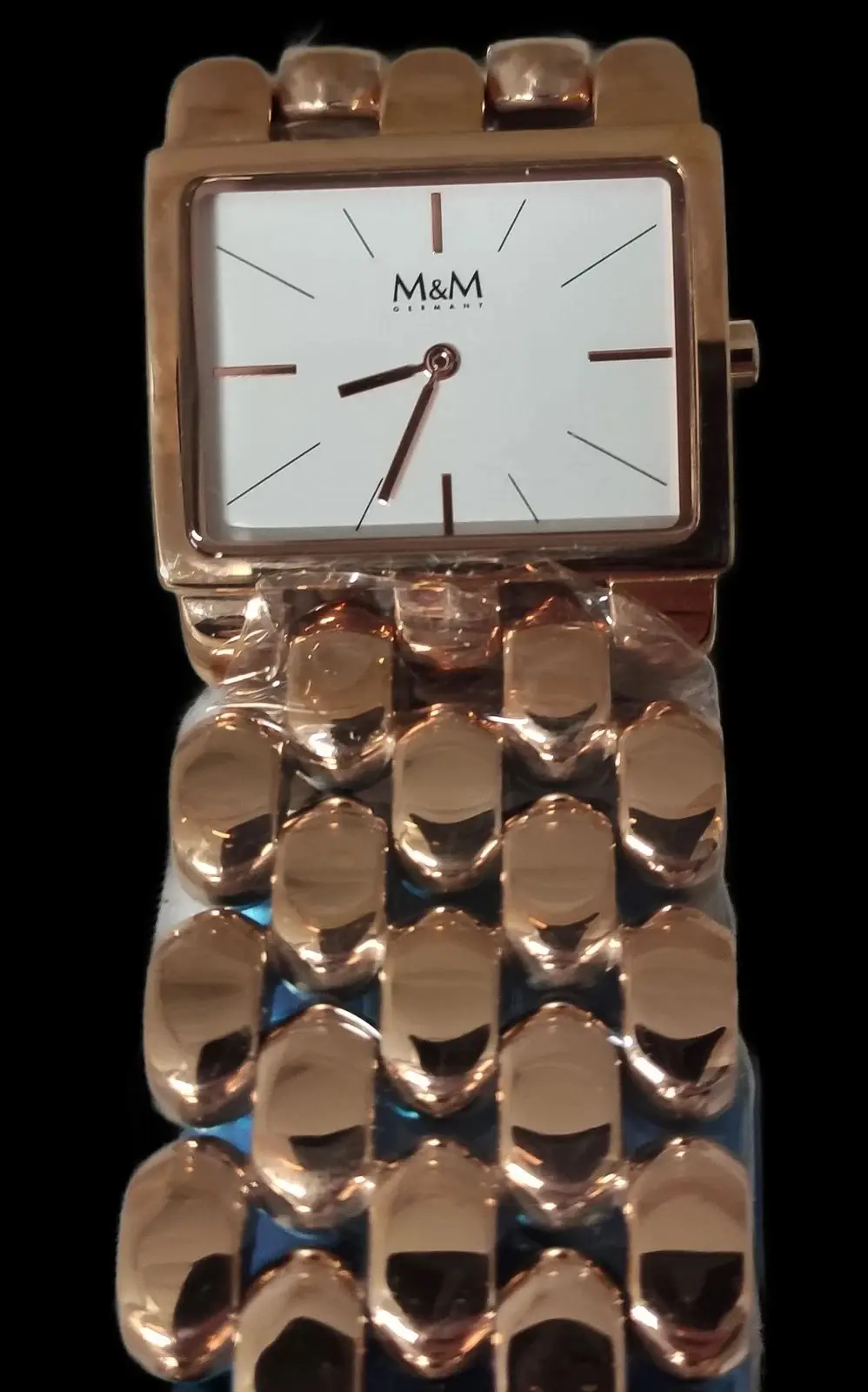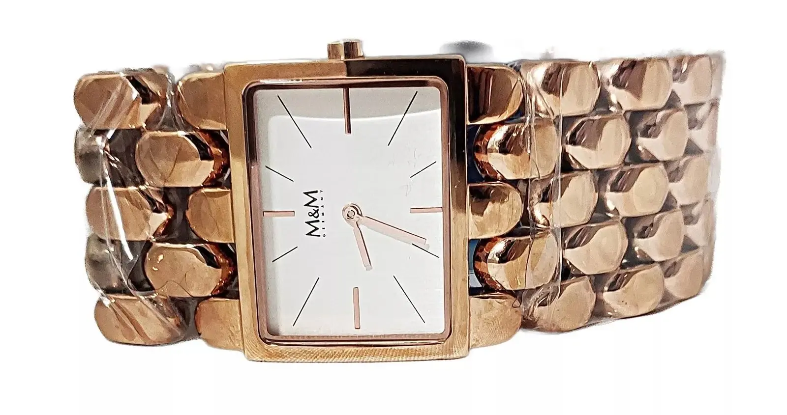 M11912-992 Neu OVP Mit die­ser Uhr hat M&M wie­der ein wah­res Schmuck­stück für den Arm kre­iert. Die weich ge­run­de­ten, po­lier­ten Arm­band­ele­men­te schmie­gen sich um das Hand­ge­lenk. Klei­ne Durch­brü­che zwi­schen den hoch ge­wölb­ten Glie­dern las­sen das Band plas­tisch er­schei­nen und sor­gen für be­son­de­re Licht­re­fle­xe auf der ro­sé­far­be­nen Ober­flä­che. Das schlich­te Ge­häu­se mit sil­ber­nem Zif­fer­blatt fügt sich de­zent in das ex­tra­va­gan­te Band. Zu­sam­men ha­ben die bei­den ei­nen gro­ßen Auf­tritt. Bub­b­le M11912-992 Uhr­werk: hoch­wer­ti­ges, fla­ches Miyo­ta-Quarz­werk Ge­häu­se: Edel­stahl IP ro­sé, po­liert Ab­mes­sun­gen: 32 x 25 mm, Di­cke 7 mm Glas: ge­här­te­tes Mi­ne­ral­glas Zif­fer­blatt: sil­ber, matt­ge­bürs­tet, In­de­xe po­lier­tes, ro­sé­plat­tier­tes Edel­stahl-Glie­der­arm­band, Drü­ck­er­falt­schlie­ße mit Lo­go bis 3 bar (30 m/100 ft) was­ser­dicht (Prüf­druck) Für al­le, die das Be­son­de­re lie­ben, bie­tet M&M Ger­ma­ny ei­ne aus­ge­fal­le­ne Schmuck- und Uh­ren­kol­lek­ti­on. Ge­rad­li­nig und selbst­be­wusst, mit per­fek­ten Pro­por­tio­nen und ex­klu­si­ven Ma­te­ria­li­en. Seit Grün­dung des Un­ter­neh­mens 1974 in Düs­sel­dorf ent­wi­ckelt und ver­treibt M&M Uh­ren und Schmuck mit ho­hem ge­stal­te­ri­schen An­spruch bei ei­nem sehr gu­ten Preis-Leis­tungs-Ver­hält­nis.