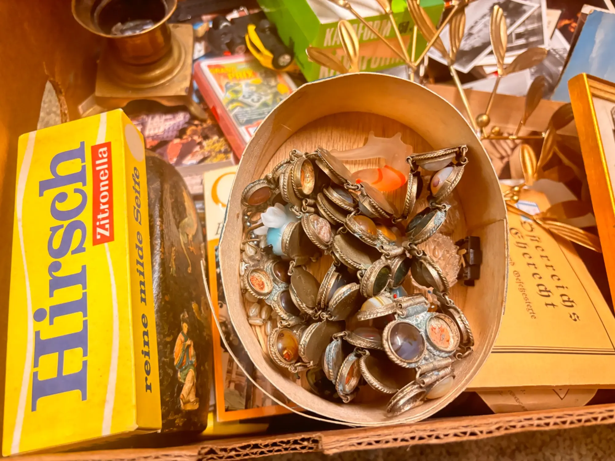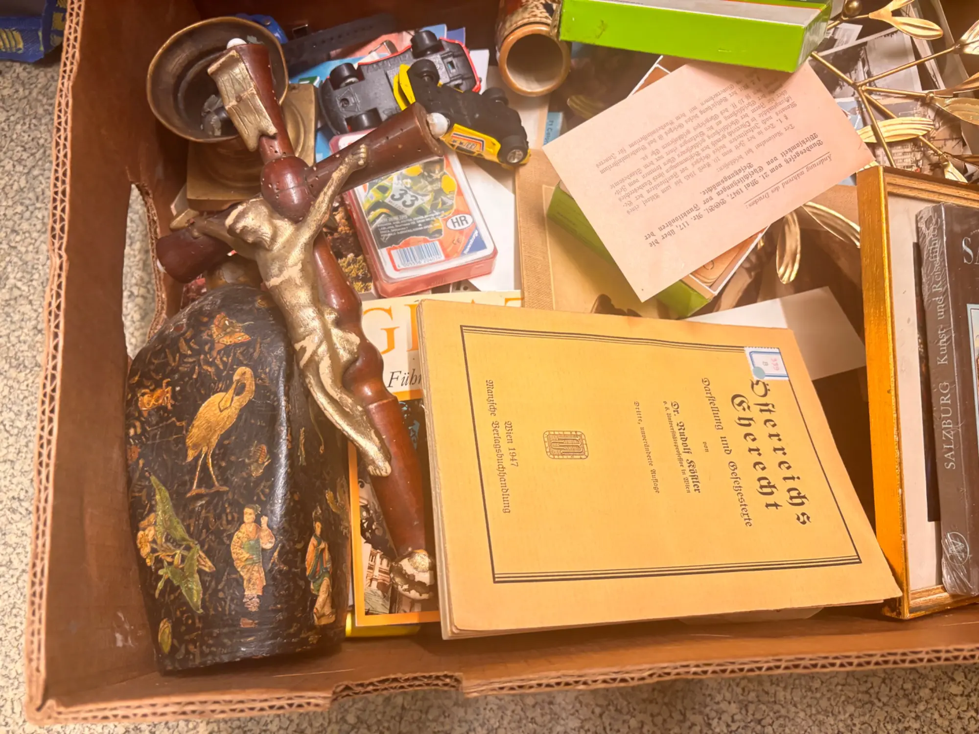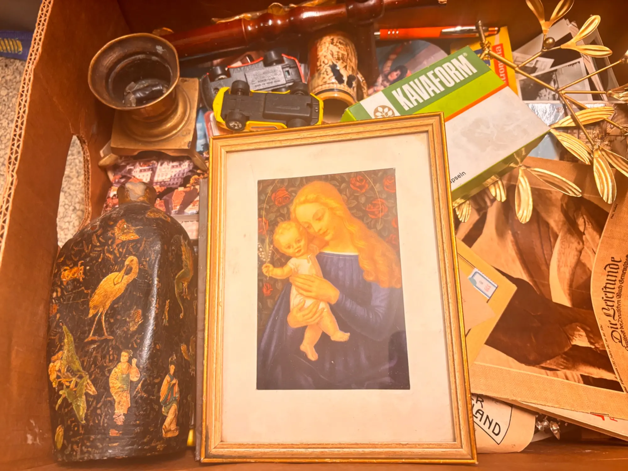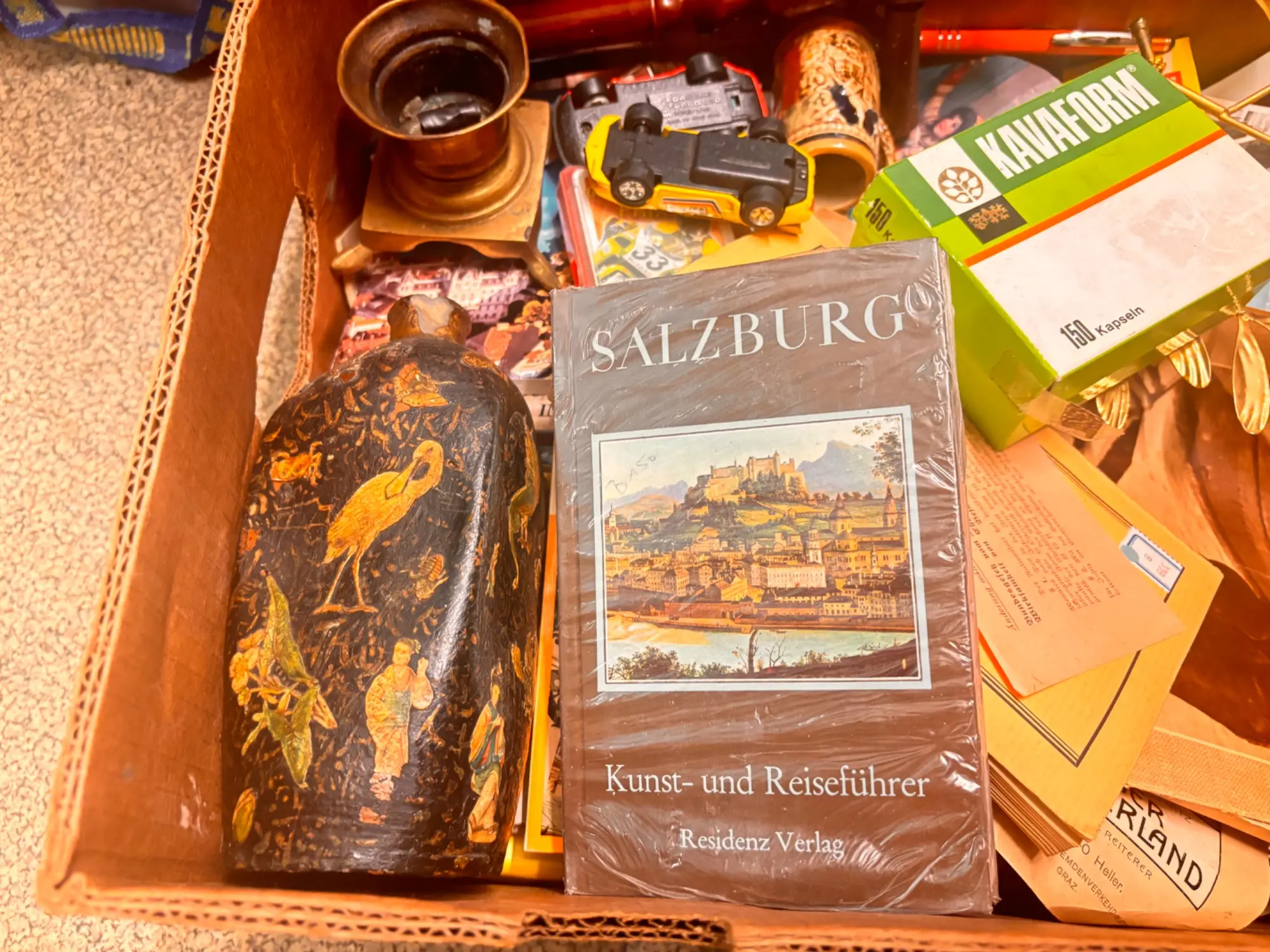 125.807: 1 Karton Villafund Krimskrams Kiste: Bild, Fotos, alte Vase