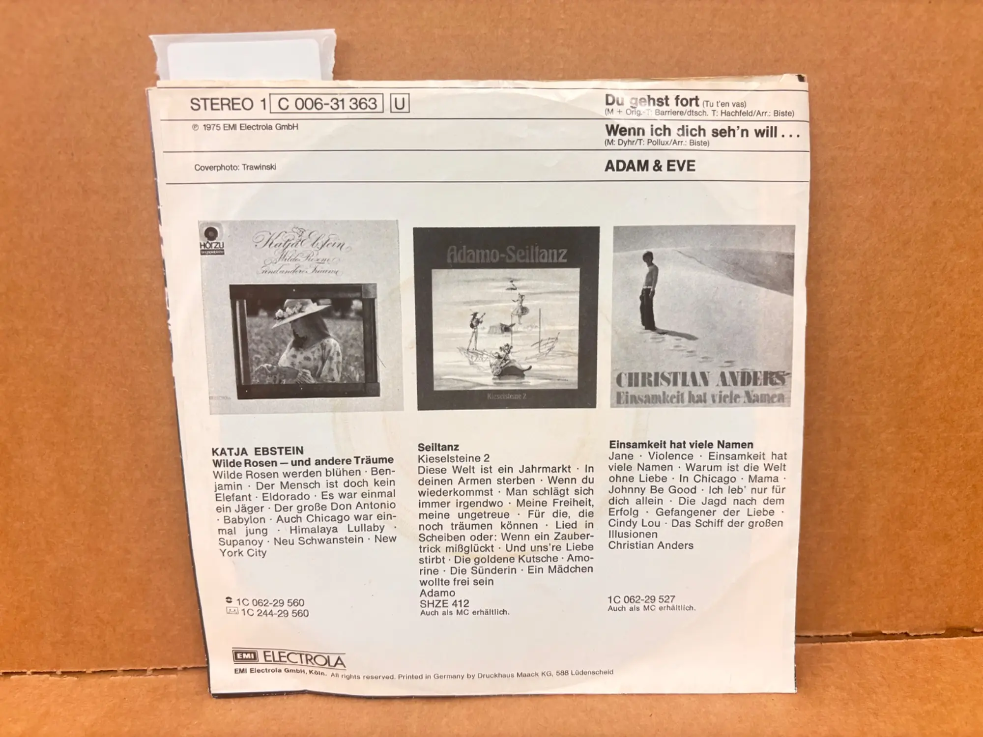 125.834: 1 Stk. Single Adam & Eve Du gehst fort (Electrola)